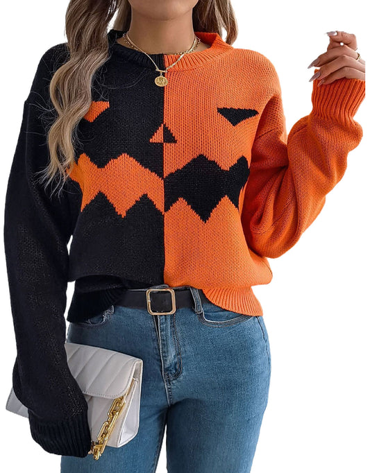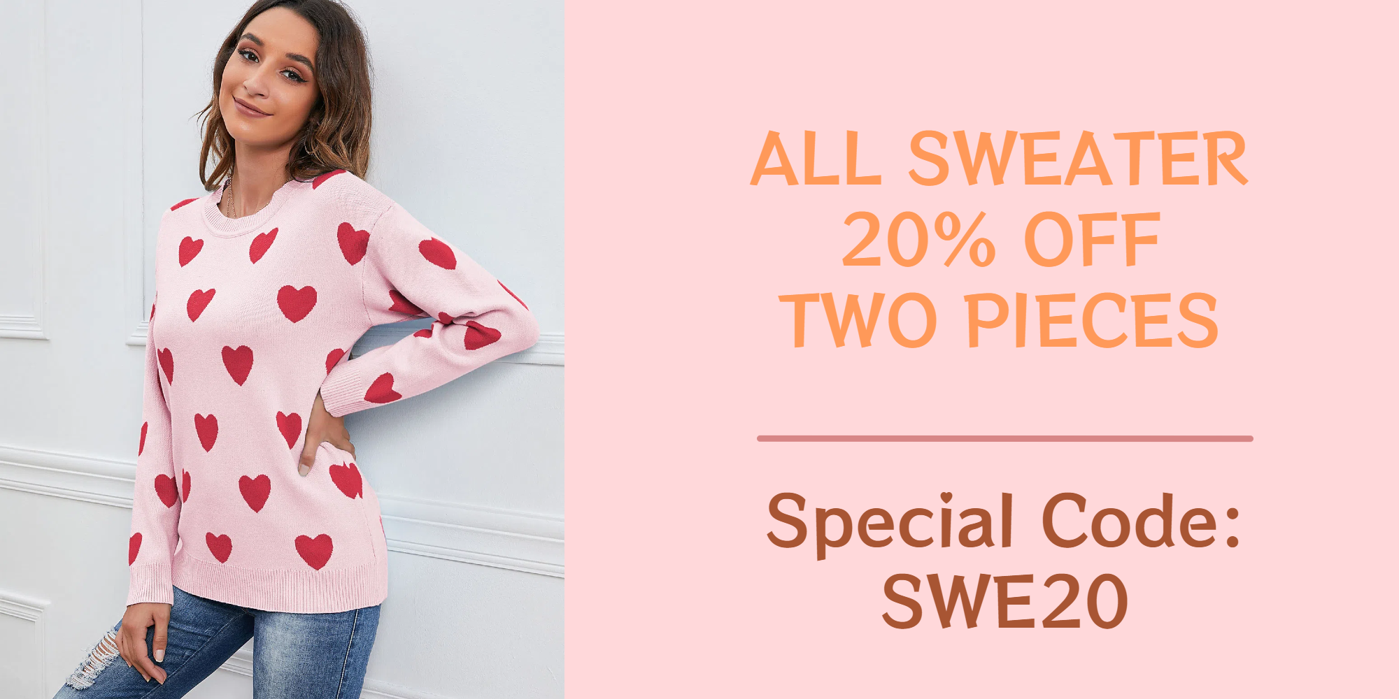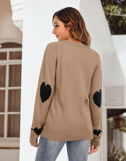 Cute Heart Lattern Sleeve Crew Neck Knit Pullover Top