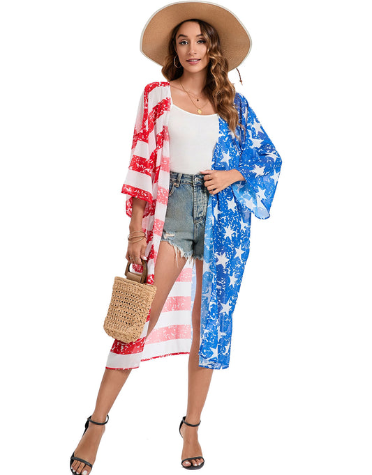 4th of July Stars Patriotic Shawl Lightweight Kimono
