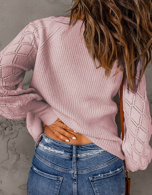 Plaid Tie Lantern Sleeve Casual Cardigan Sweater