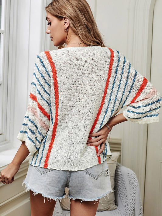 Heart Pattern Striped Style Sweater