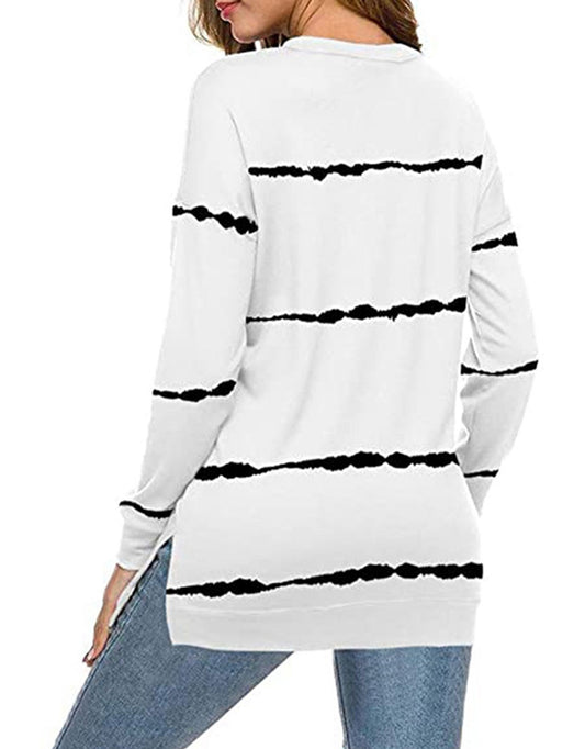 Striped Versatile Crewneck Loose Long Sleeve T-Shirt