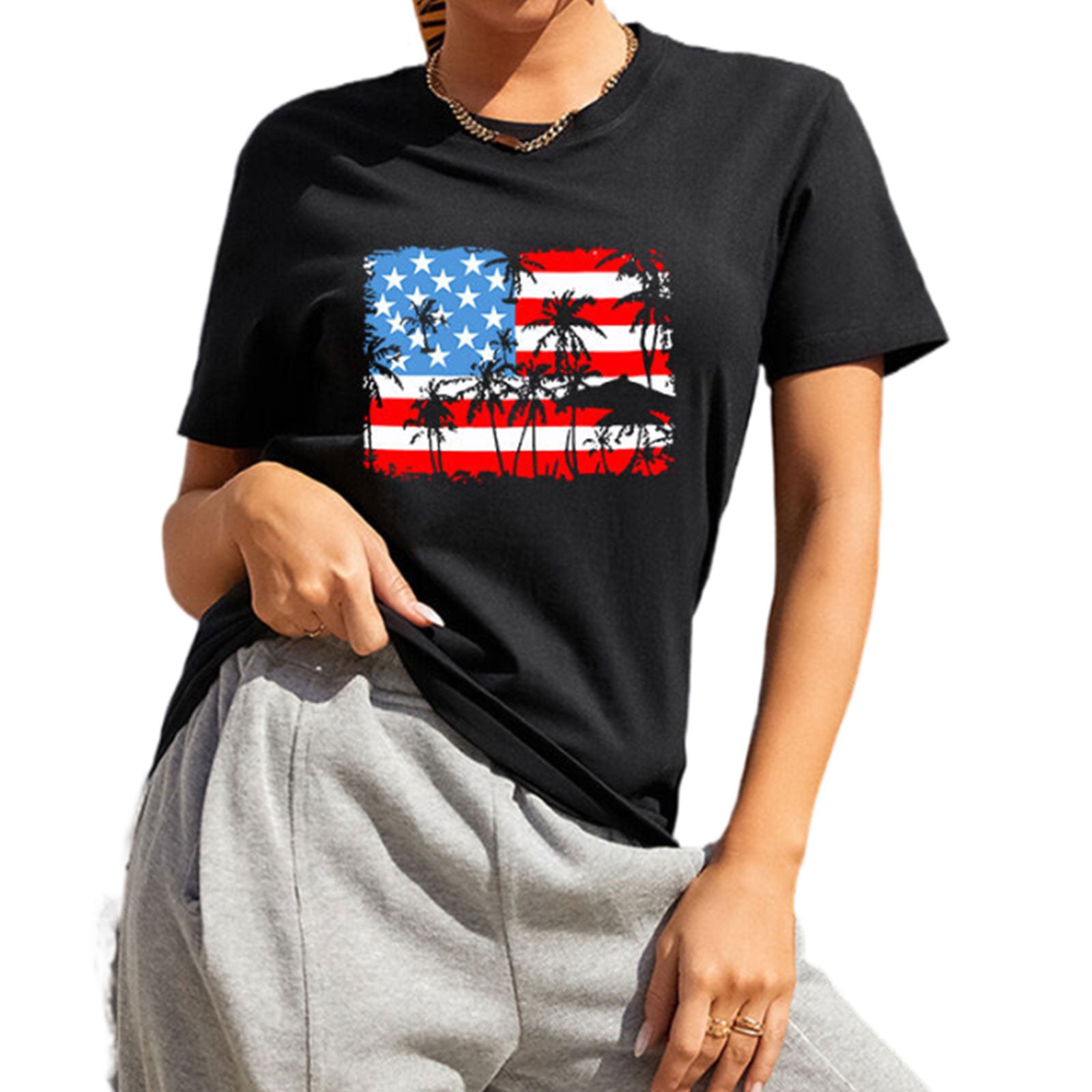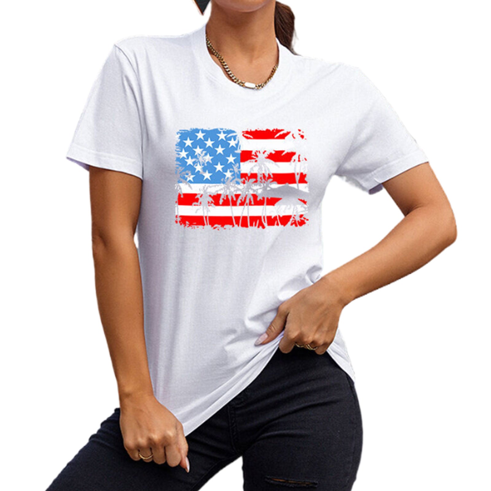 ❤This women's American flag t-shirt can be perfectly matched with any type of jeans or shorts, suitable for summer vacations and going out.