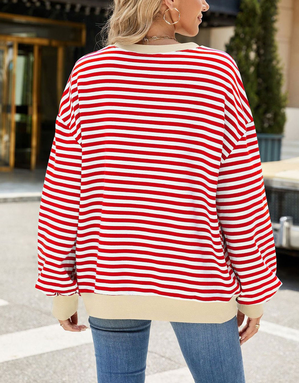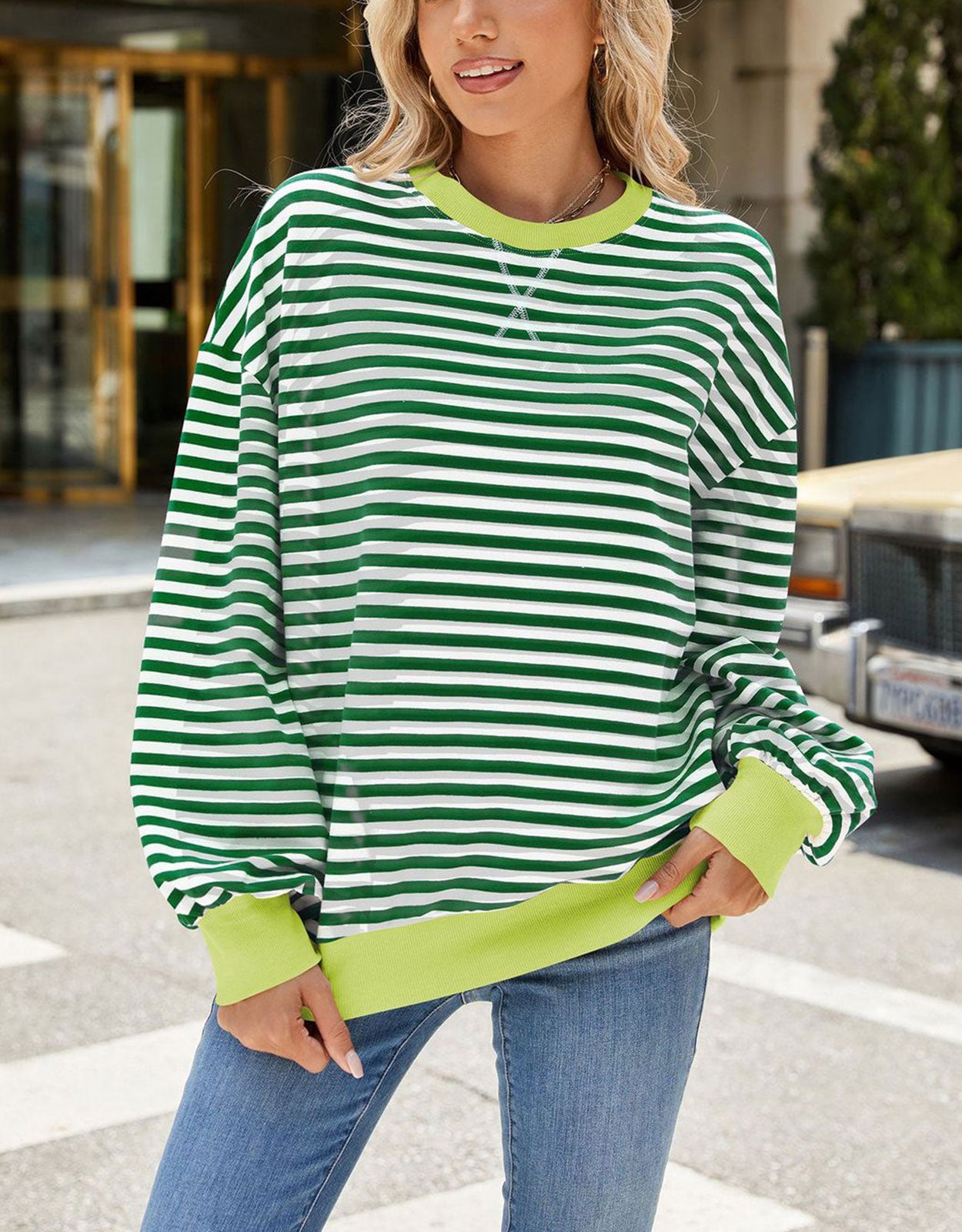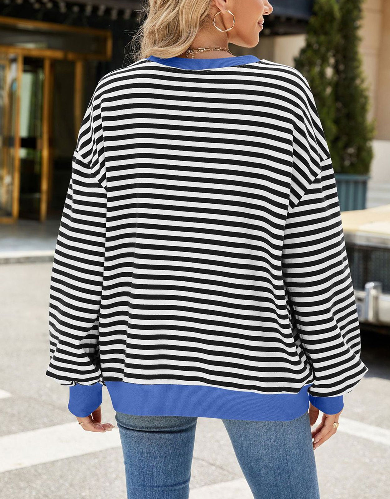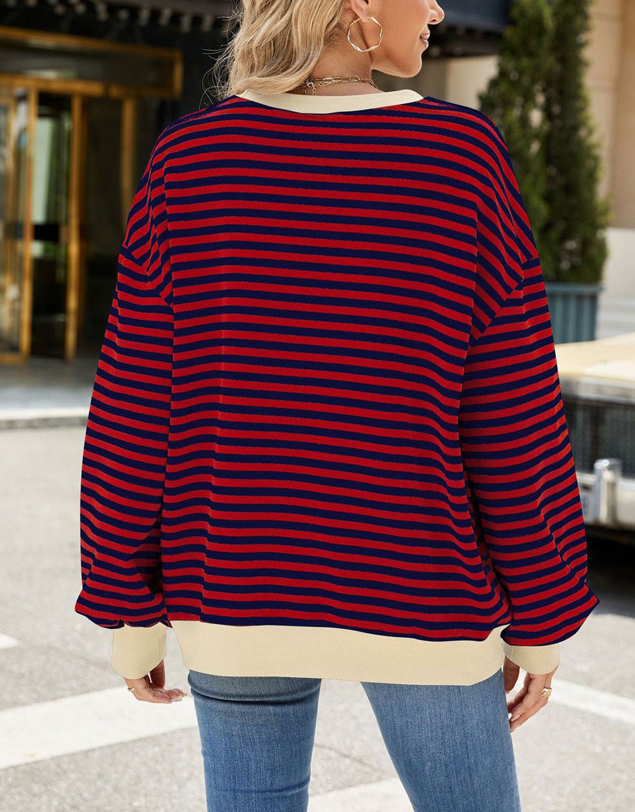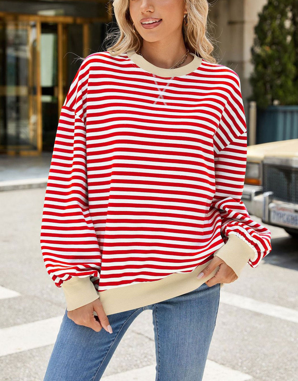 ❤Features: long sleeve shirts,crewneck sweater, striped pattern, slight color block design at the sleeves and bottom, loose style with a chic look,womens sweaters,womens clothes<
