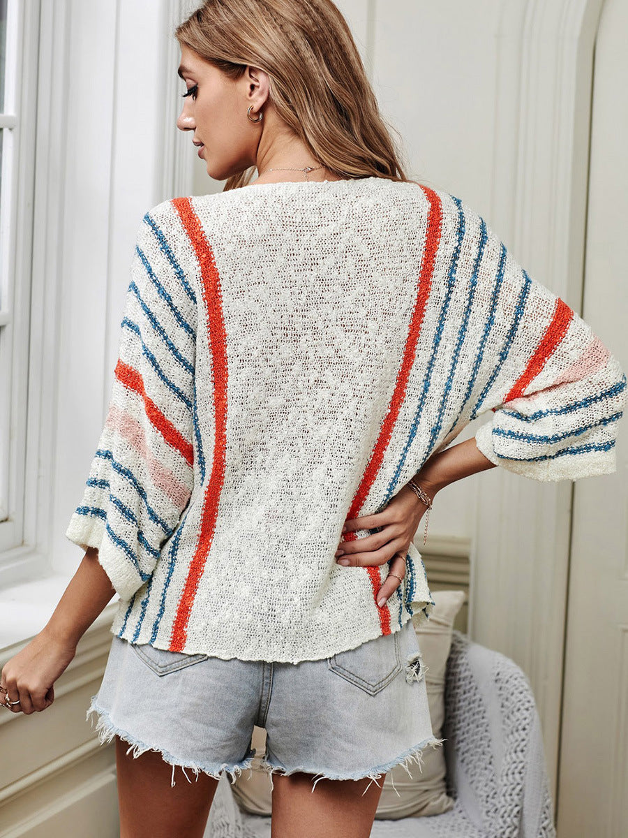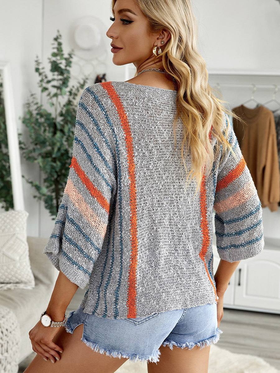 Crew neck striped pullover sweater