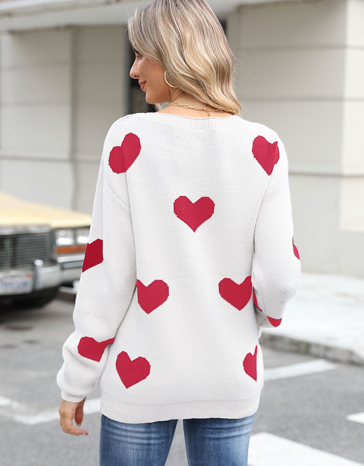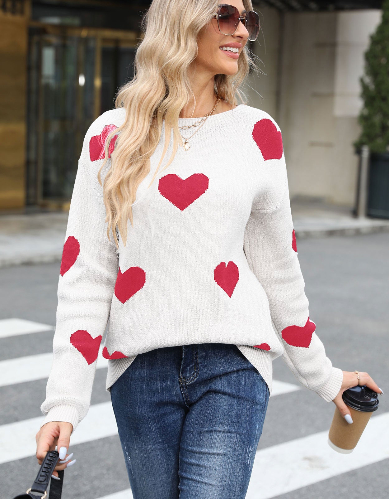 Cute Heart Lattern Sleeve Crew Neck Knit Pullover Top