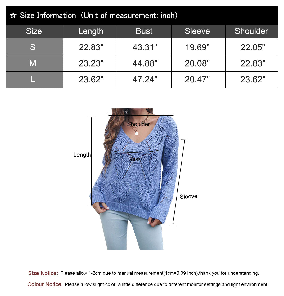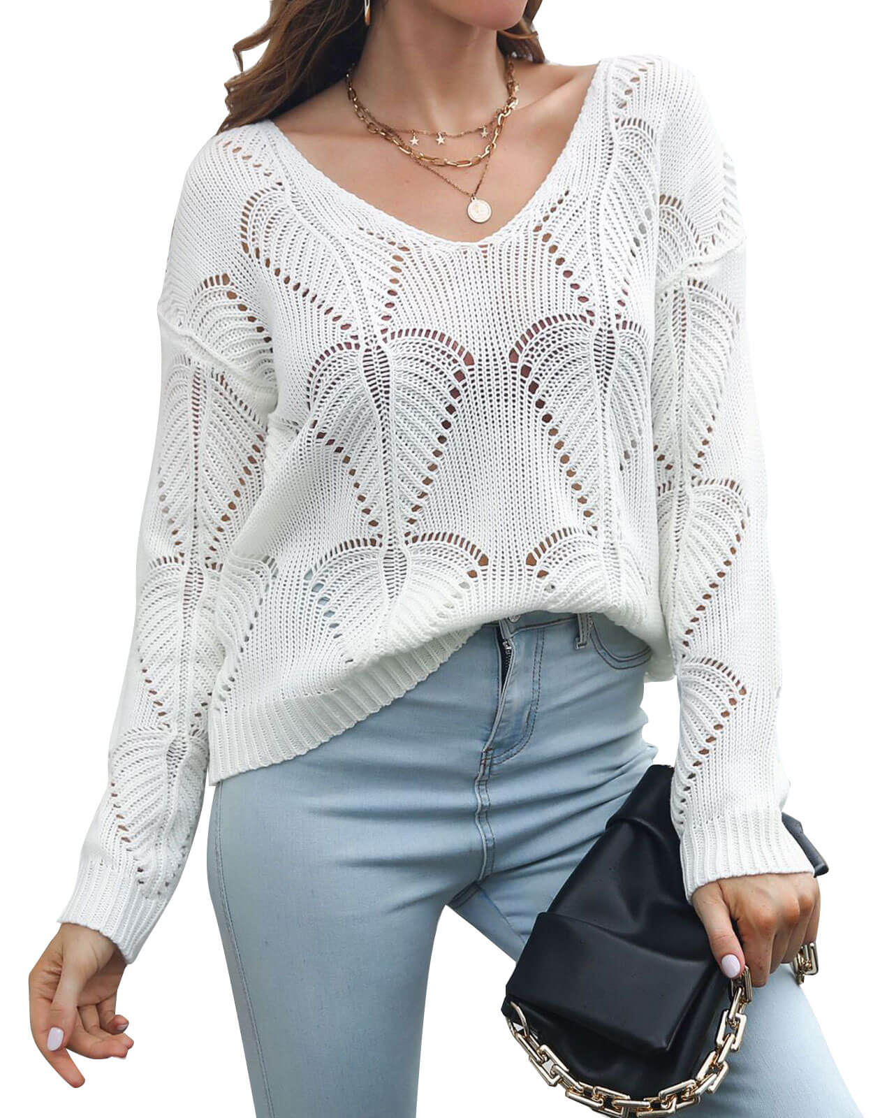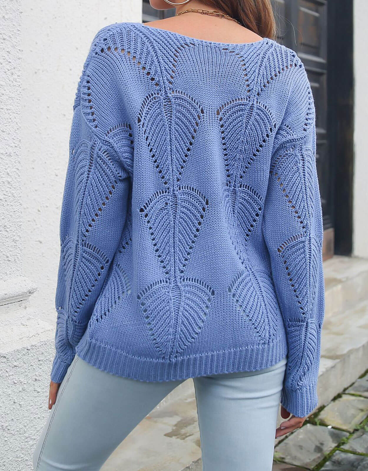 Cutout Leaf V-Neck Long Sleeve Knit Sweater