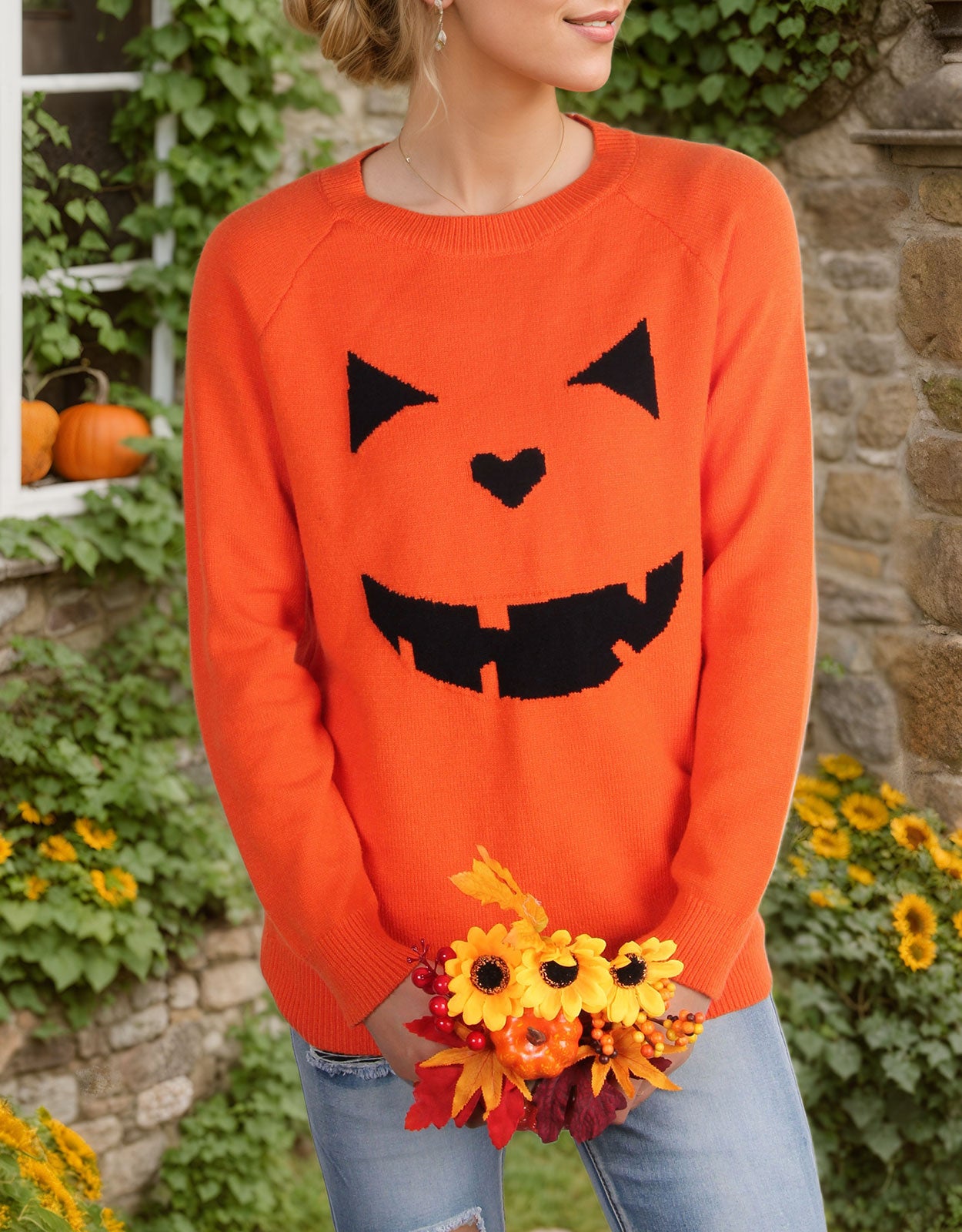 ❤Occasion: Halloween Round Neck Long Sleeve Pumpkin Smiley Face Sweater works better with jeans, making you more eye-catching in daily life. Soft and warm, suitable for spring, autumn and winter. Very suitable for daily wear, home, school, work, office, street, party or Halloween, etc.
