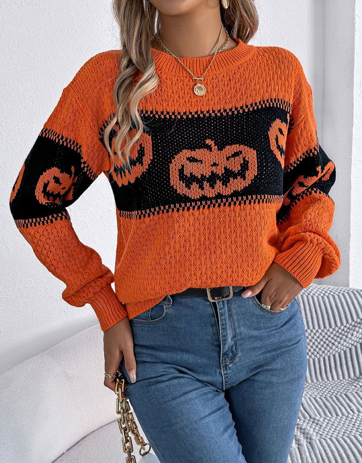 Halloween pumpkin Pattern Sweater