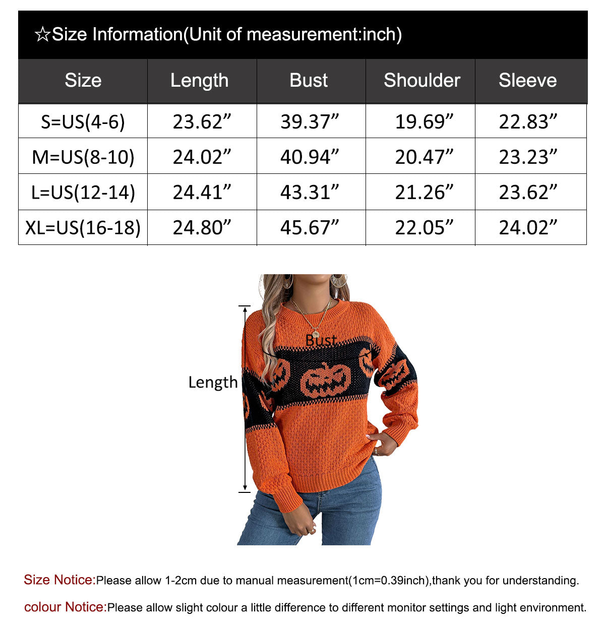 S=US(4-6)---Length 23.62"-----Bust 39.37"----shoulder19.69"---sleeve22.83"
