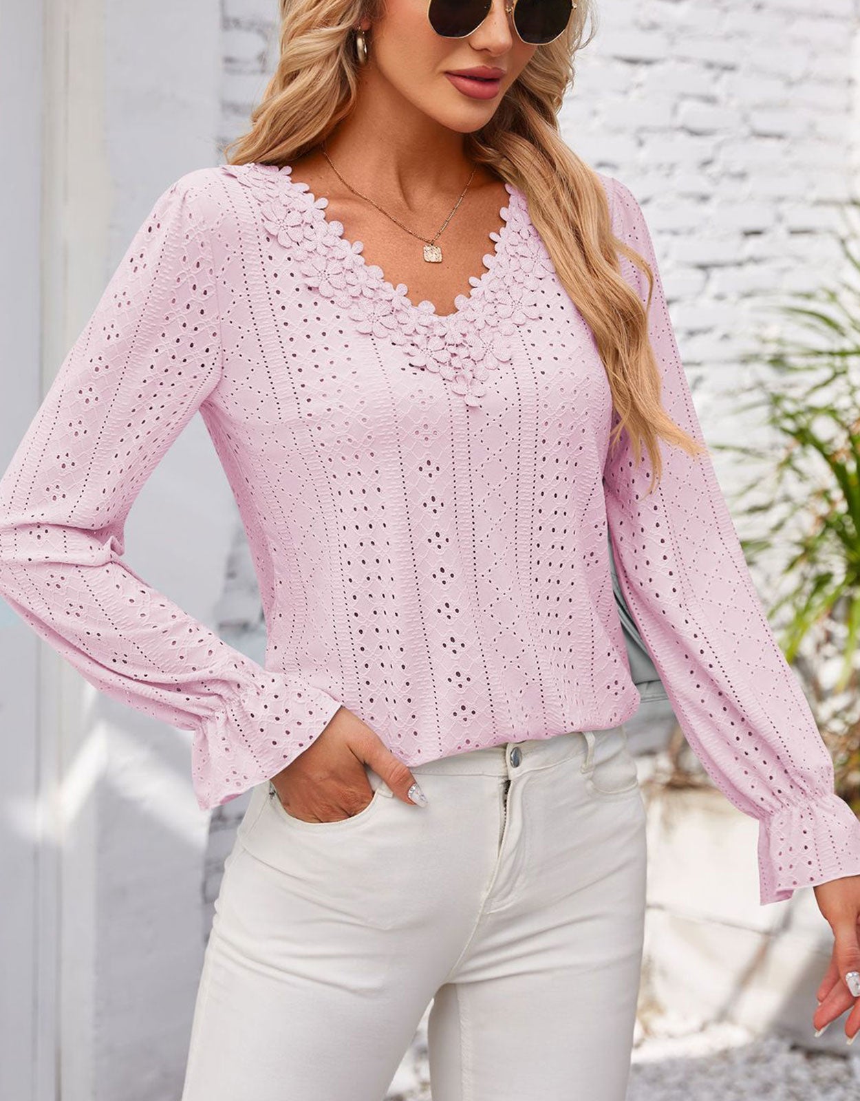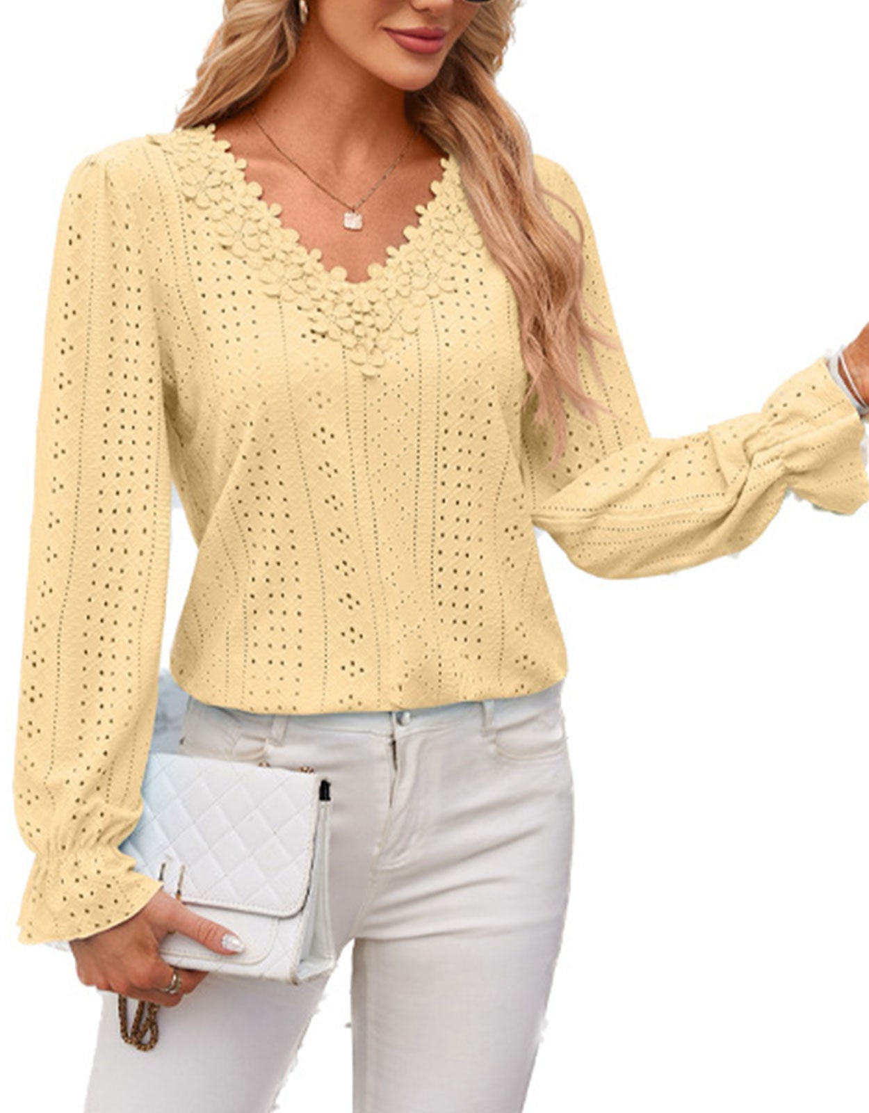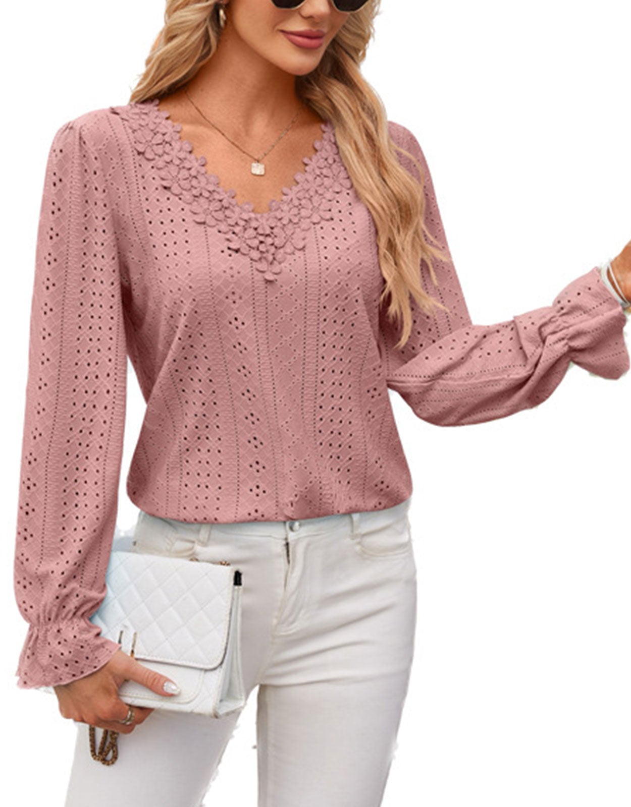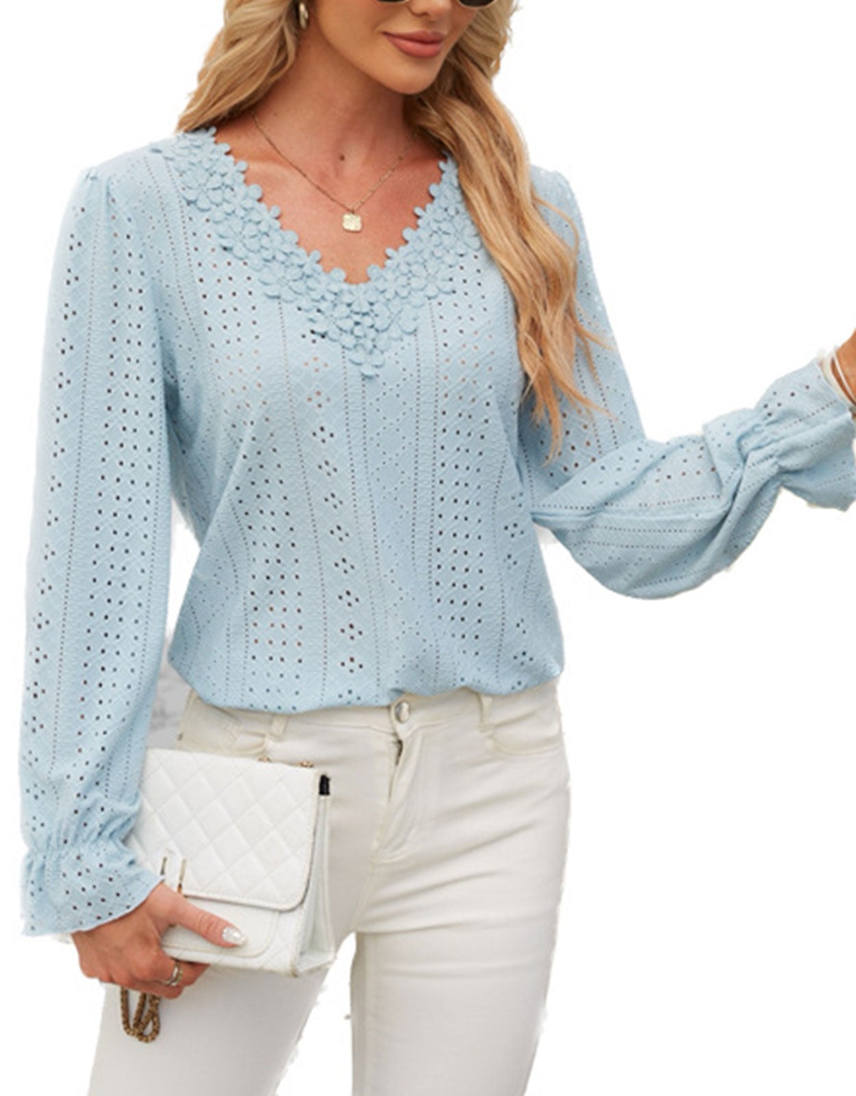 Hollow Eyelet Tops Blouse
