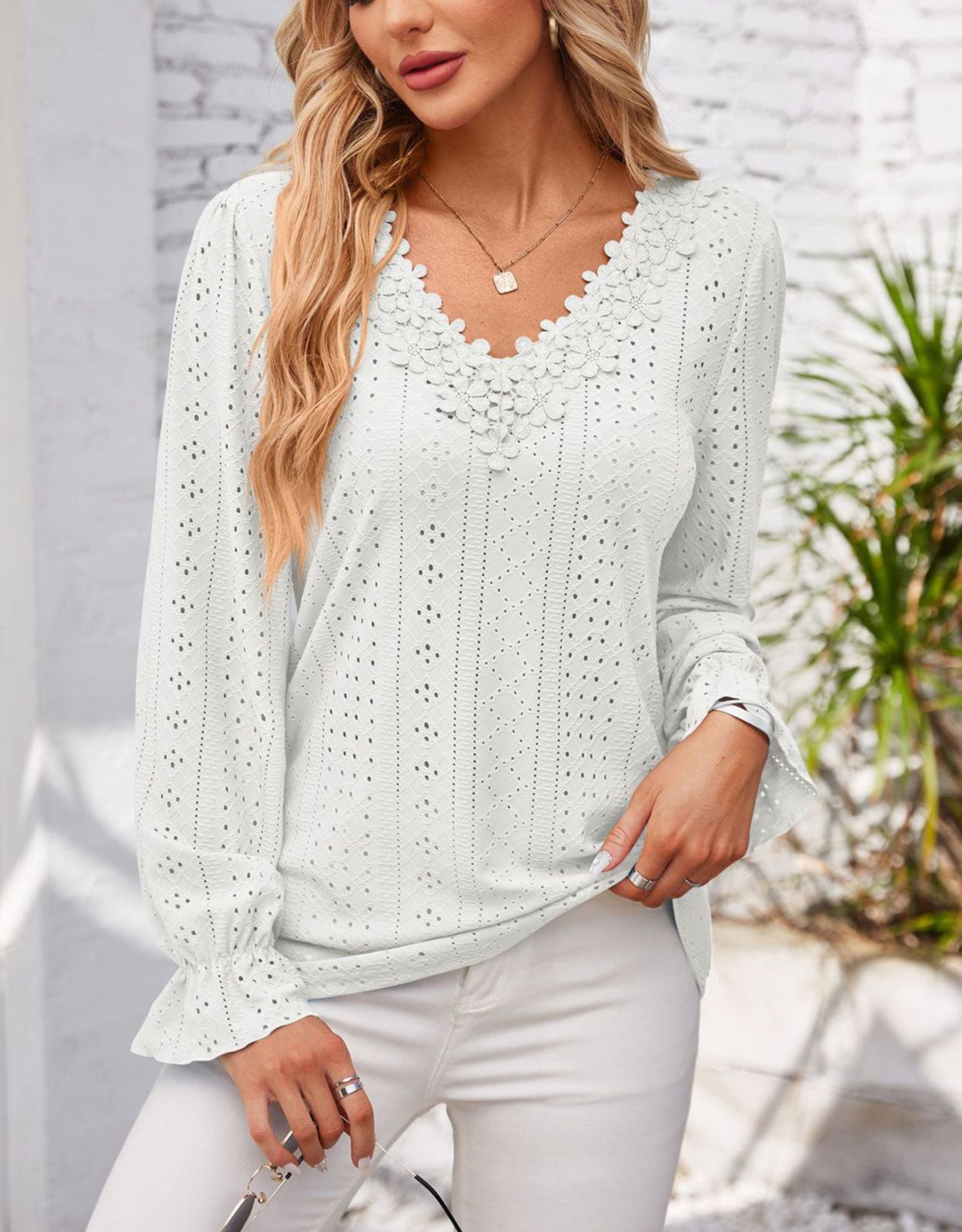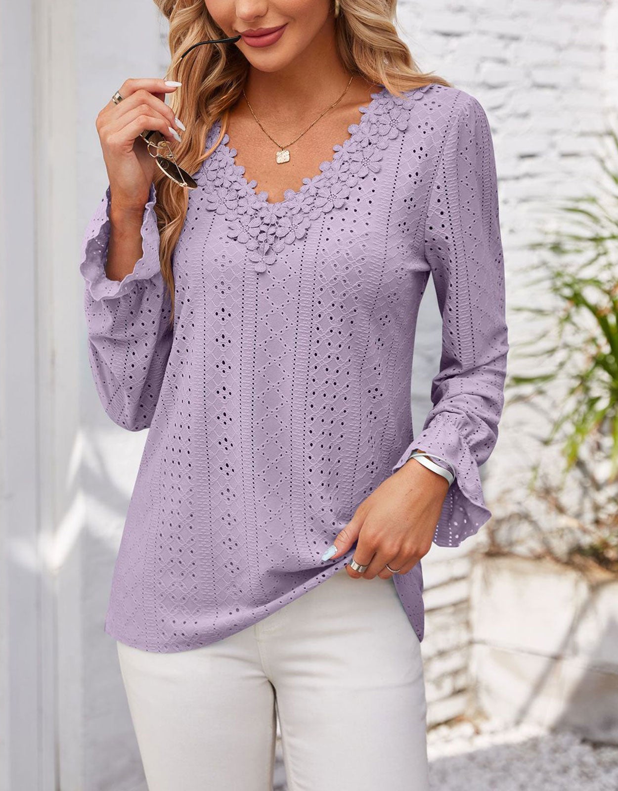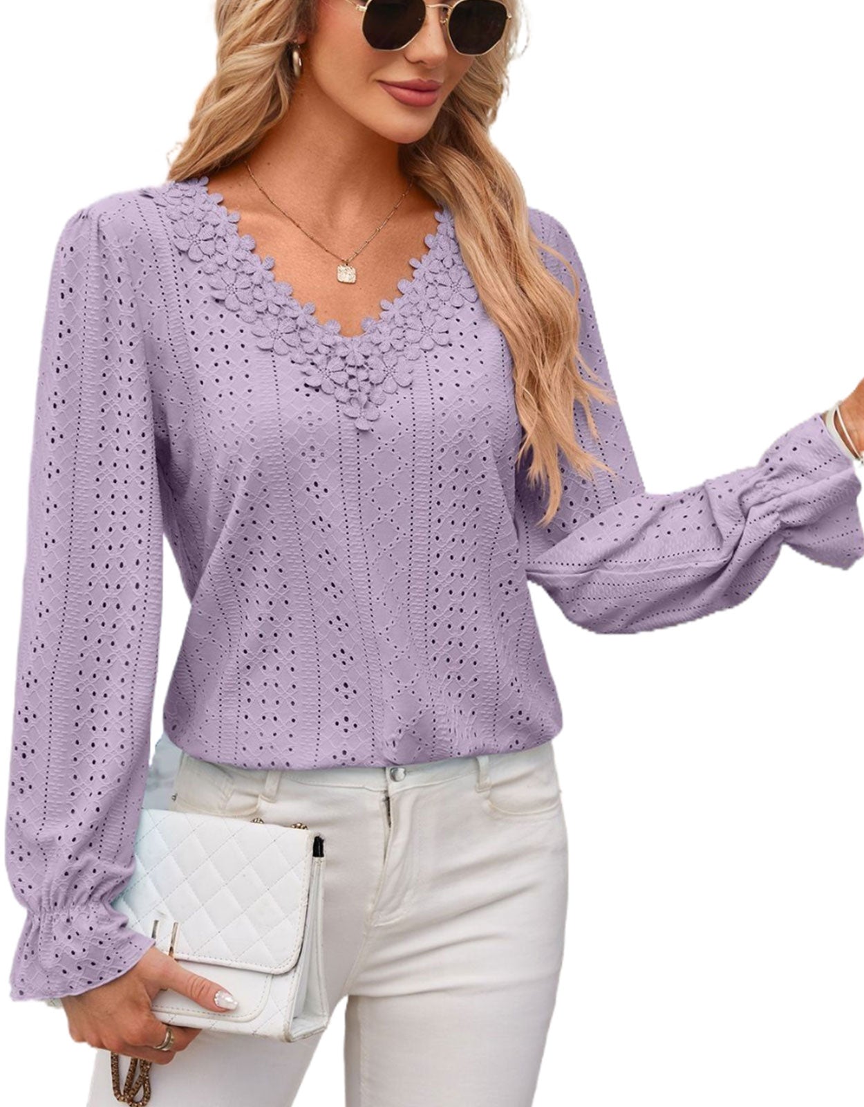 Hollow Eyelet Tops Blouse