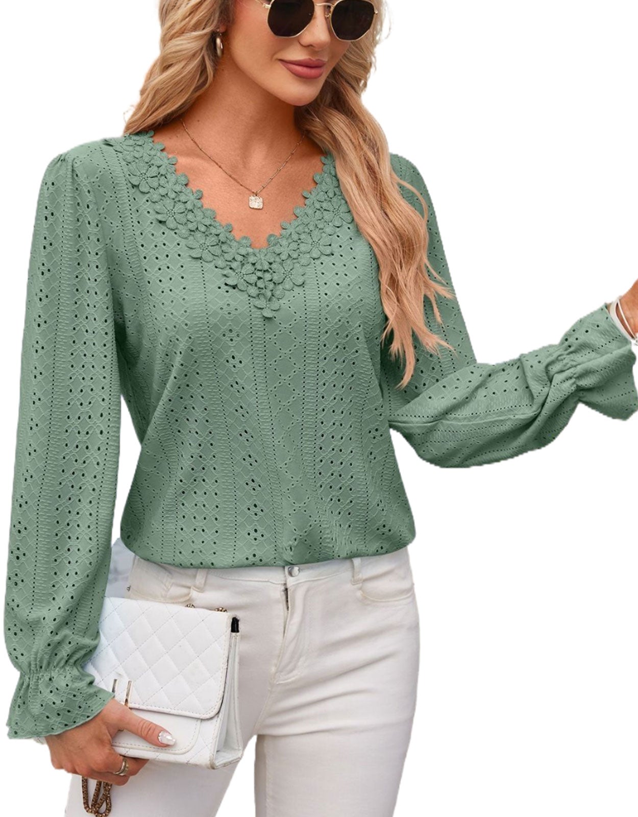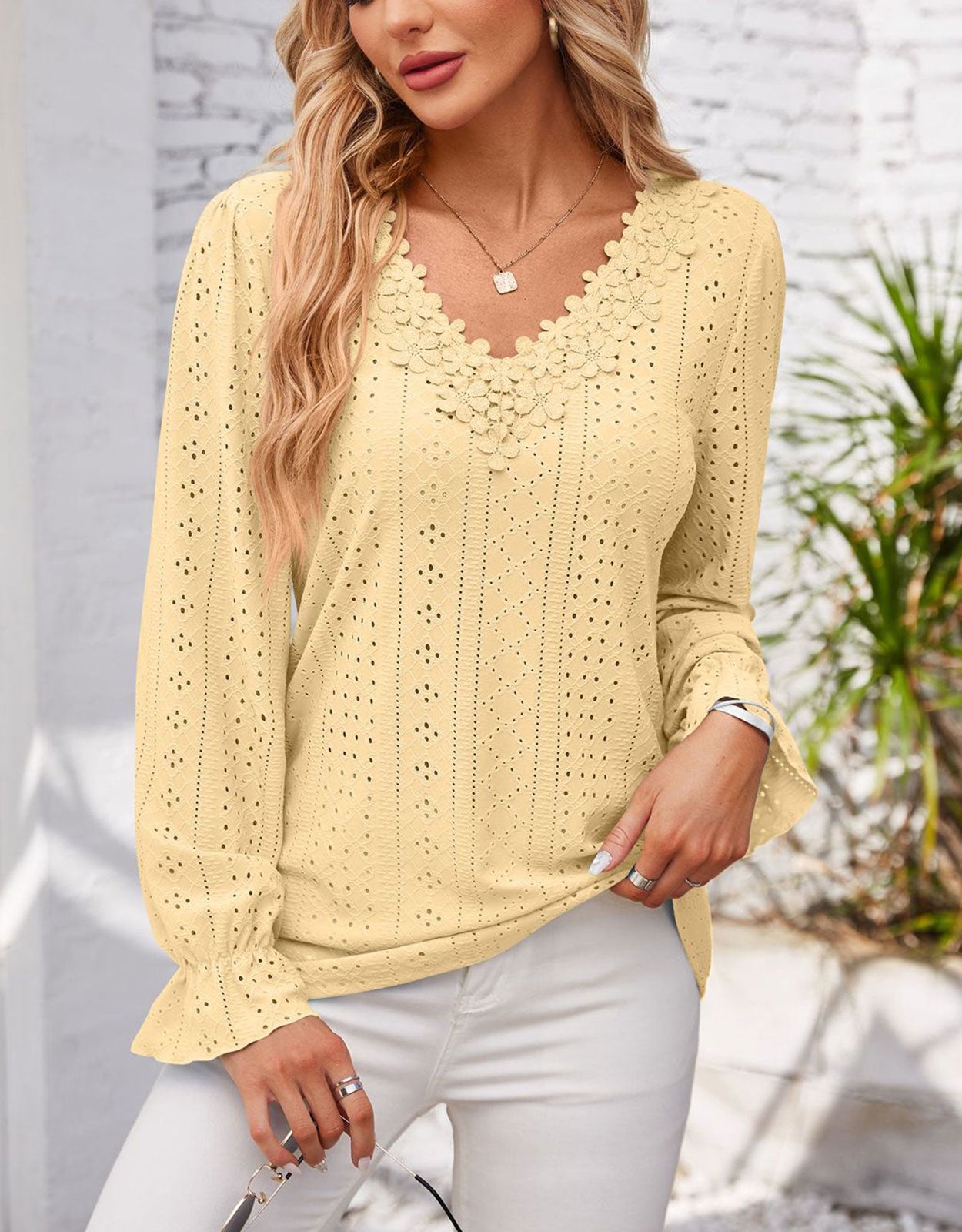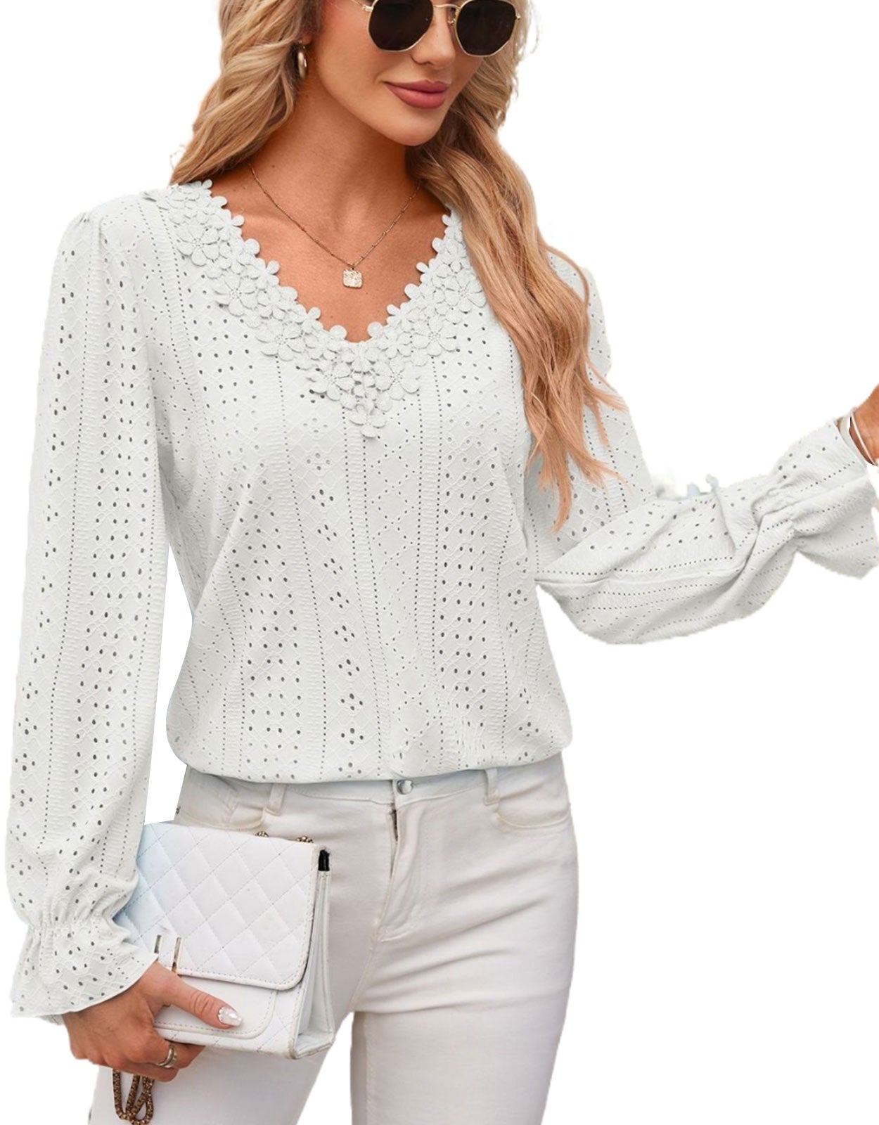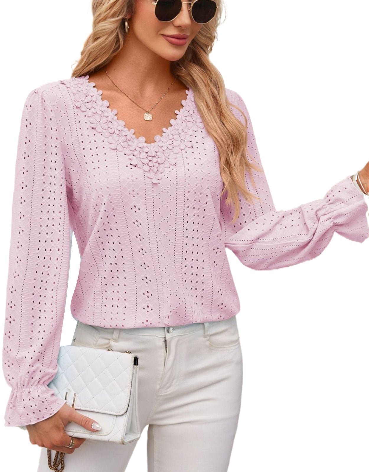 Hollow Eyelet Tops Blouse
