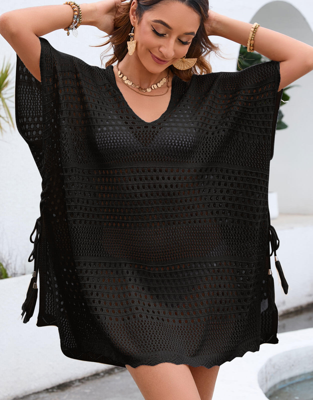 ❤Material:100% Polyester,Soft and comfortable crochet knit bathing suit cover up for women.