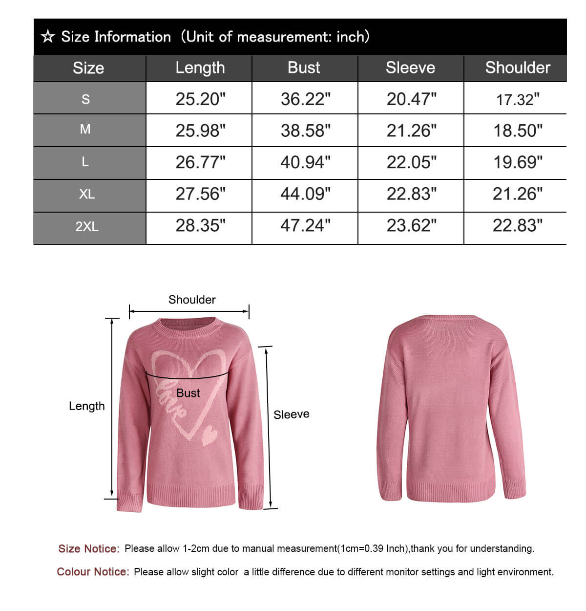 - Features: Round neck, Large heart, dropped shoulder, knitted, long sleeve, A love is inlaid on the big heart pattern, and there is a small knitted solid heart pattern