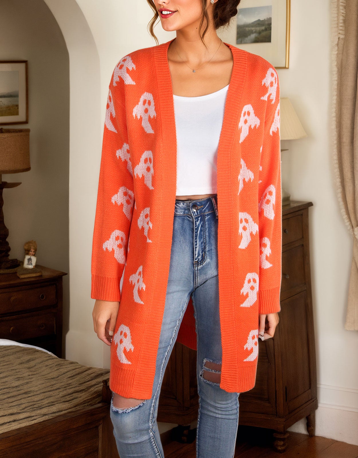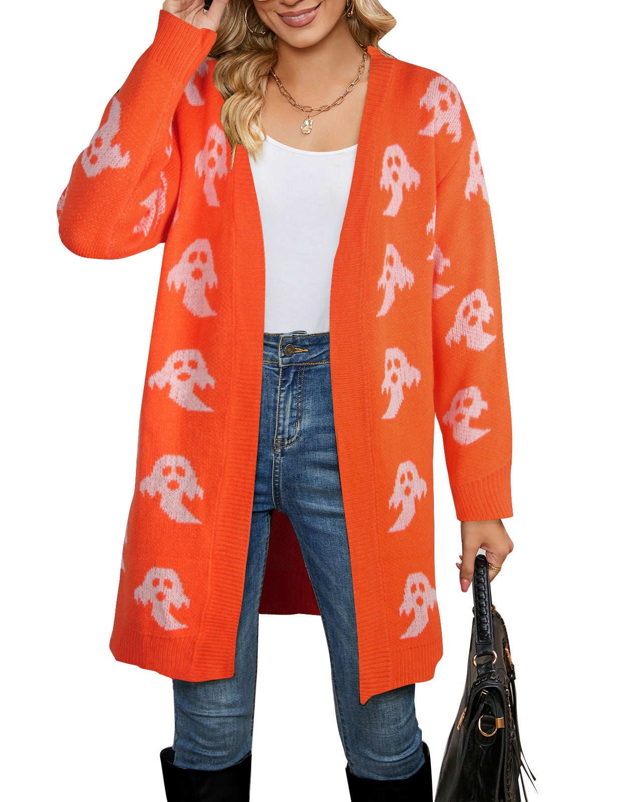 ❤Occasion: Halloween Long Sleeve Cardigan Ghost Sweater works better with jeans, making you more eye-catching in daily life. Soft and warm, suitable for spring, autumn and winter. Very suitable for daily wear, home, school, work, office, street, party or Halloween, etc.