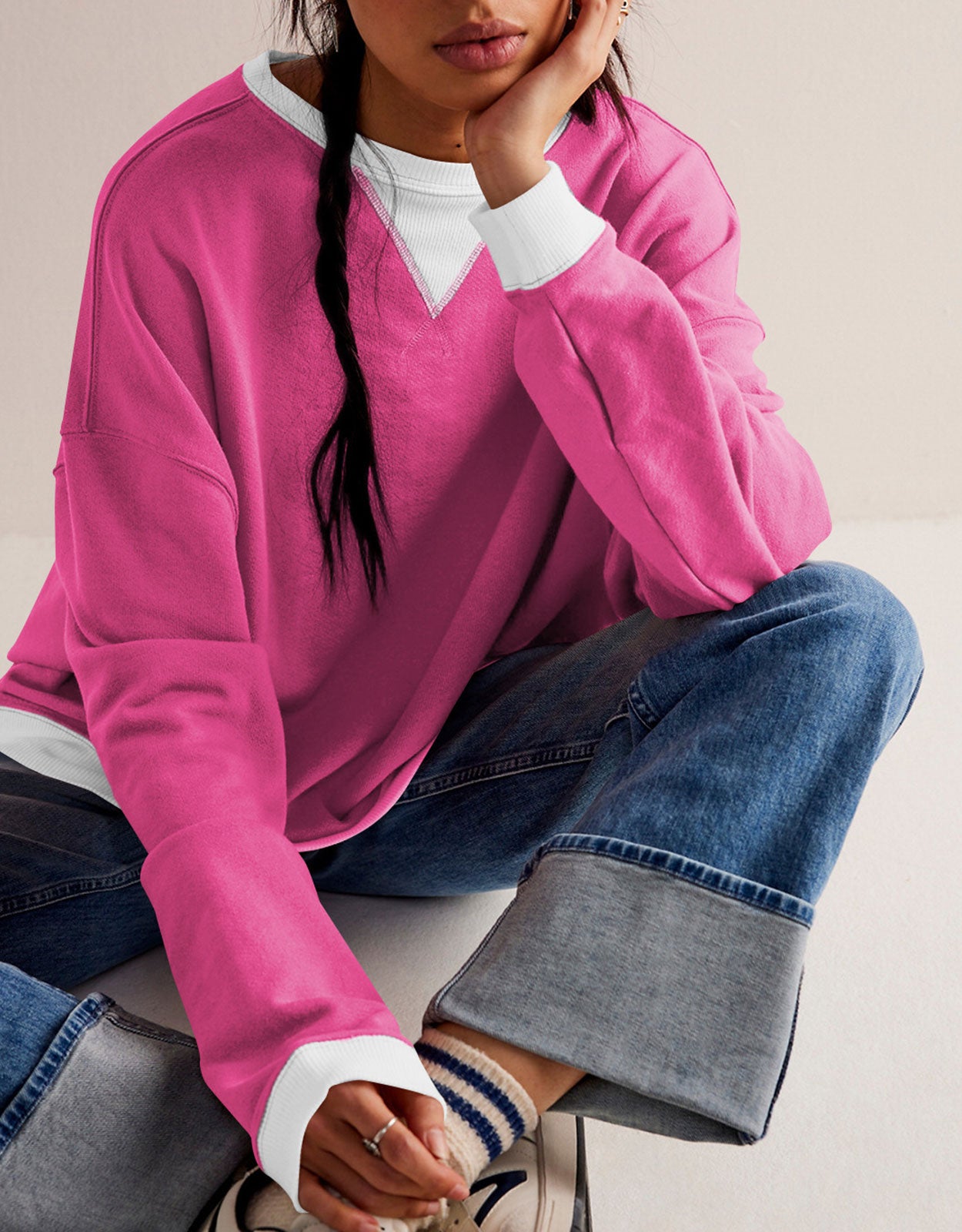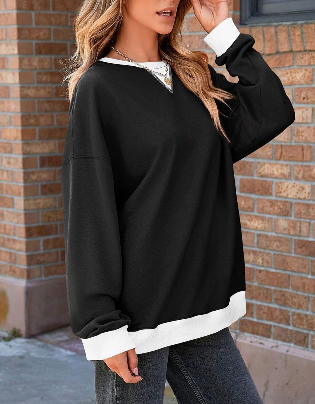 - Features:Add a cool and classic touch to your sweatshirt collection with this timeless piece featured in a slouchy, oversized fit with crew neckline, dropped shoulders, and contrast trims for an added special touch.
