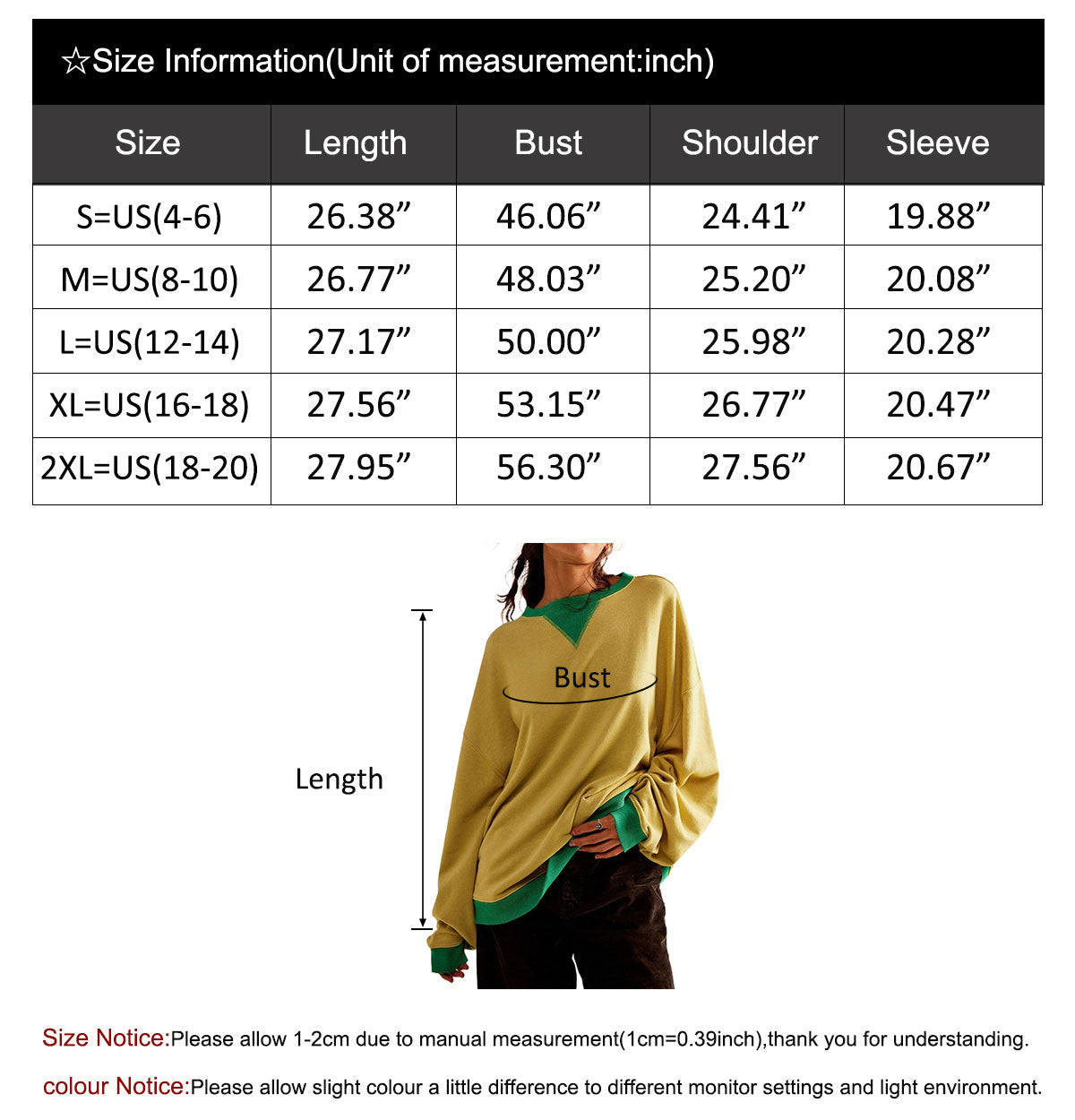 S=US(4-6)---Length 26.38""-----Bust 46.06""----shoulder24.41""---sleeve19.88""