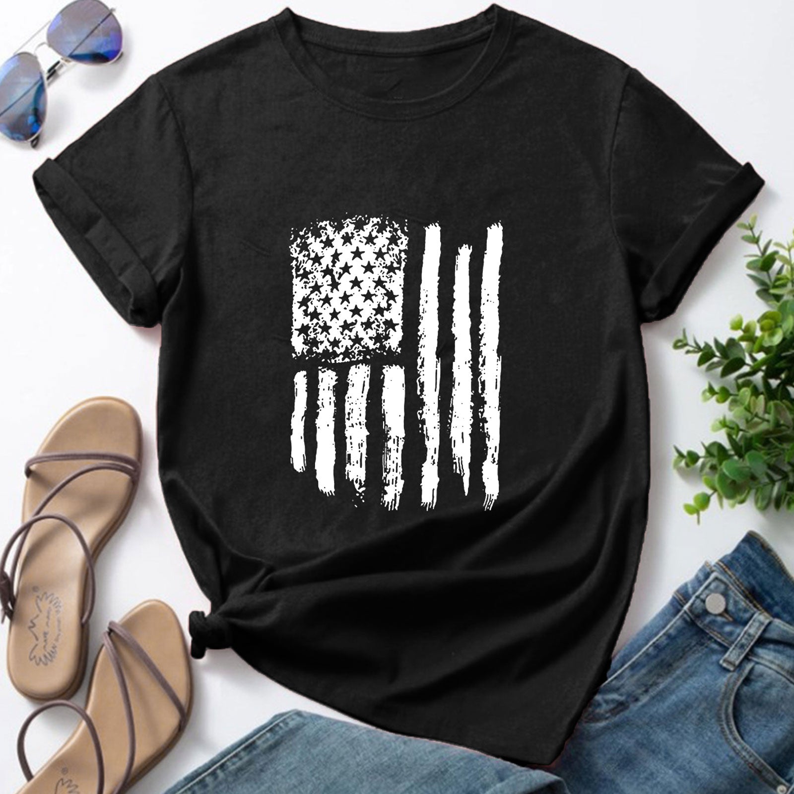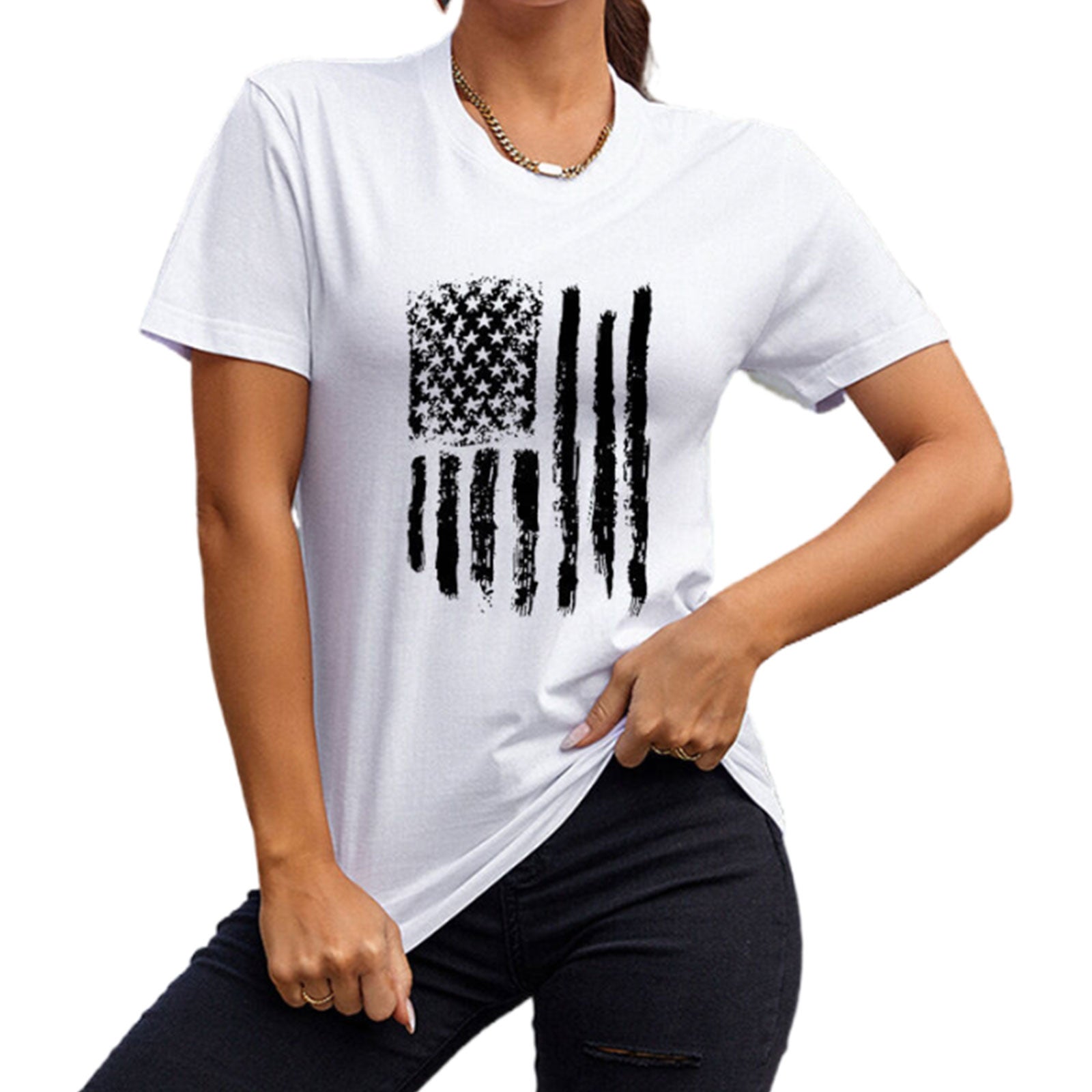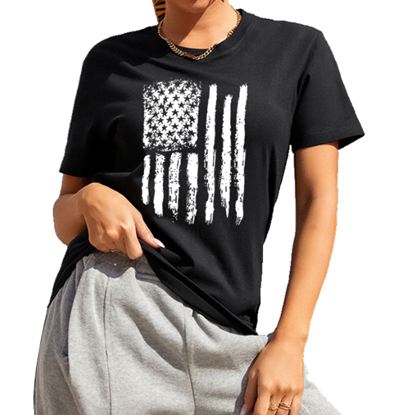 ❤This women's American flag T-shirt can be perfectly matched with any type of jeans or shorts, suitable for summer vacations and going out.
