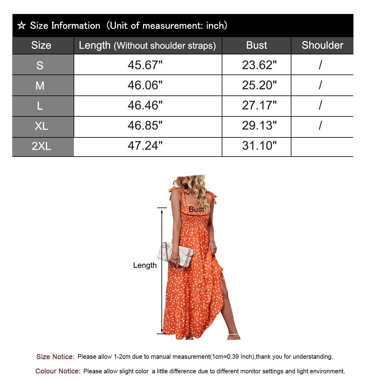 2XL---Length ithout shoulder straps 47.24""-----Bust 31.10""