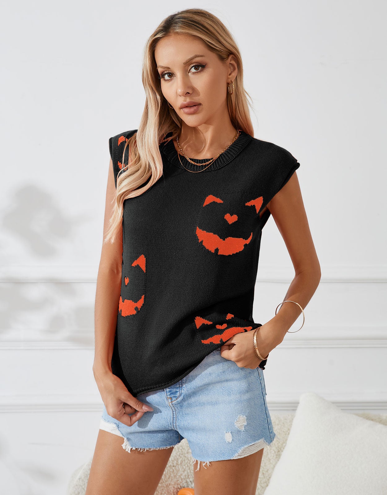 ❤Occasion:Halloween Pumpkin Smiley Sleeveless Round Neck Sweater works better with jeans, making you more eye-catching in daily life. Soft and warm, suitable for spring, autumn and winter. Great for daily wear, home, school, work, office, street, party or Halloween, etc.