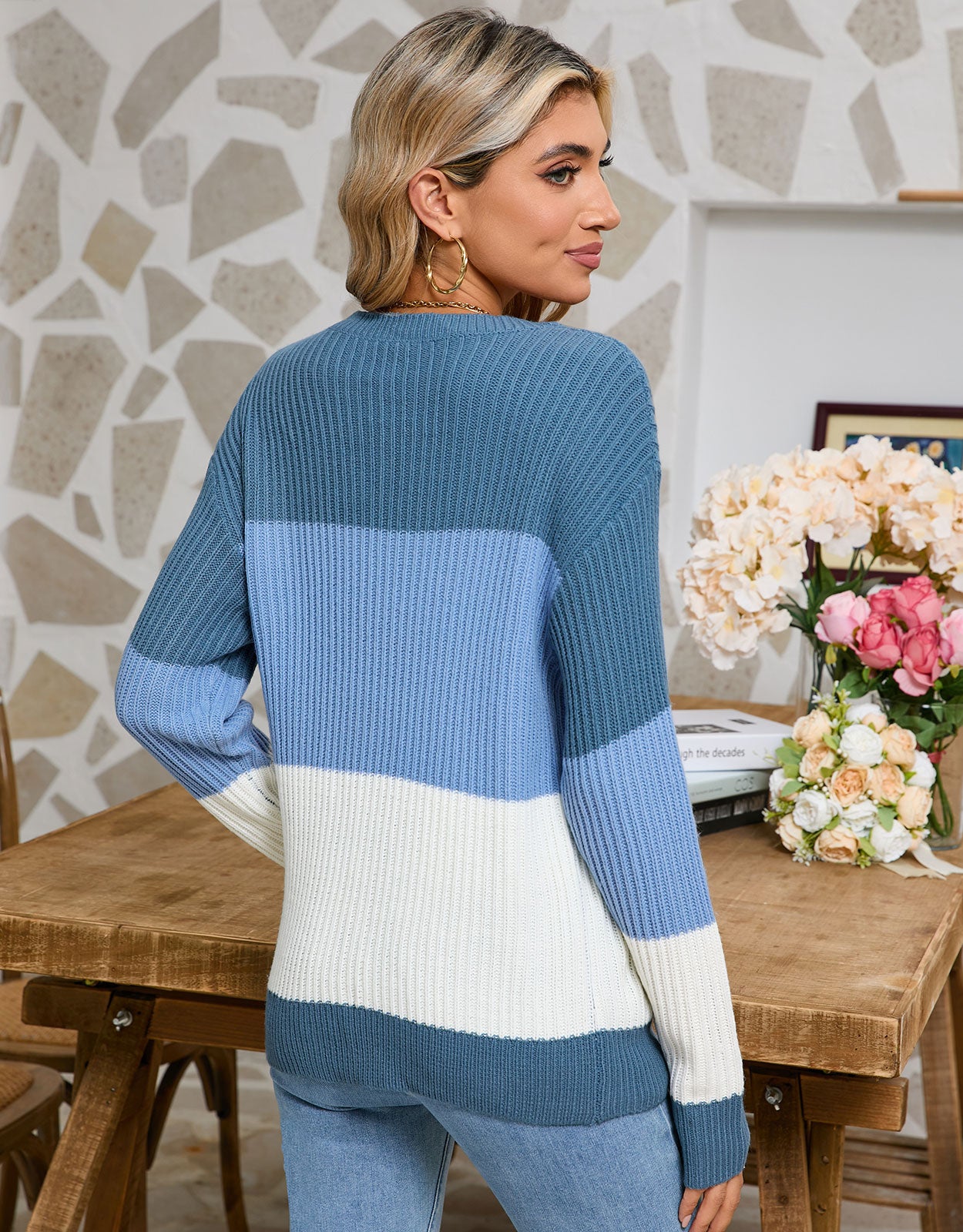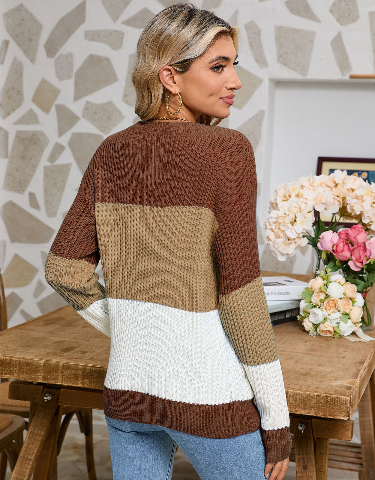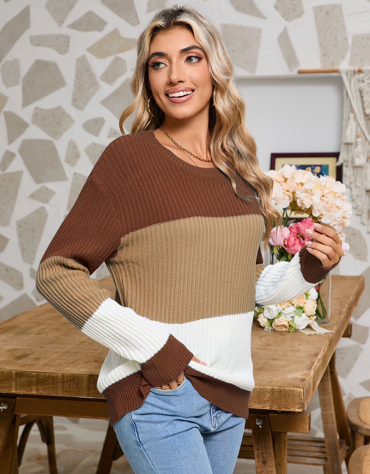 Multicolor / Casual / Colorblock / Pullovers / Regular / Round Neck