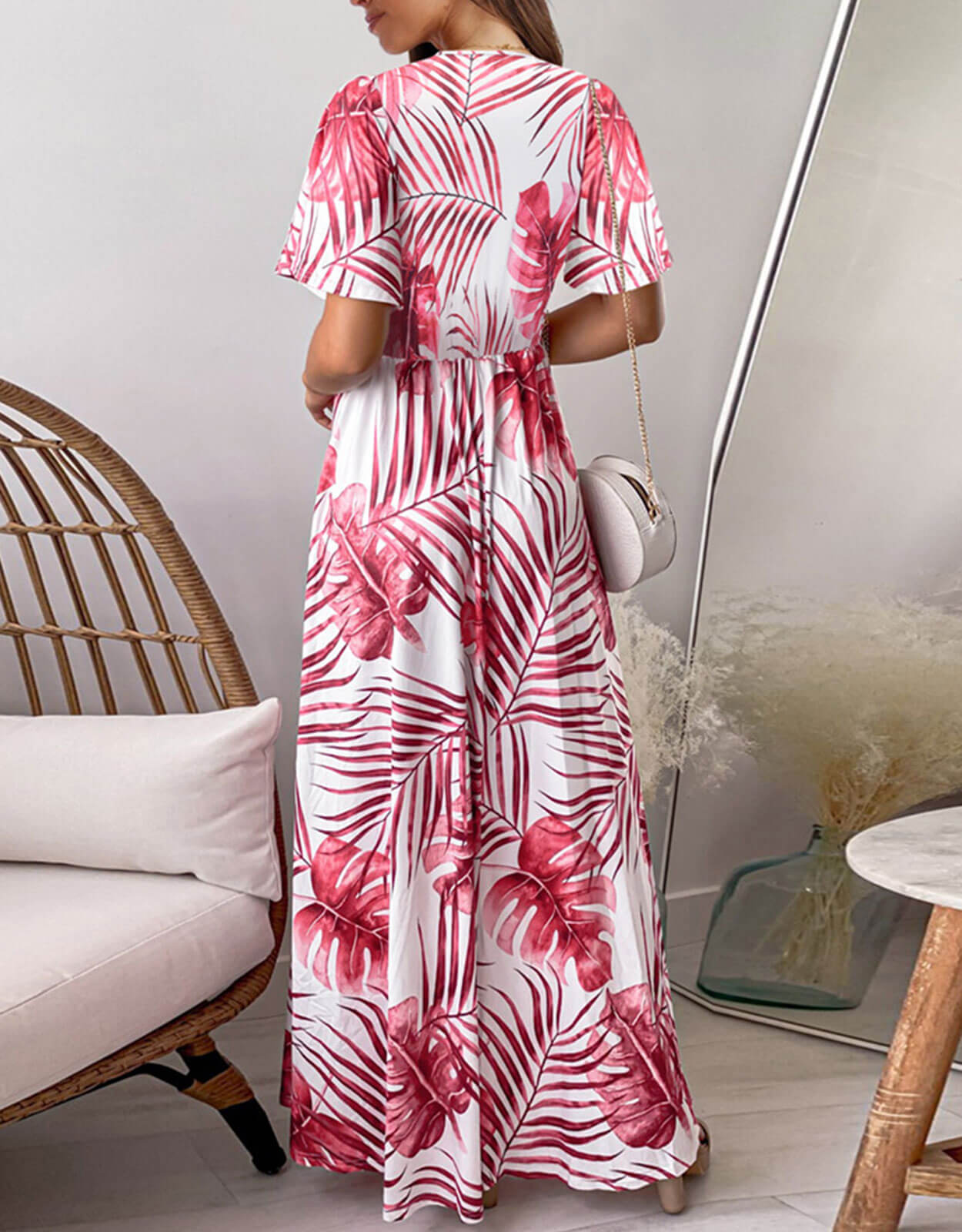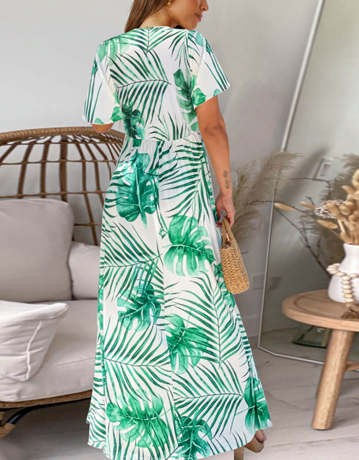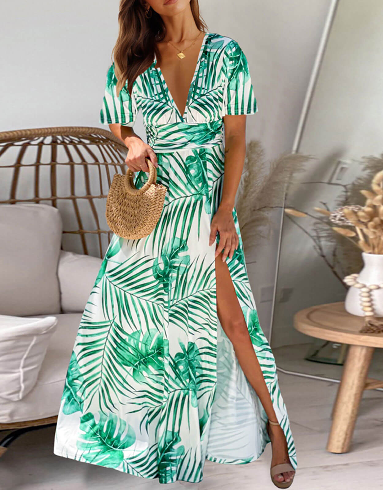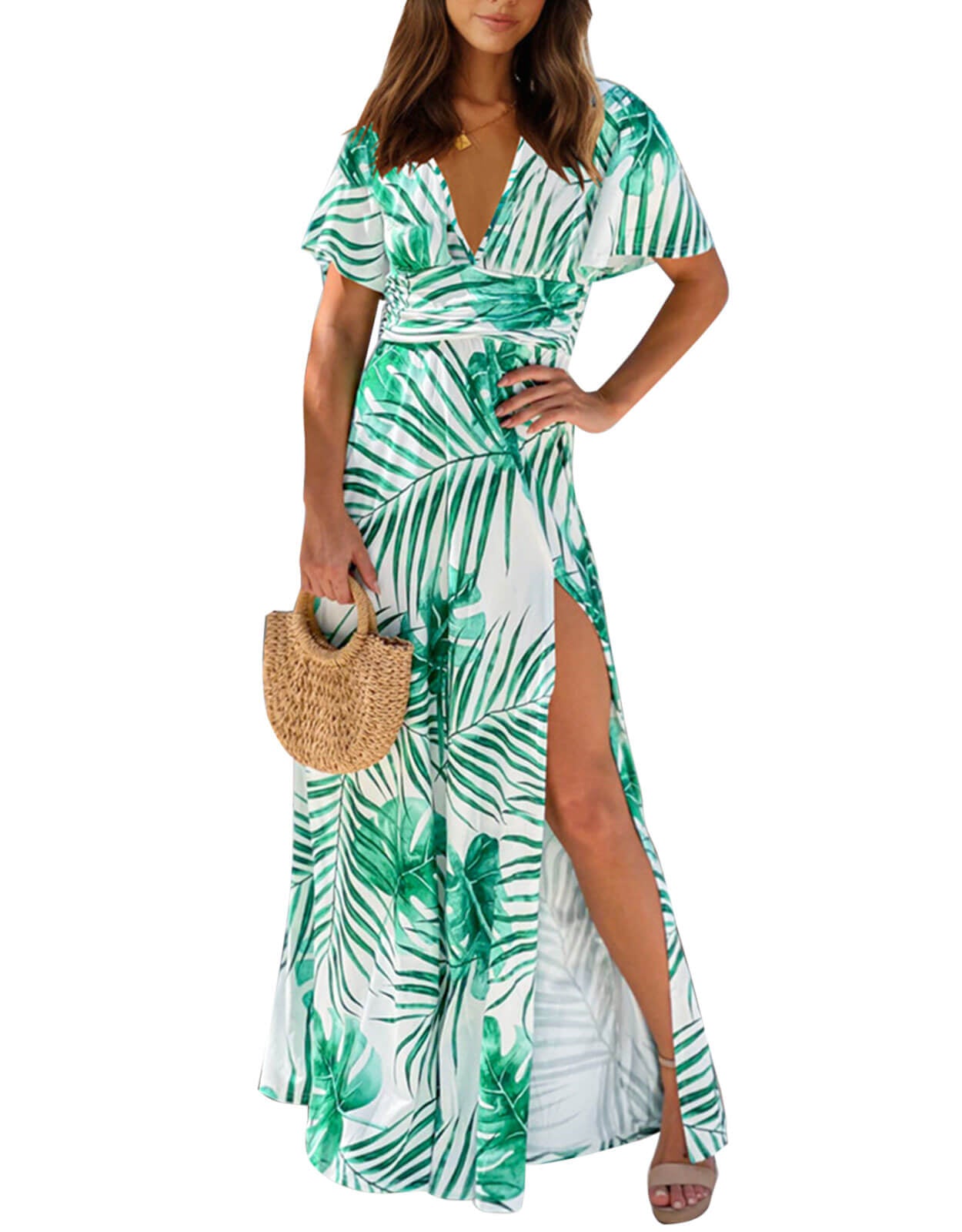 Summer Dresses for Women Tropical Leaf Print Maxi Dress
