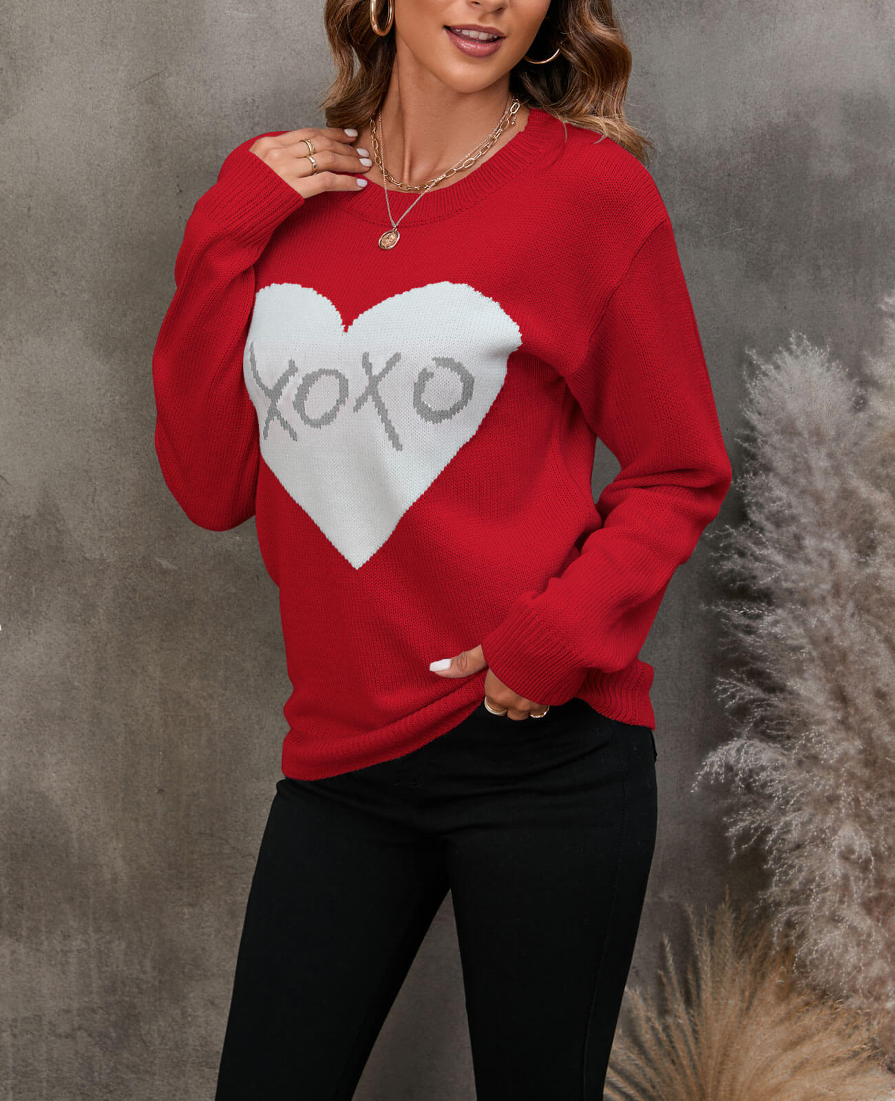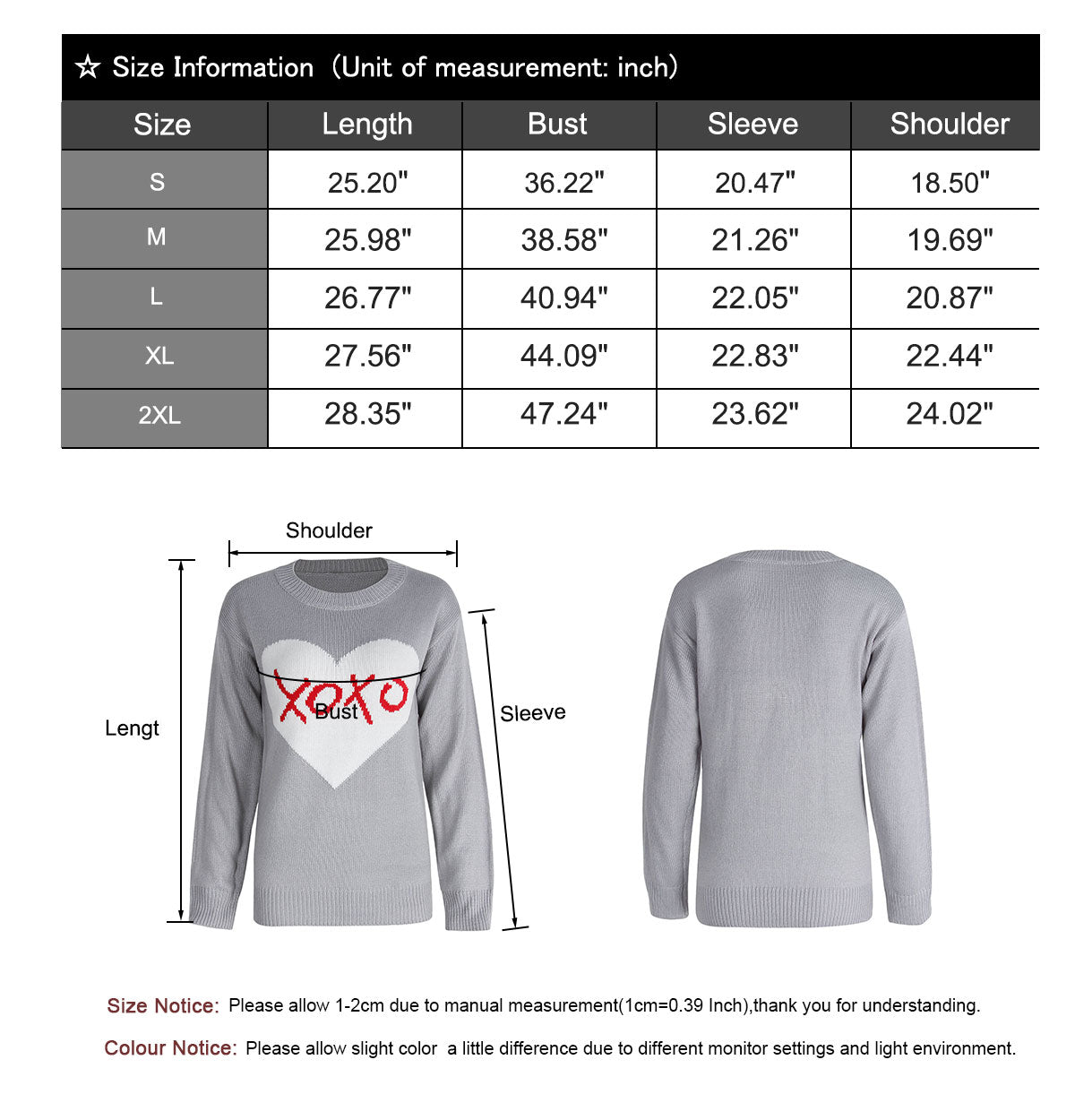 Shermie XXOO Inside Heart Pattern Sweaters
