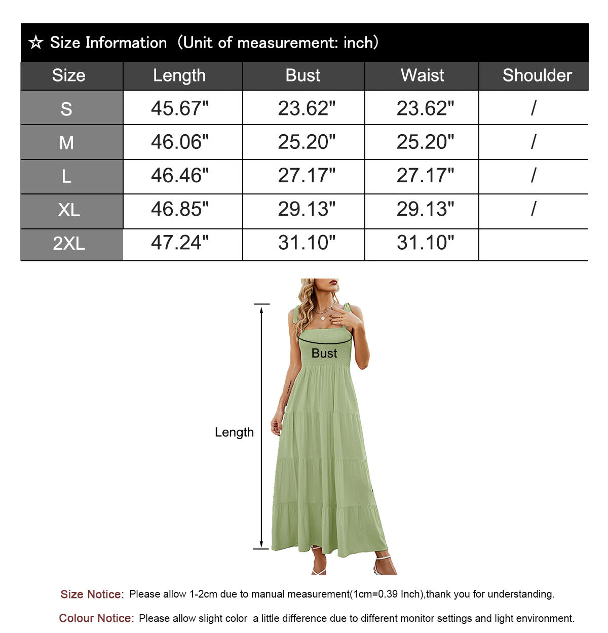 S---Length 45.67""-----Bust 23.62""---Waist 23.62""