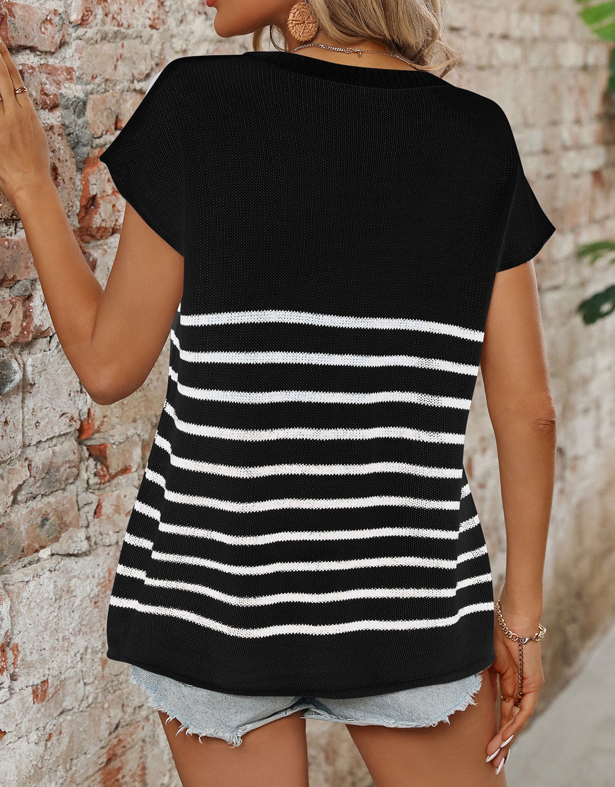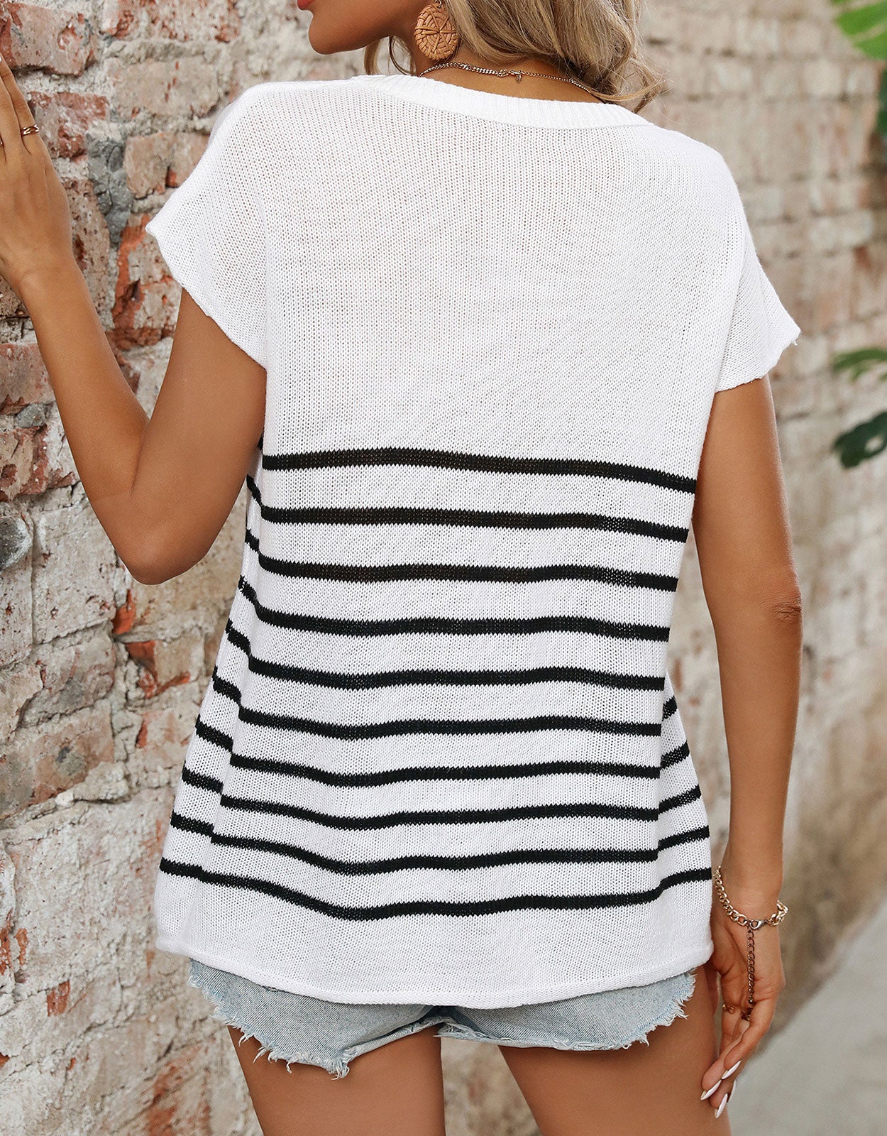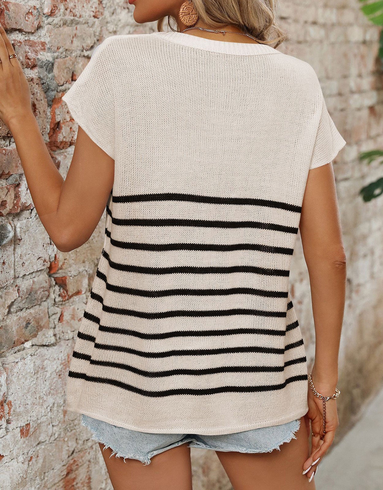 Striped Round Neck Short Sleeve Knit Top