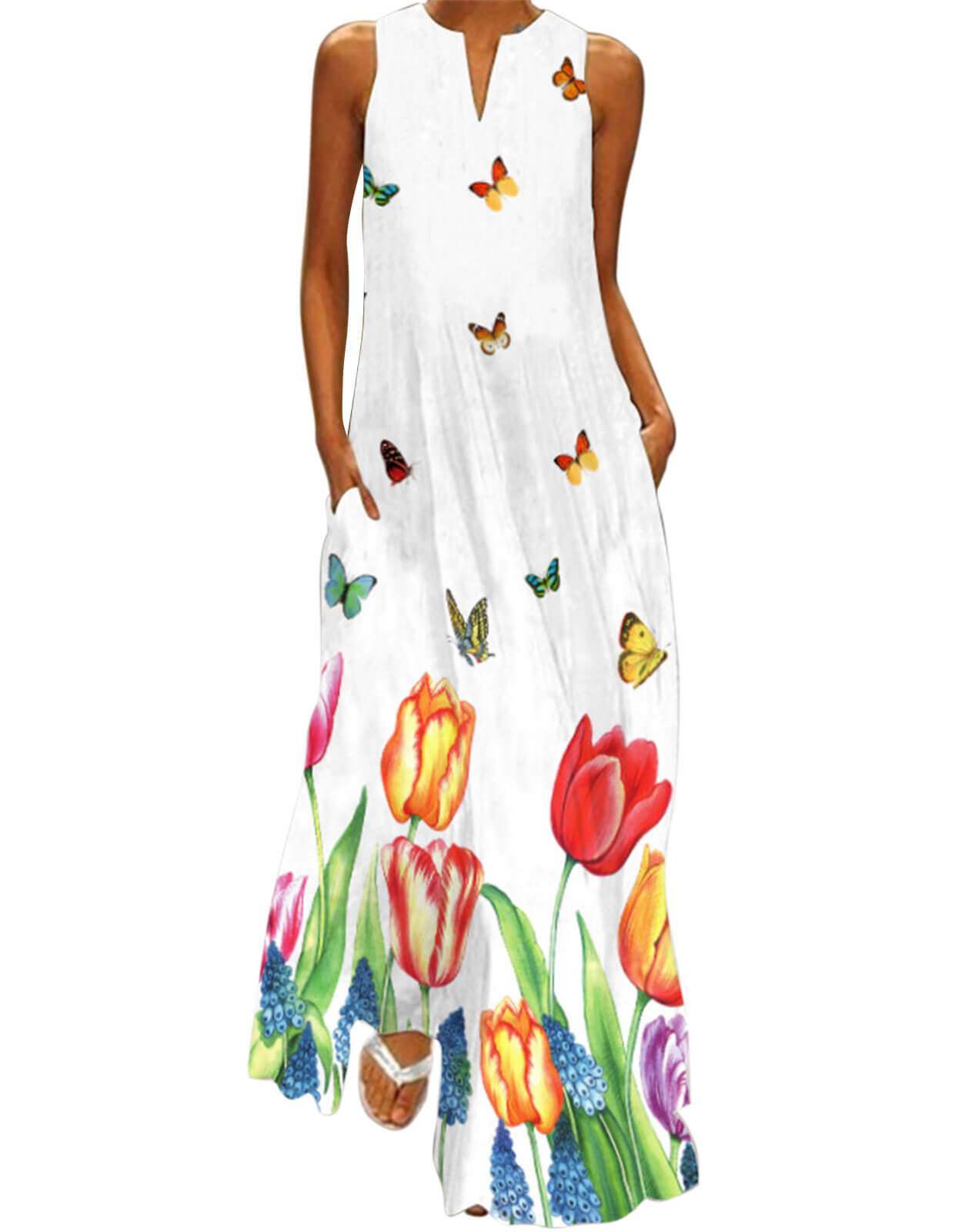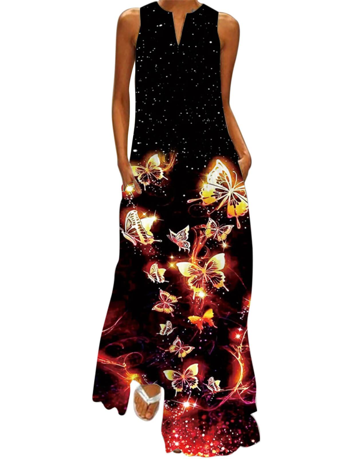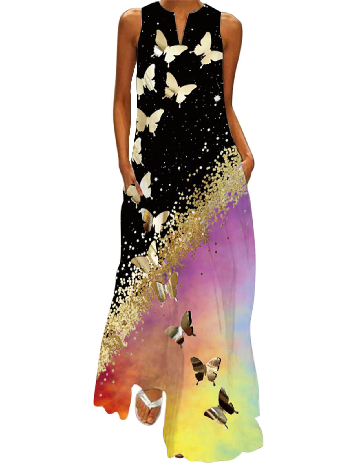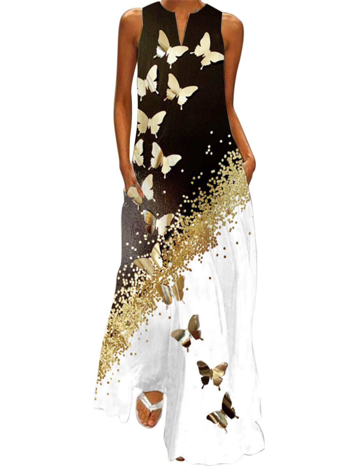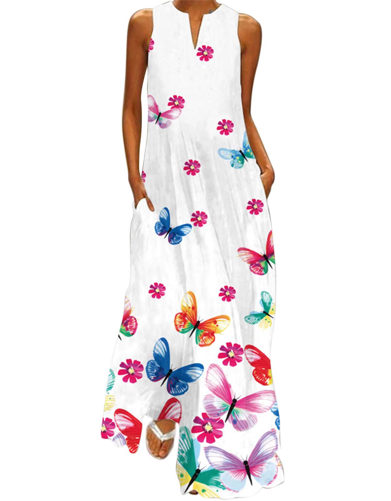 Summer Dresses for Women Butterfly and Floral Printed Maxi Dress