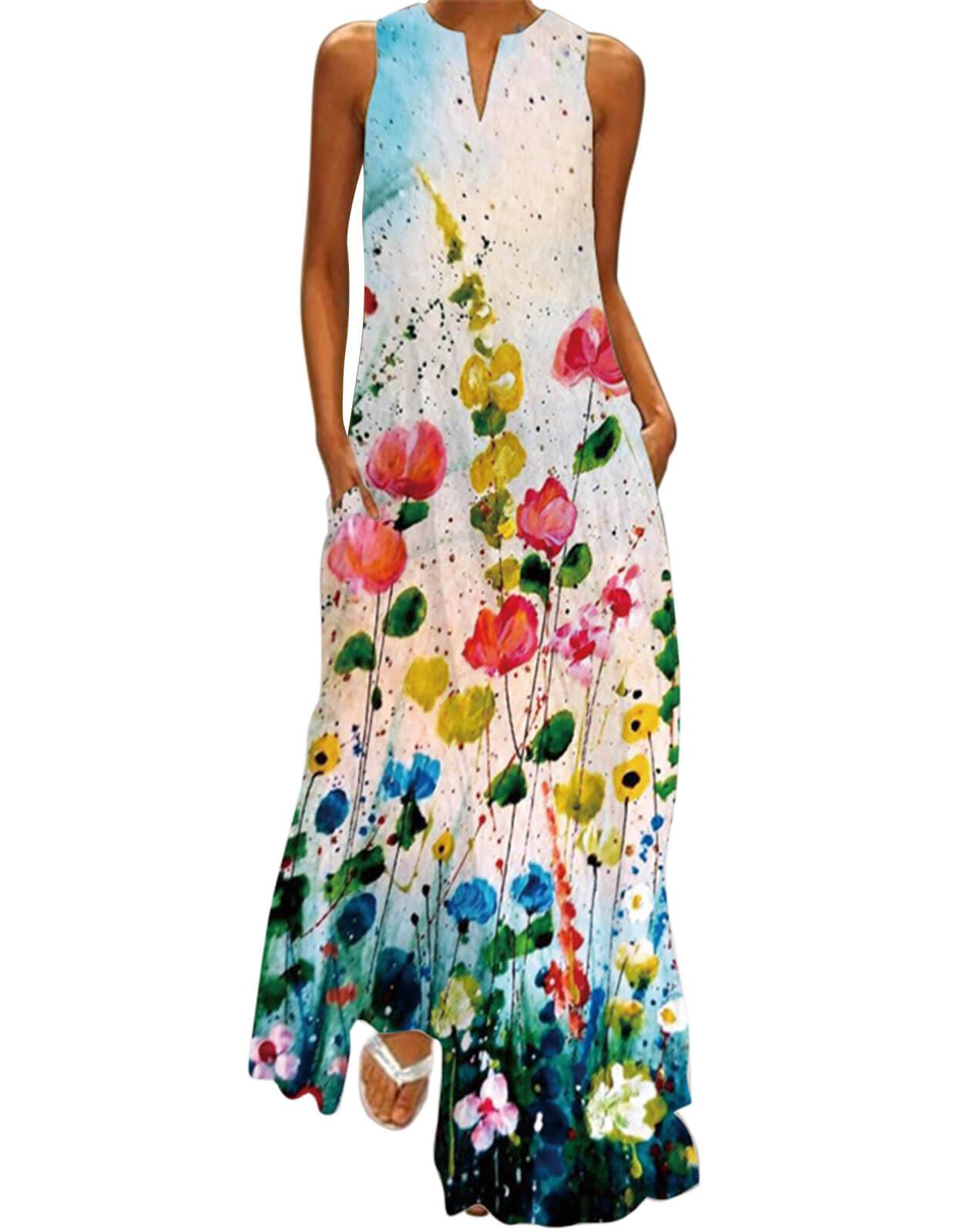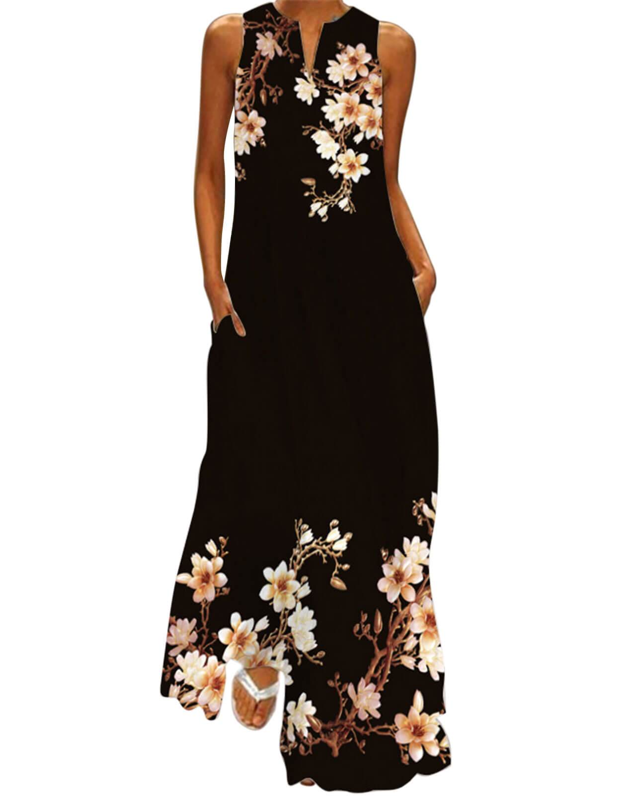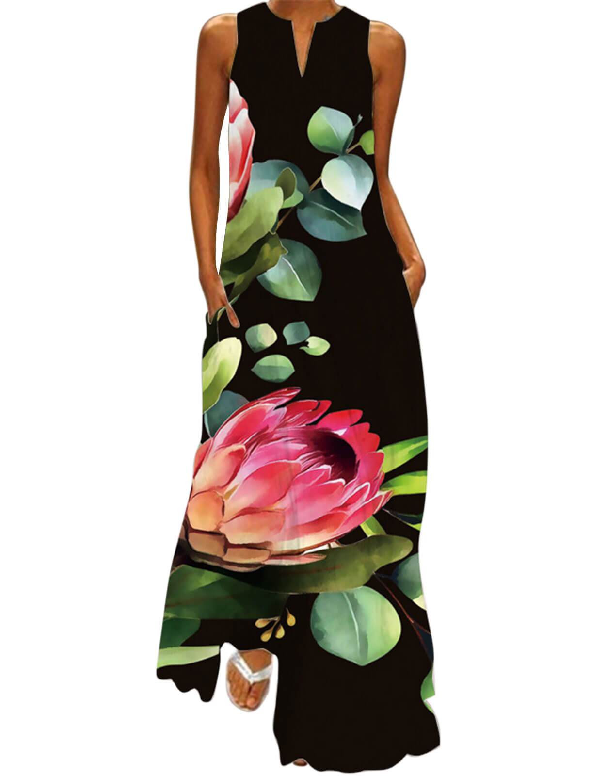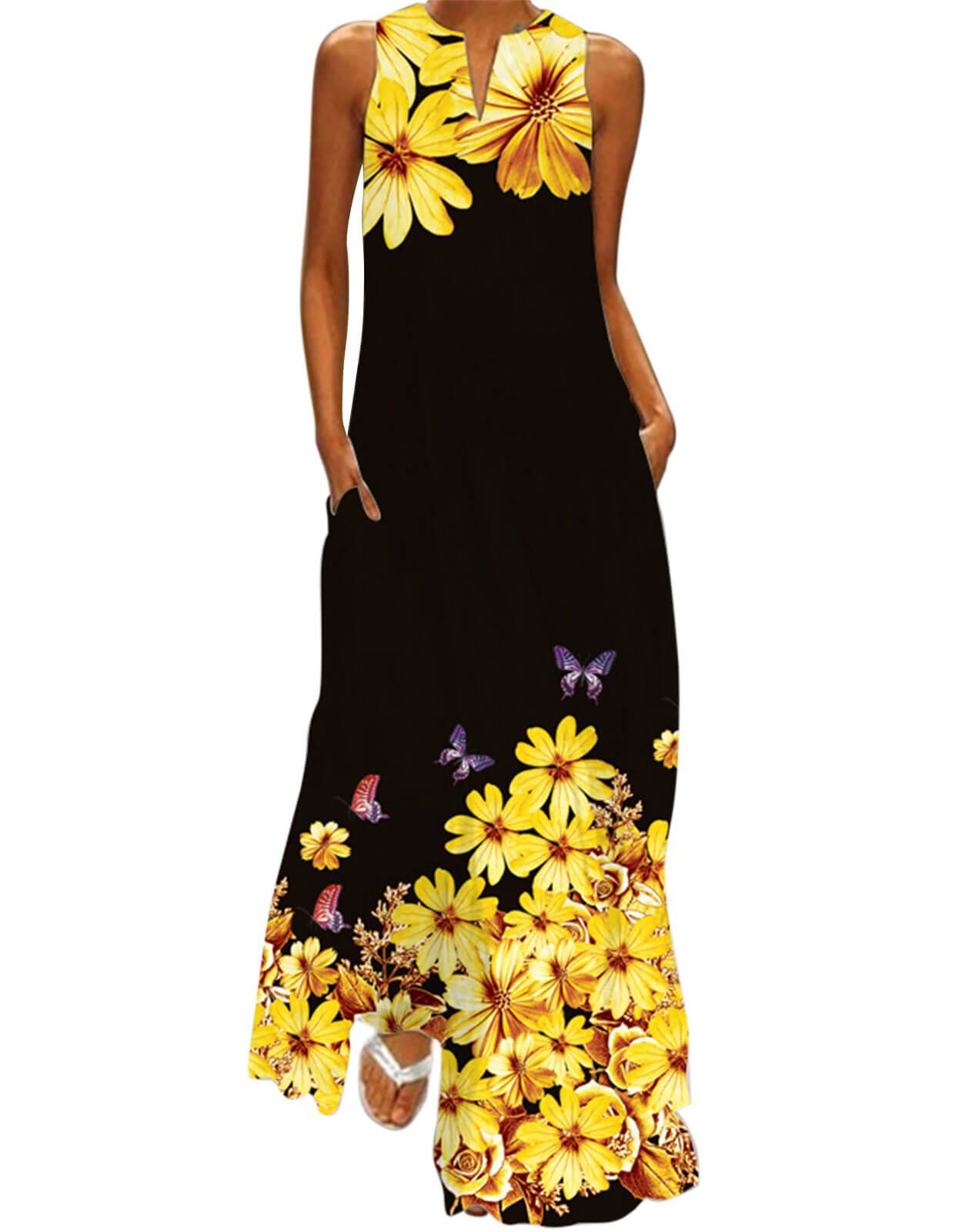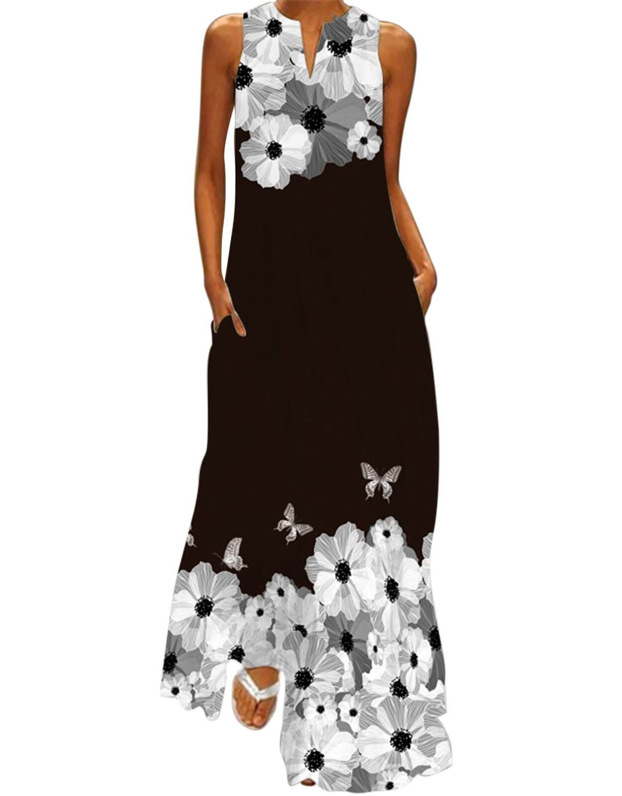 Summer Dresses for Women Butterfly and Floral Printed Maxi Dress