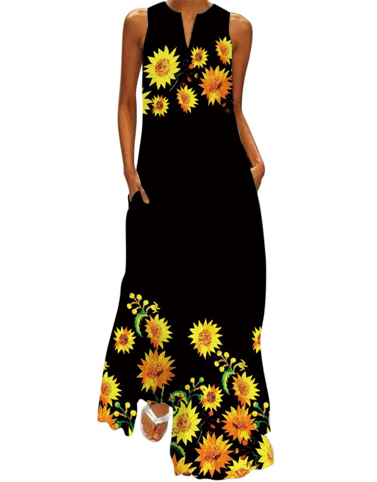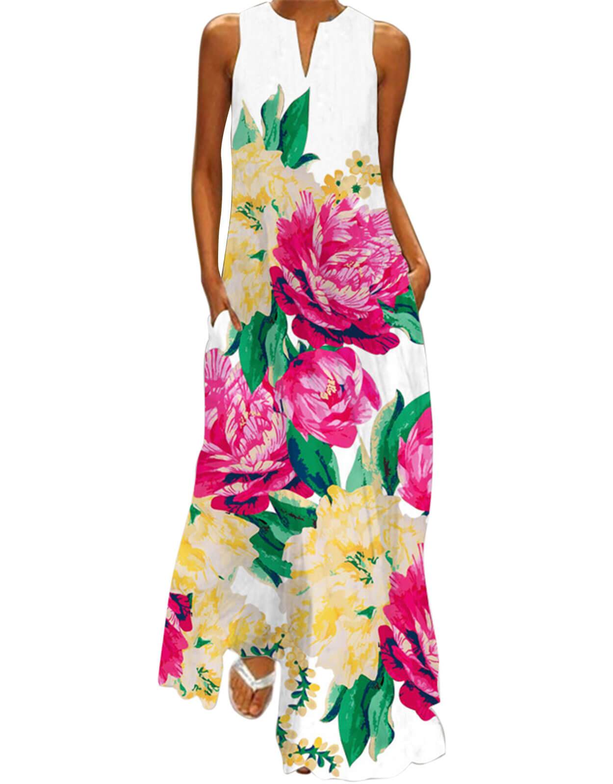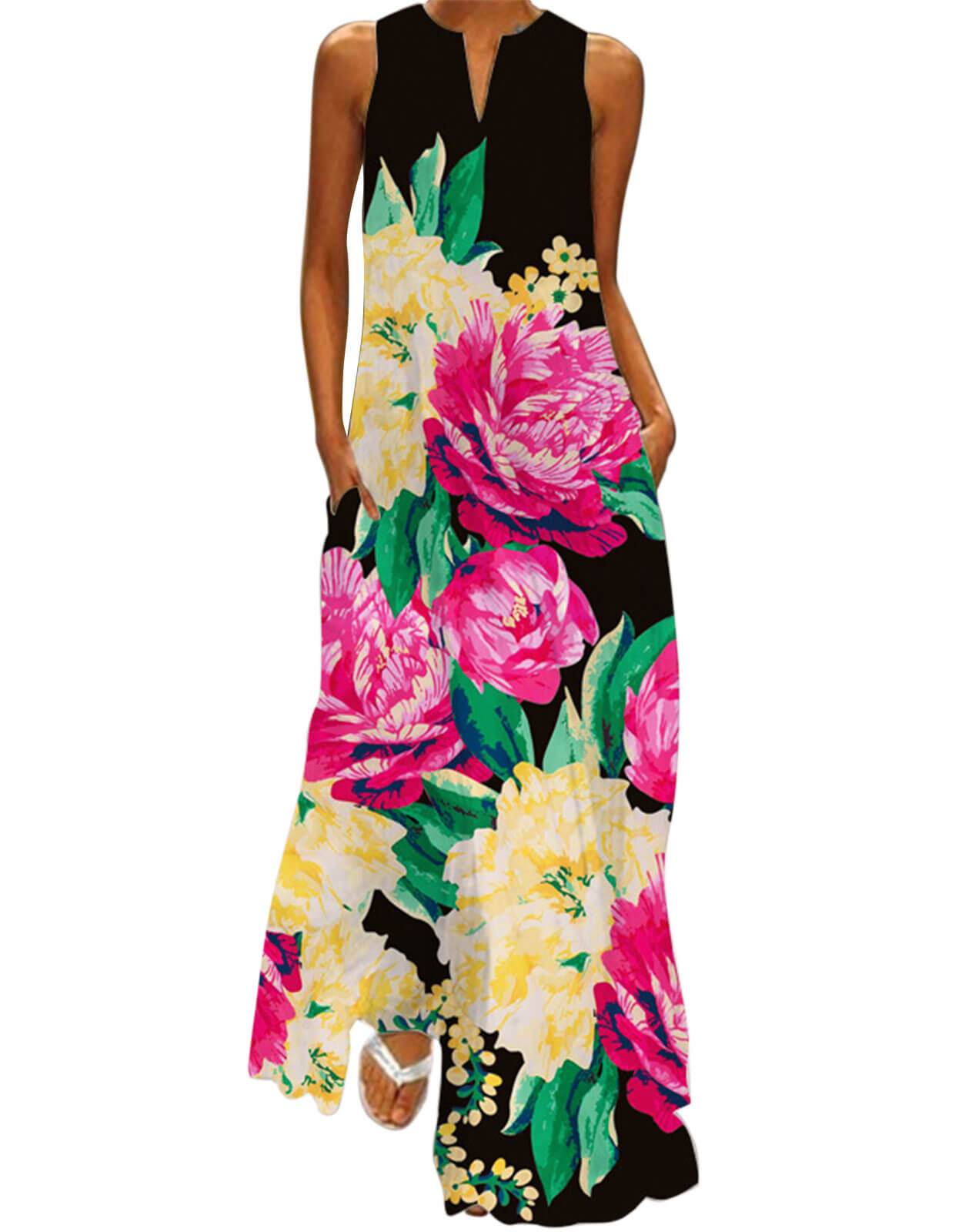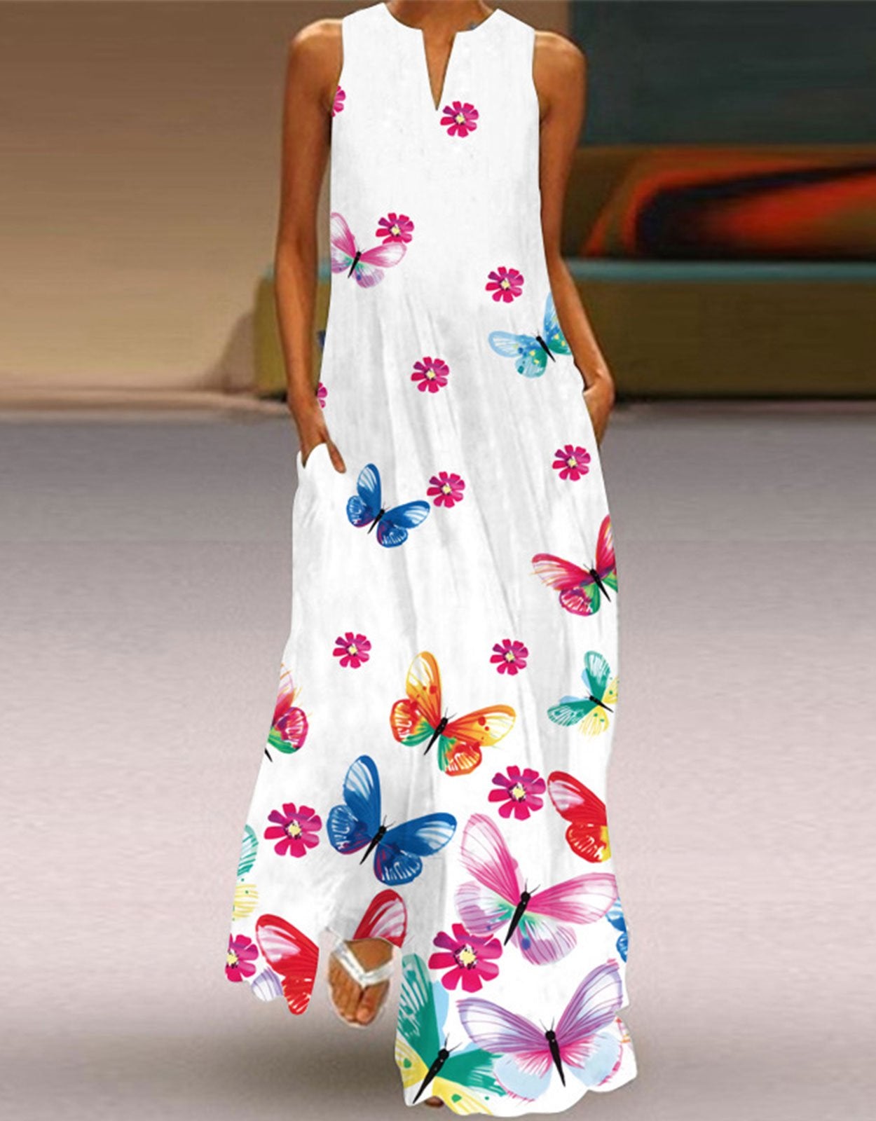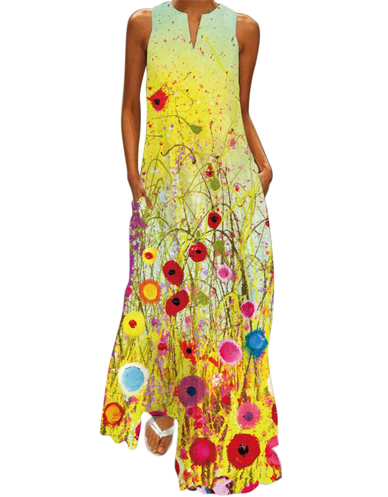 Summer Dresses for Women Butterfly and Floral Printed Maxi Dress