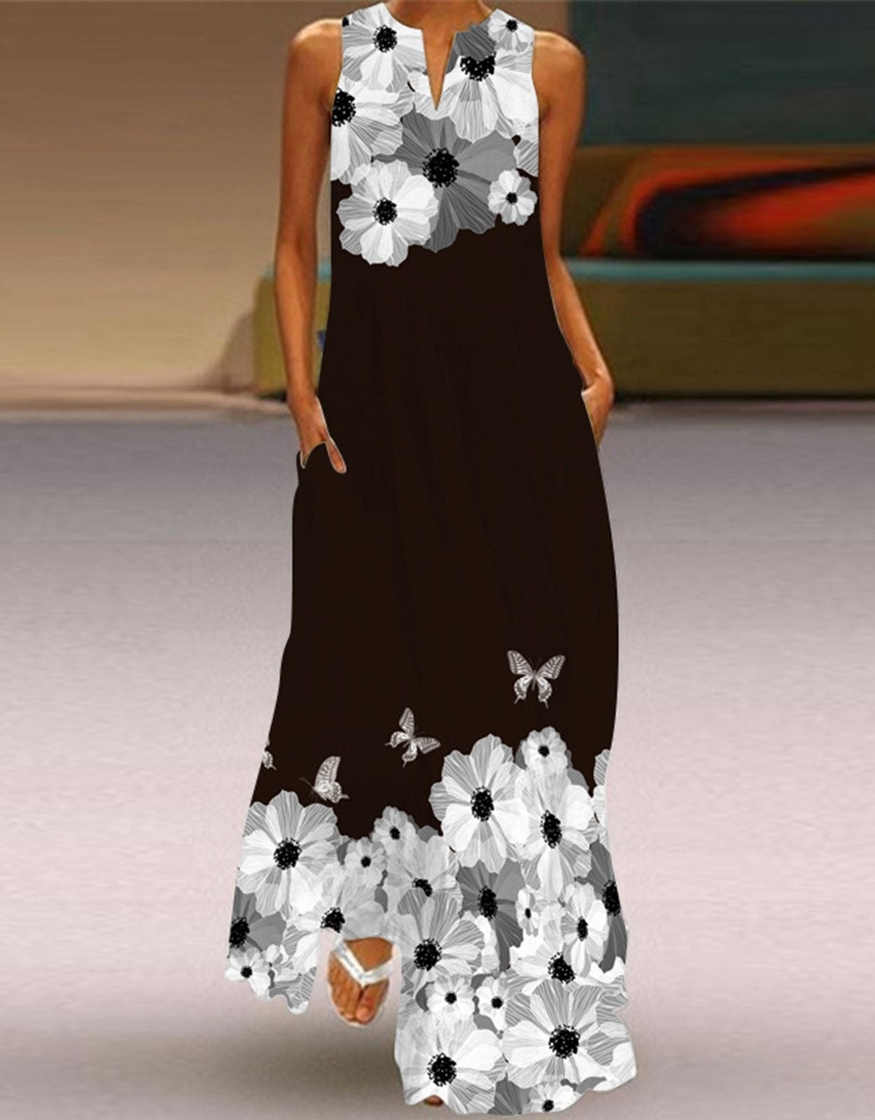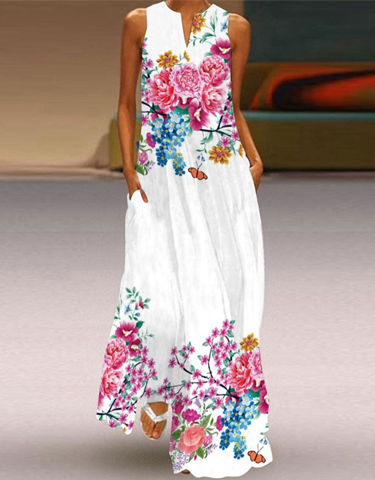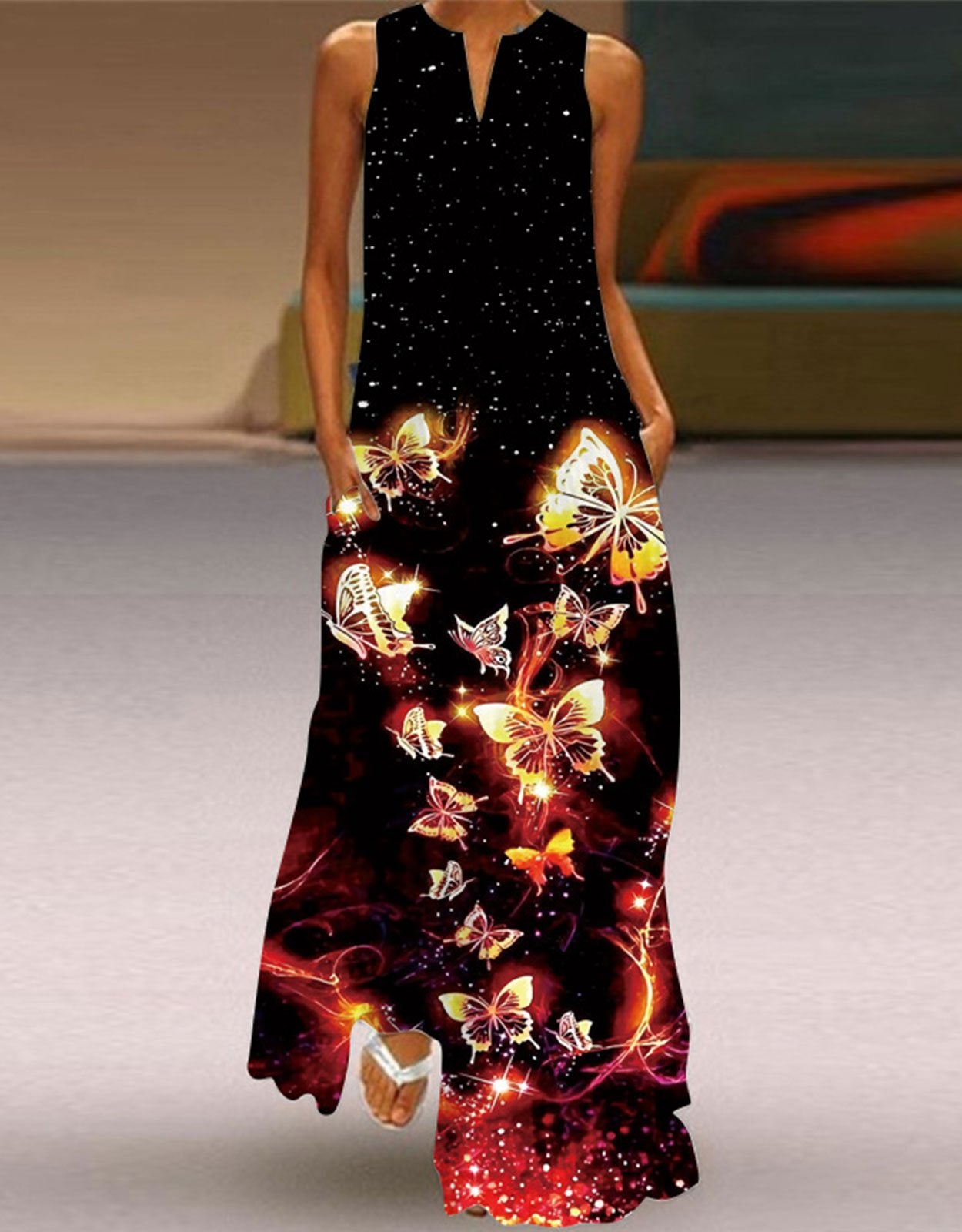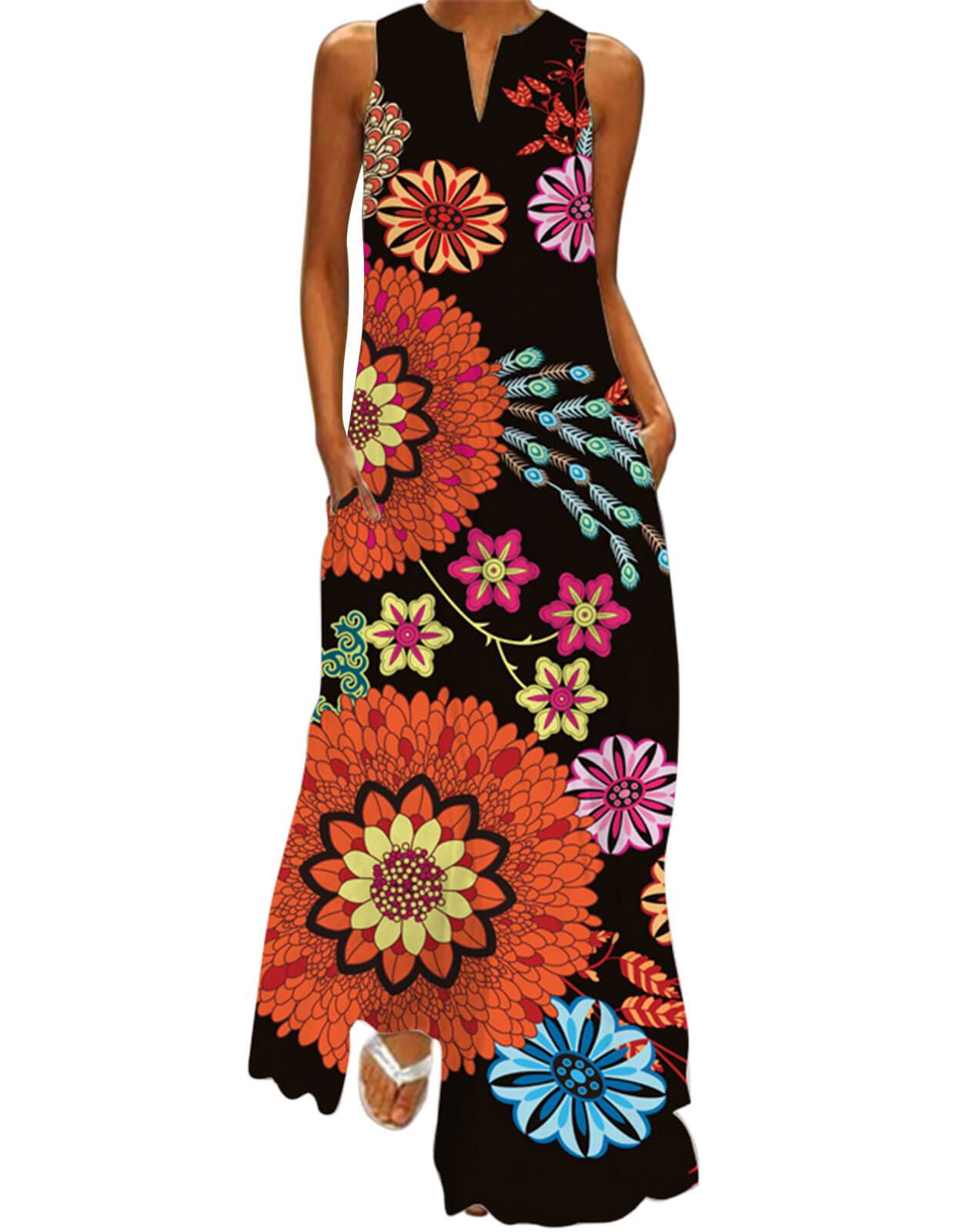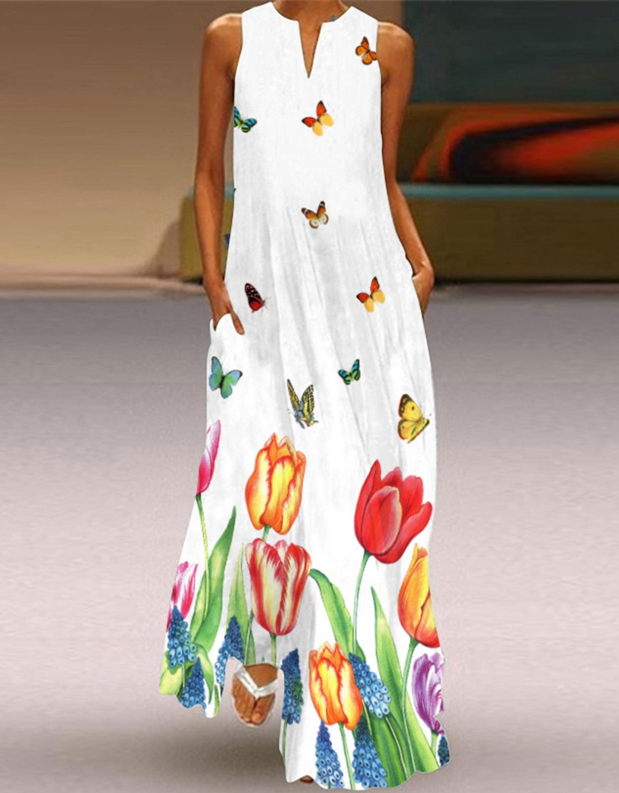 Summer Dresses for Women Butterfly and Floral Printed Maxi Dress