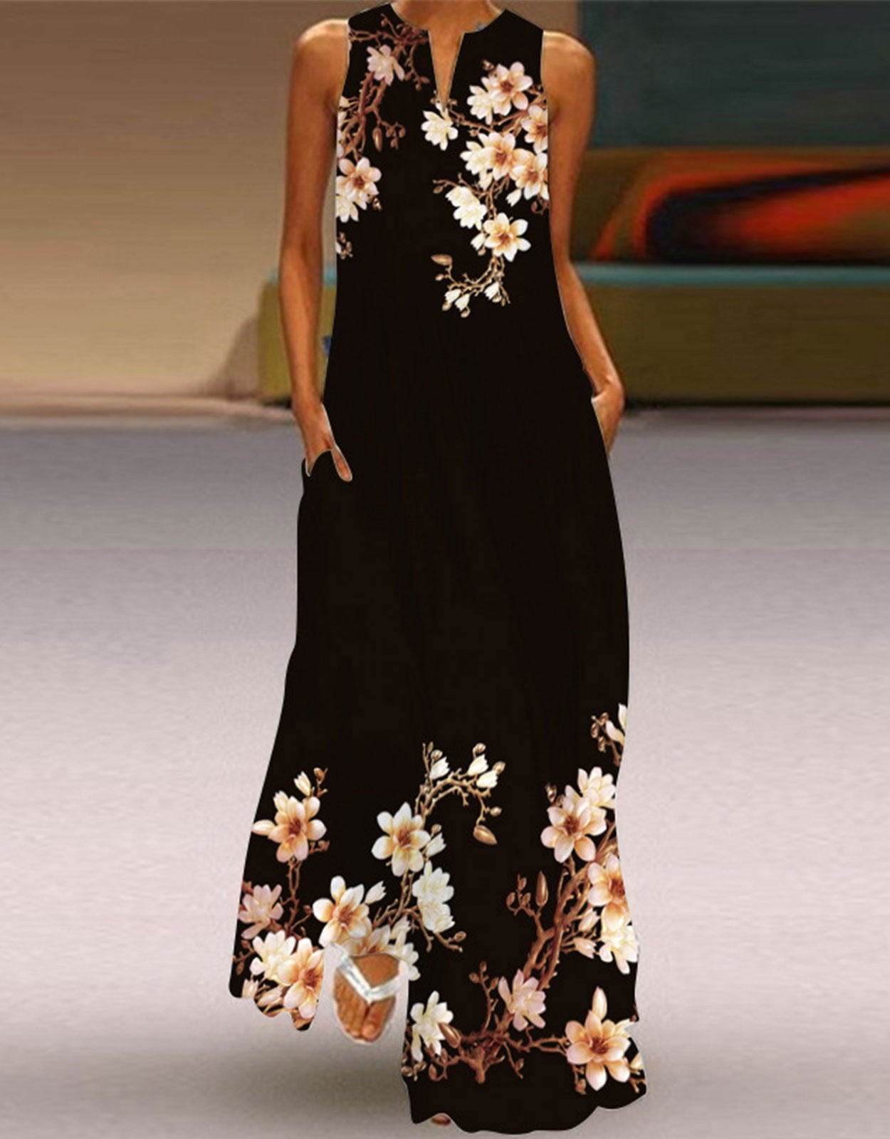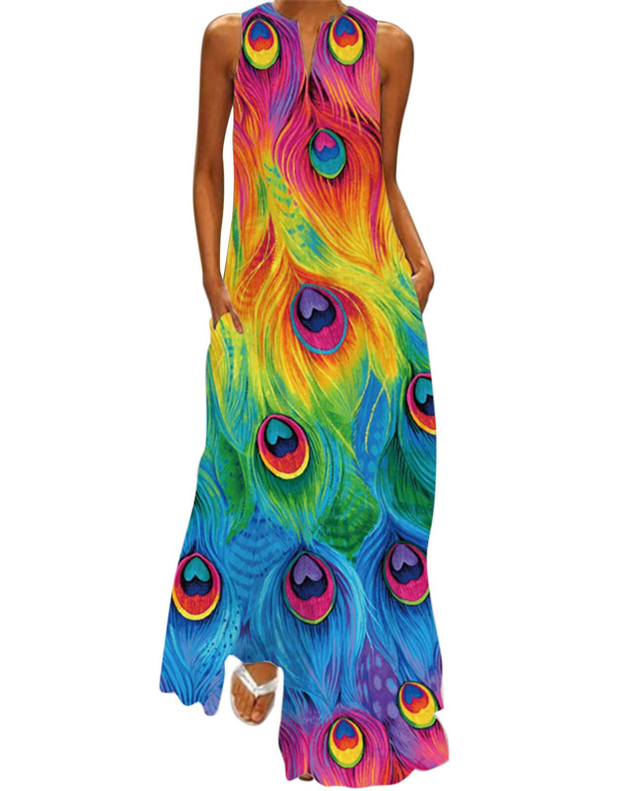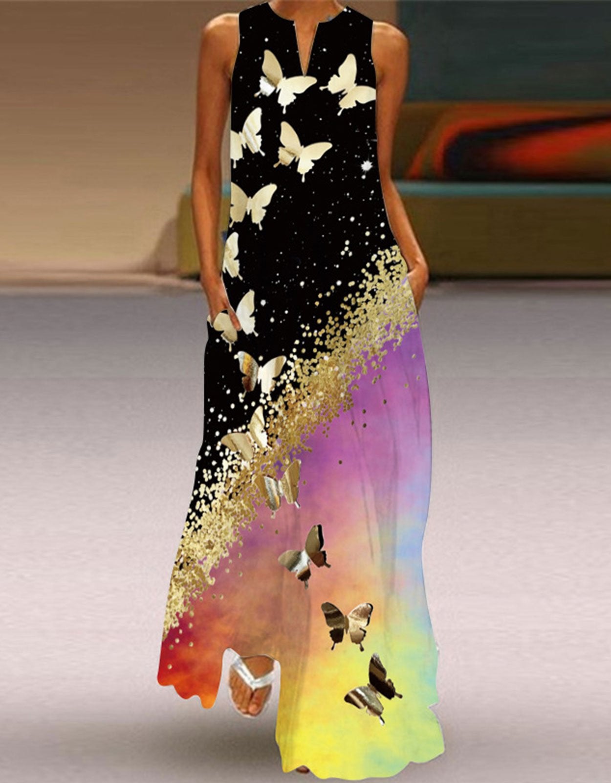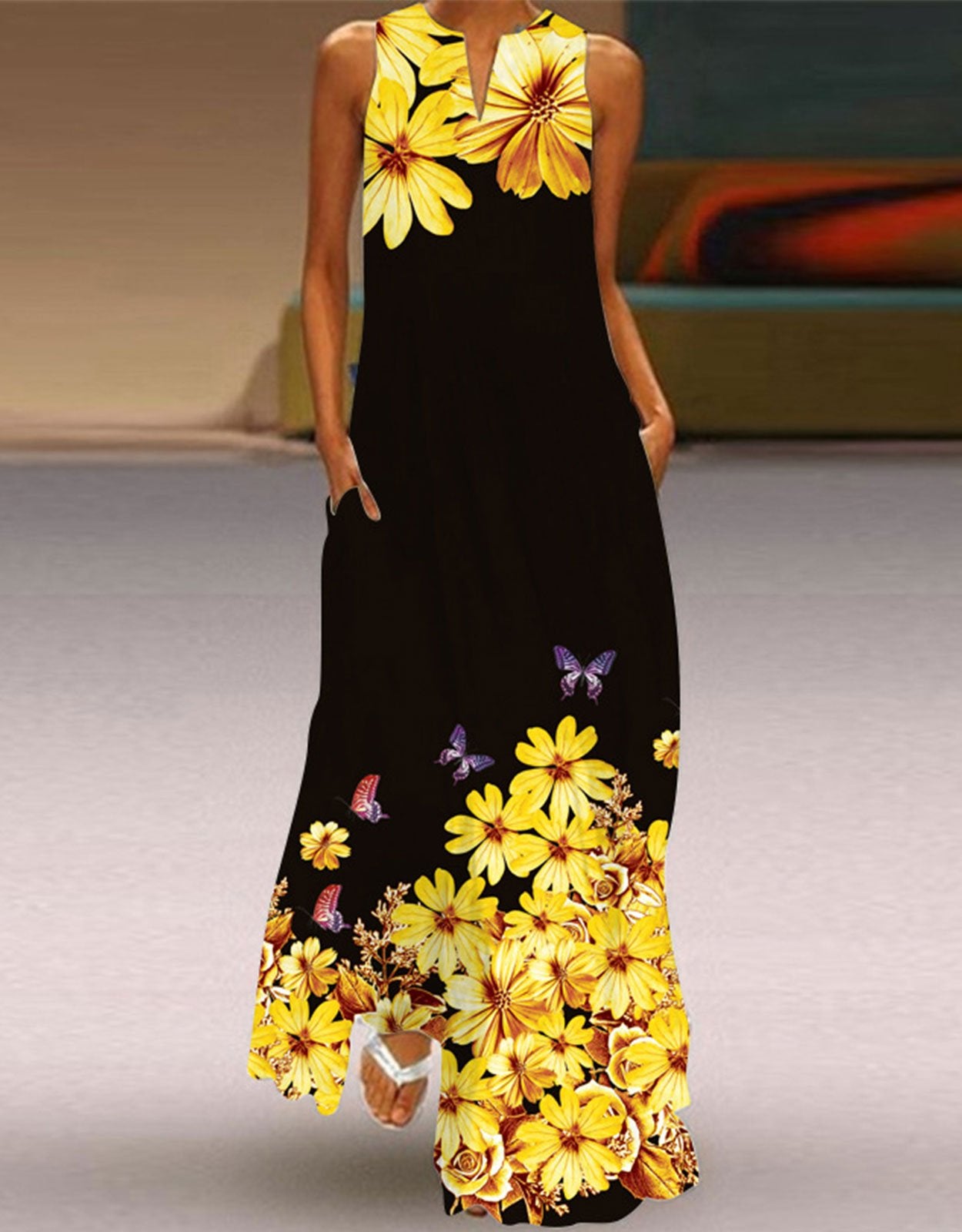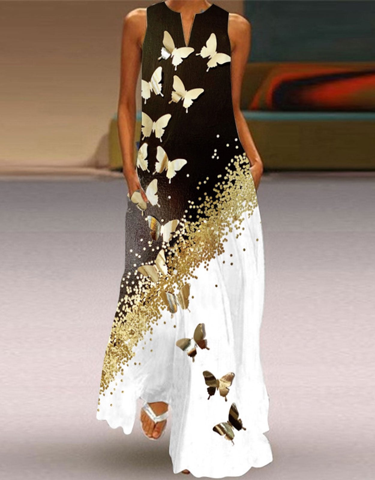 Summer Dresses for Women Butterfly and Floral Printed Maxi Dress