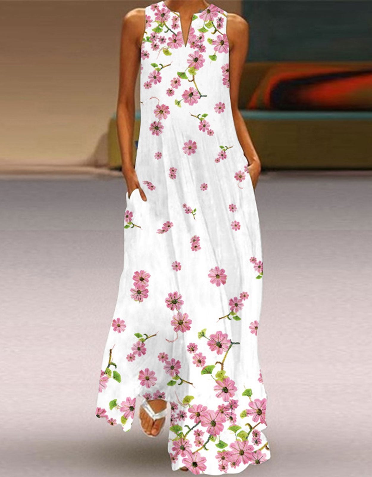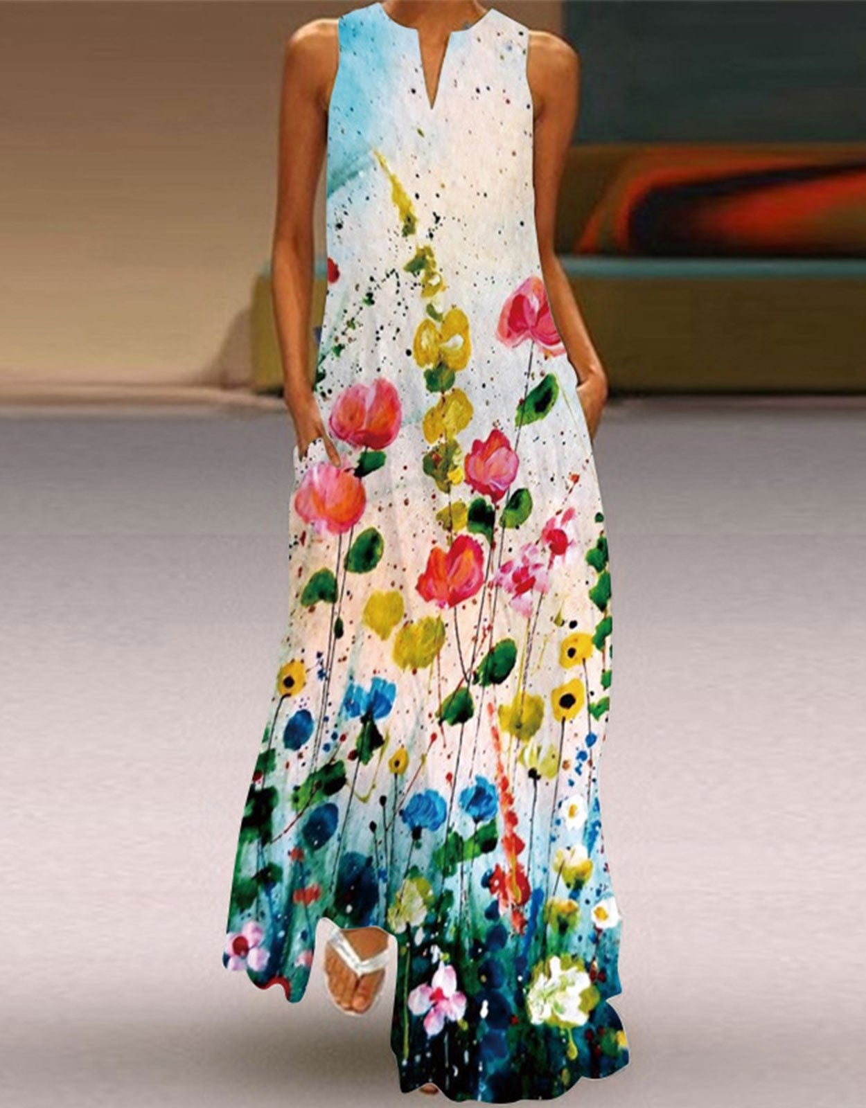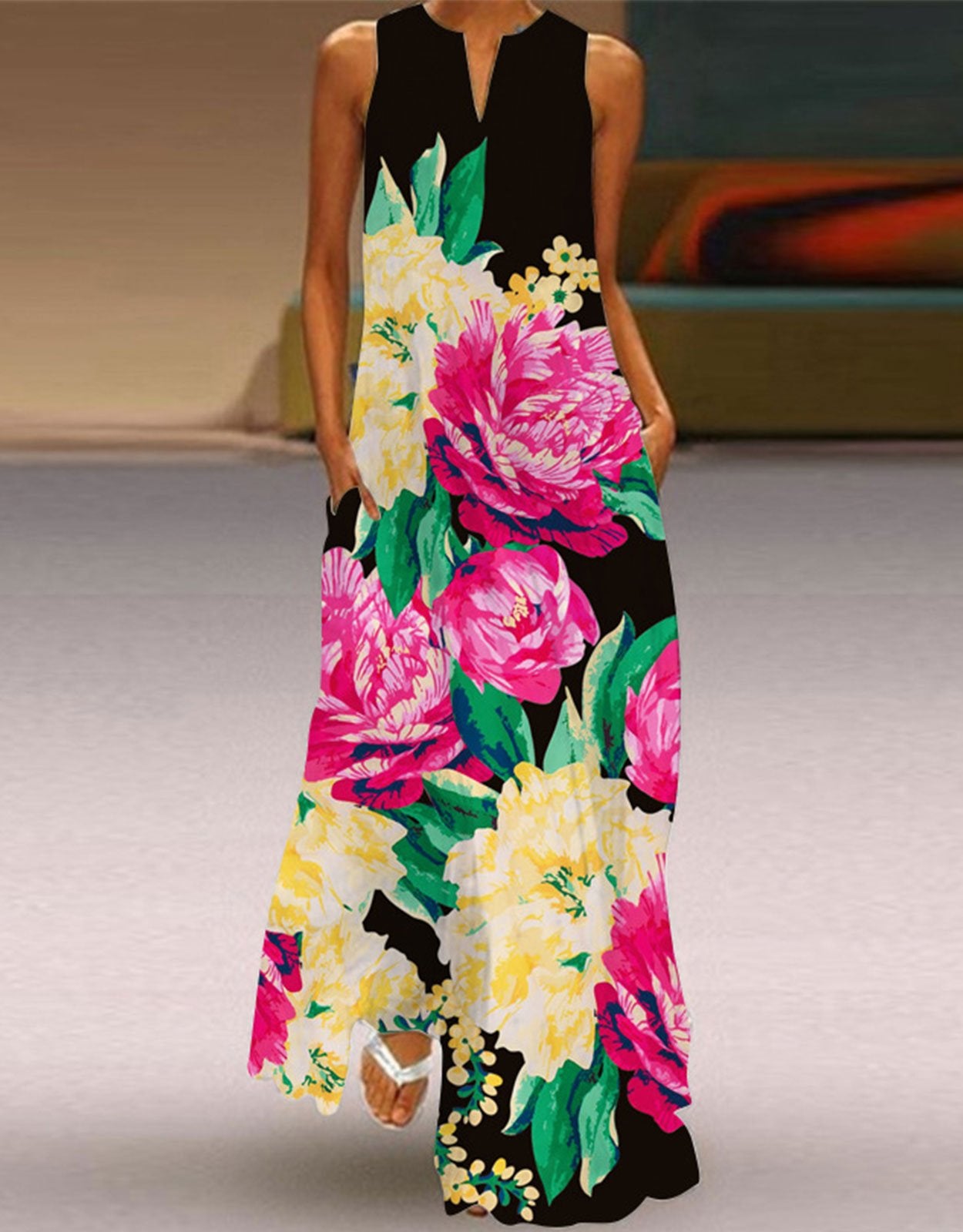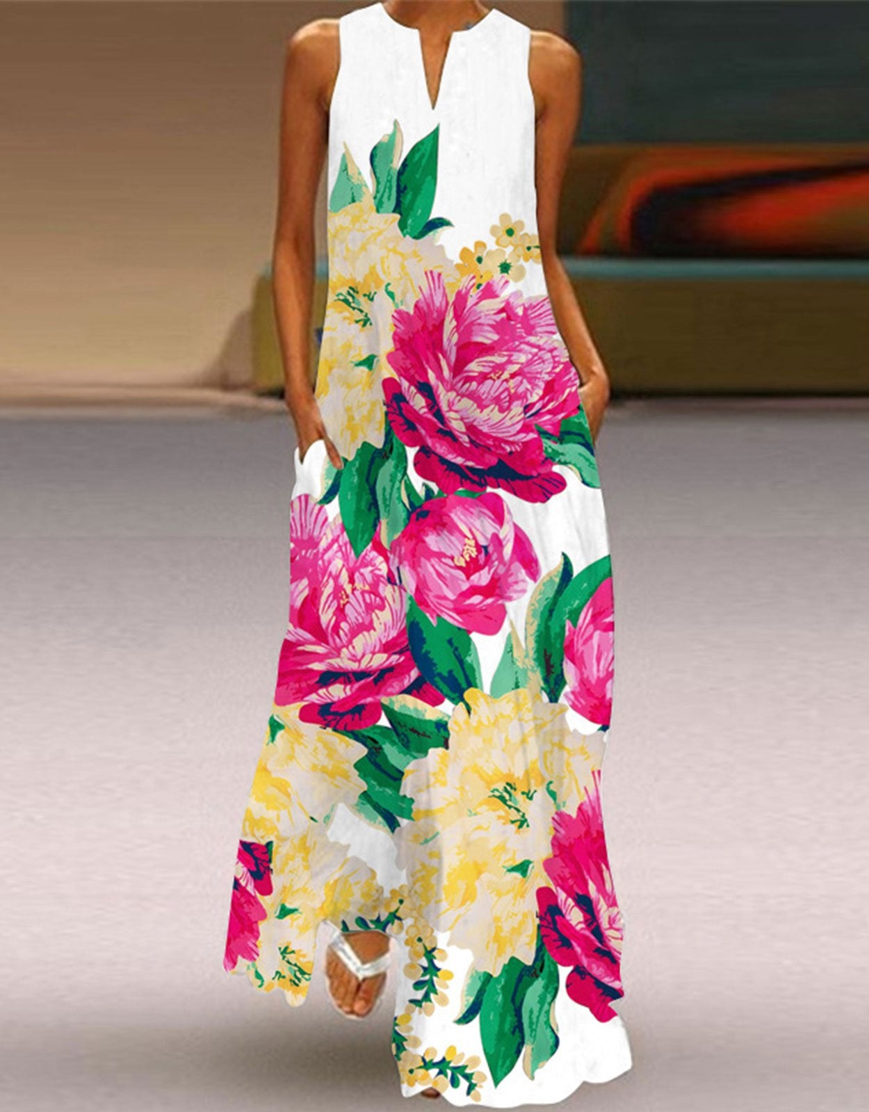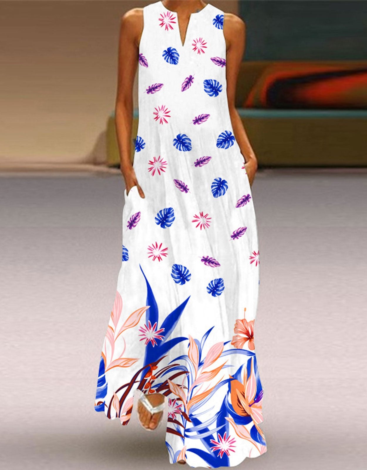 Summer Dresses for Women Butterfly and Floral Printed Maxi Dress