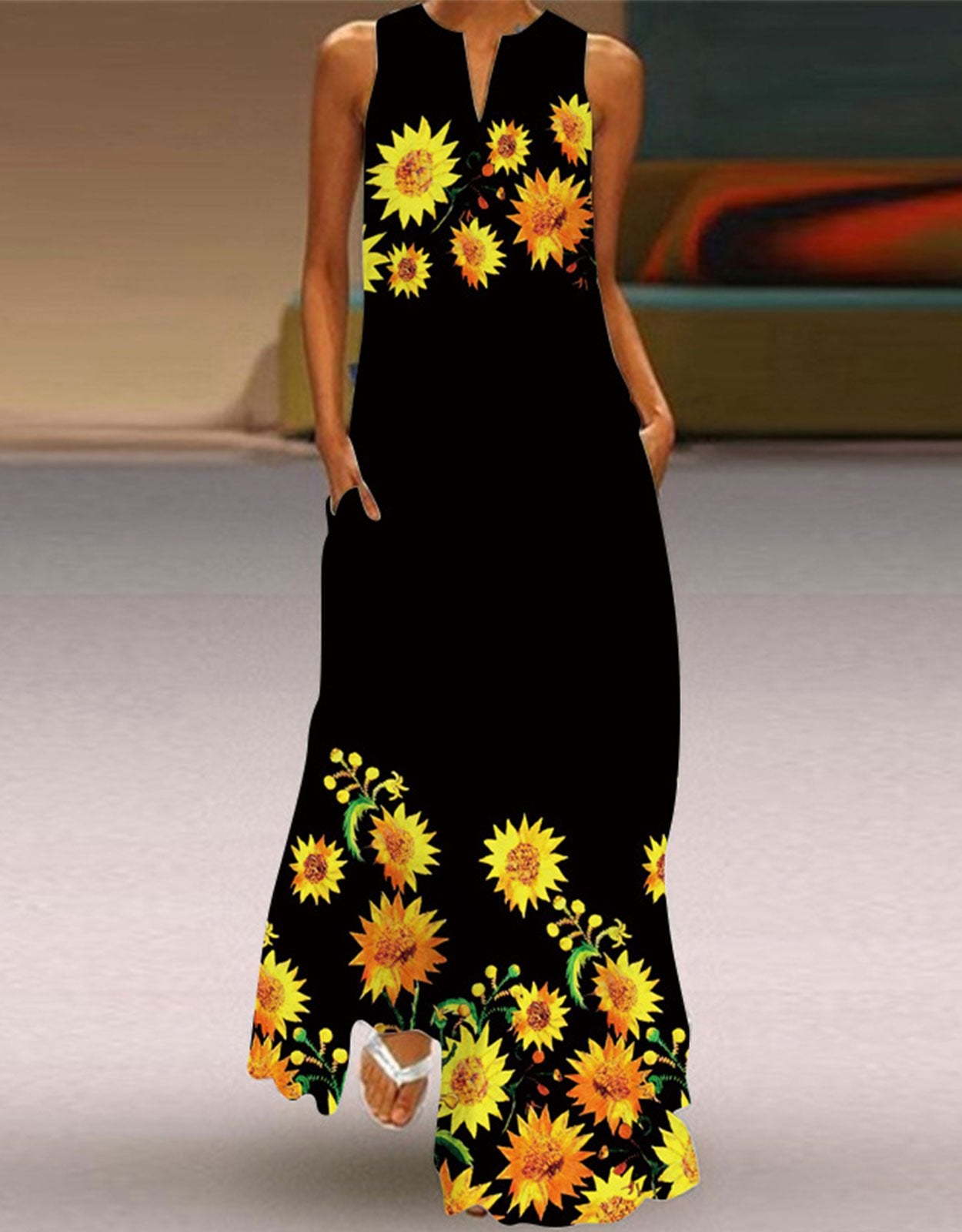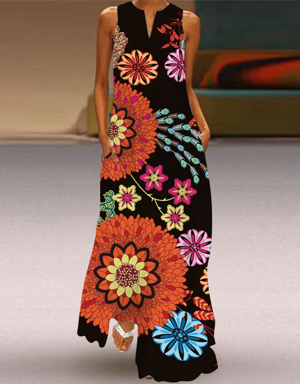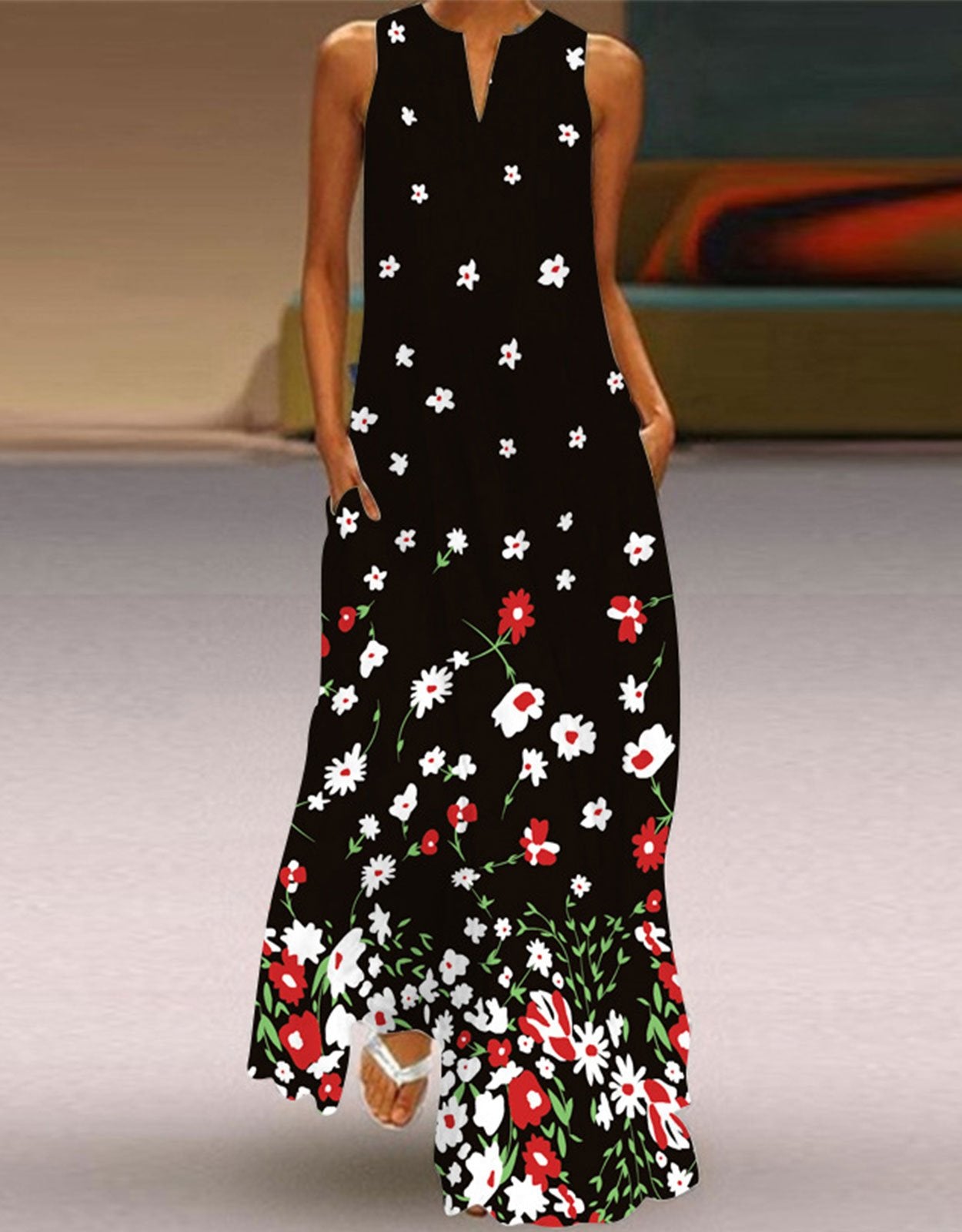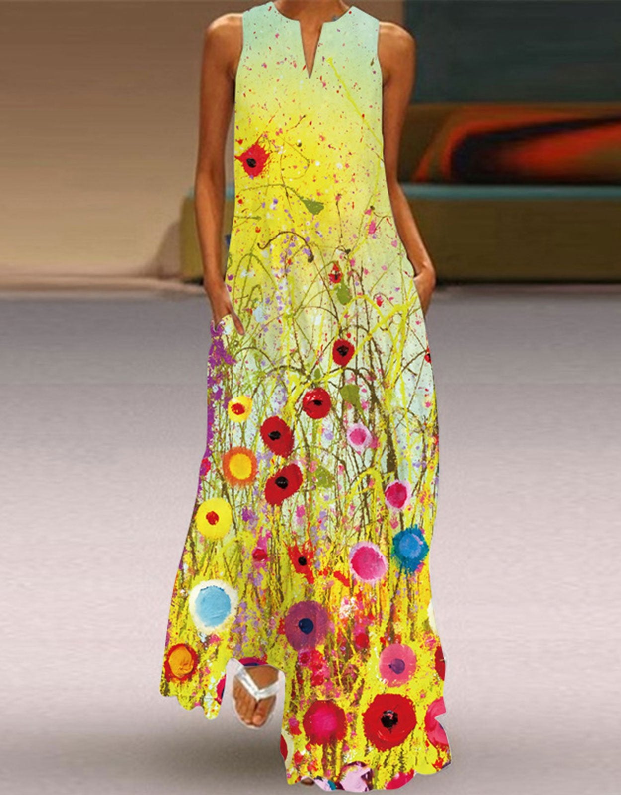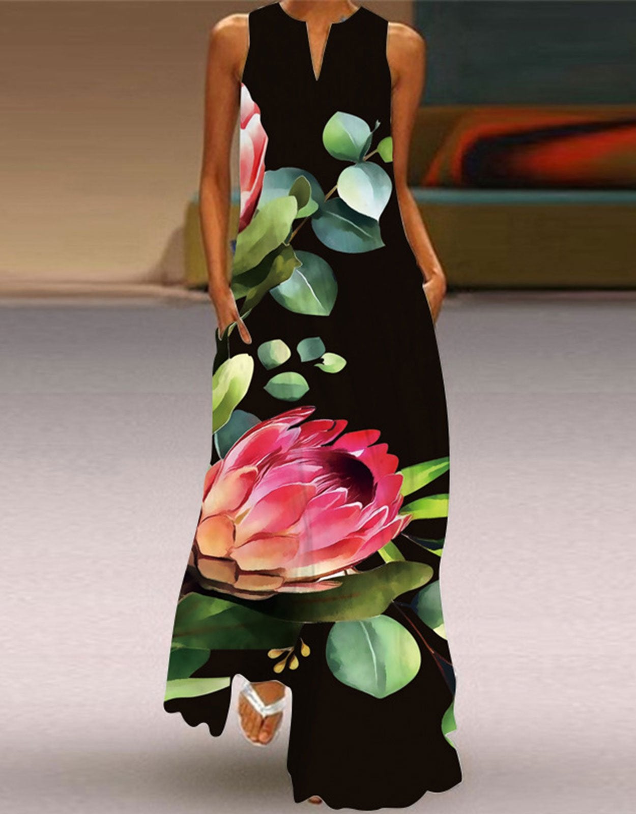 Summer Dresses for Women Butterfly and Floral Printed Maxi Dress