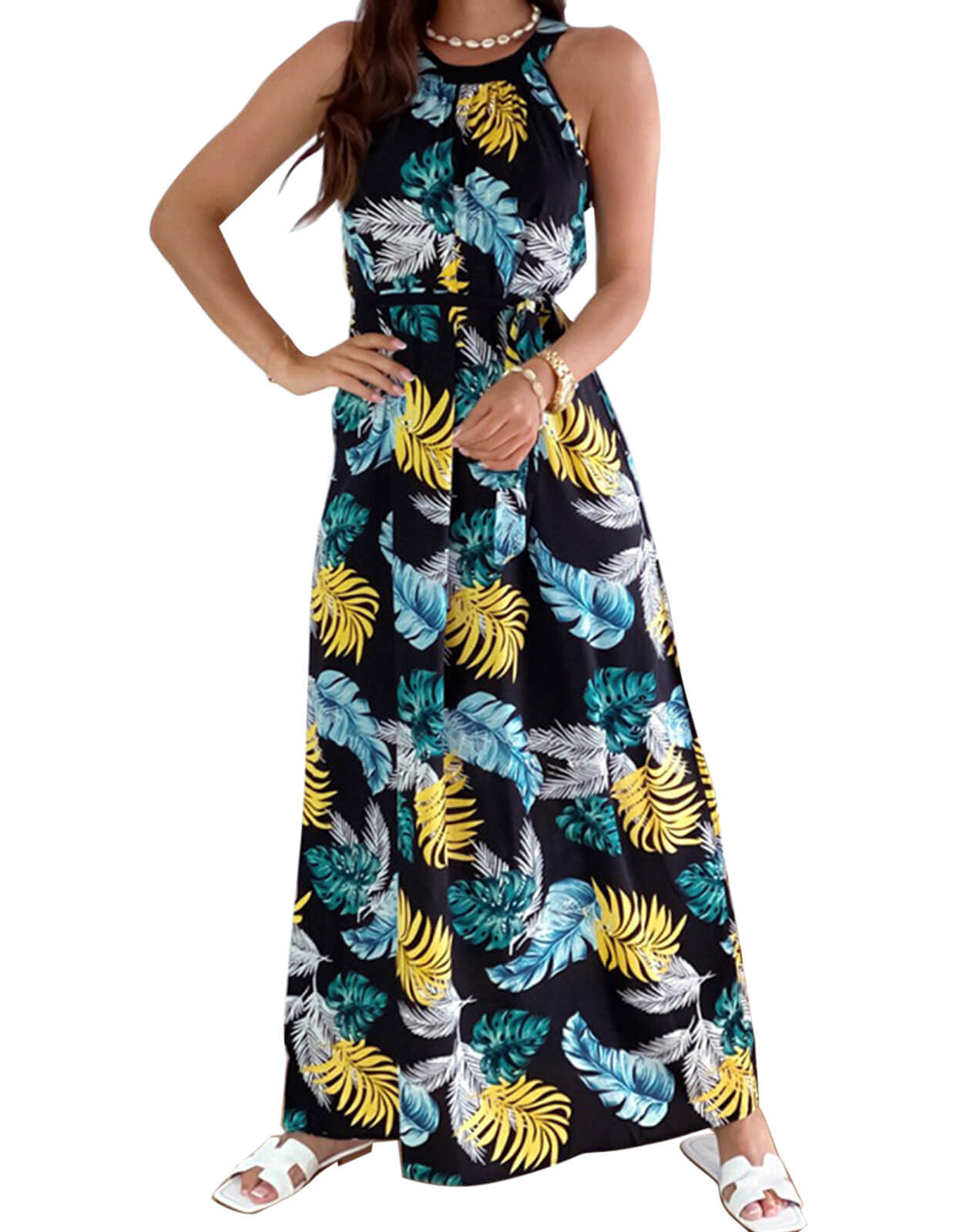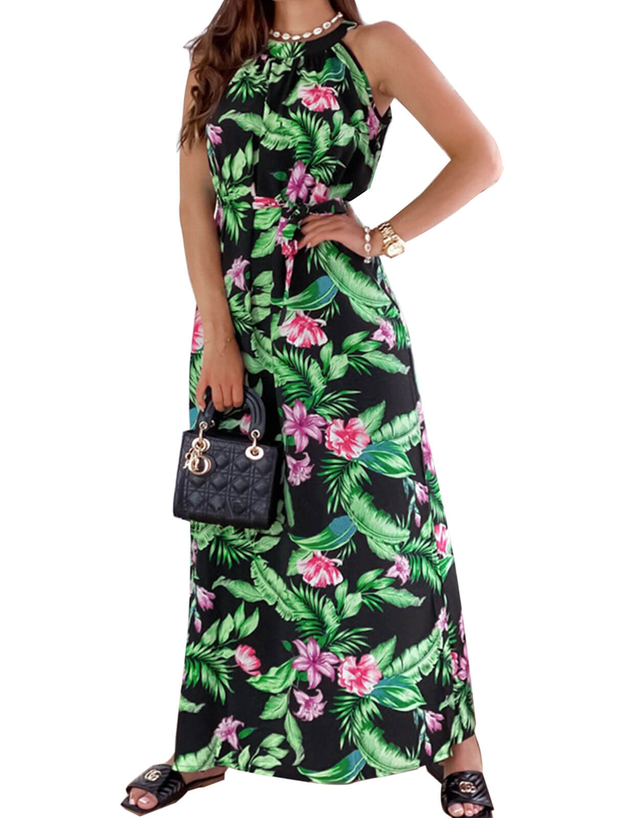 Summer Dresses for Women Halter Sleeveless Print Maxi Dress