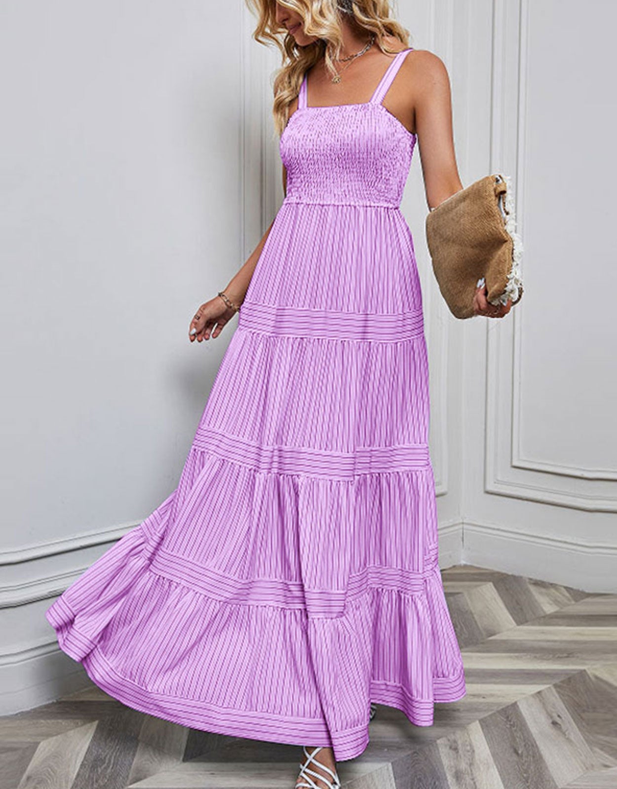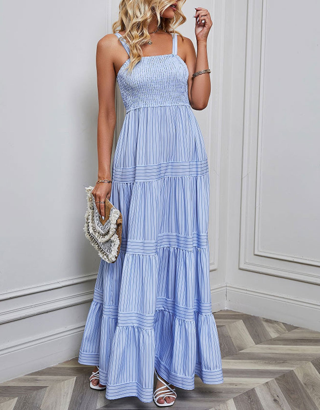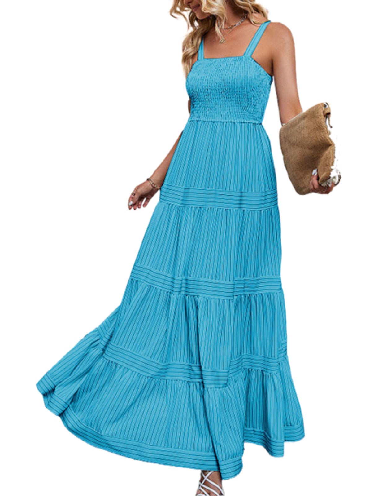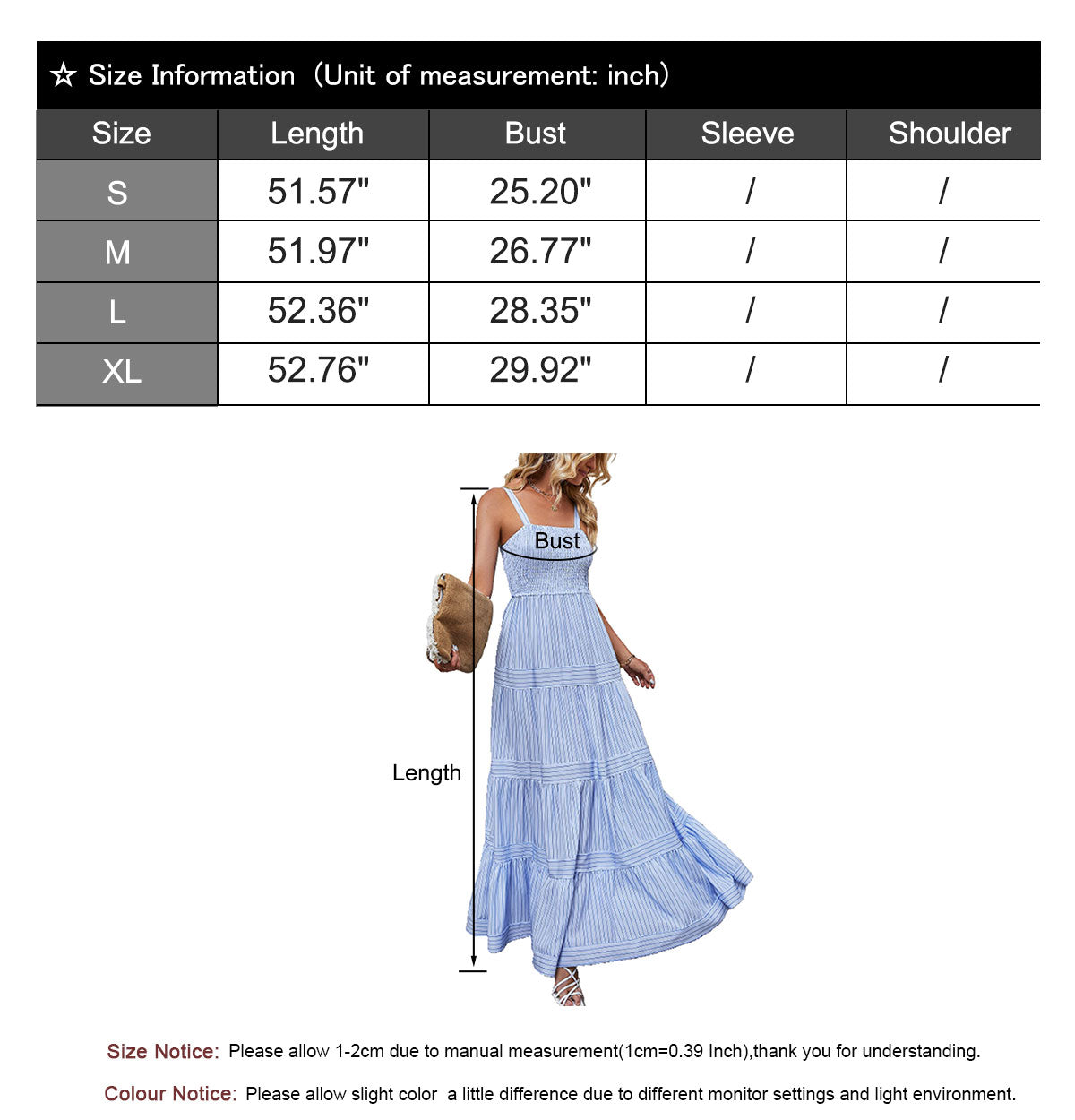 ♥Material: SKIN-FRIENDLY SOFT .This Suspender Waist Striped Dress is made of polyester fiber, which is lightweight, breathable and comfortable to wear.