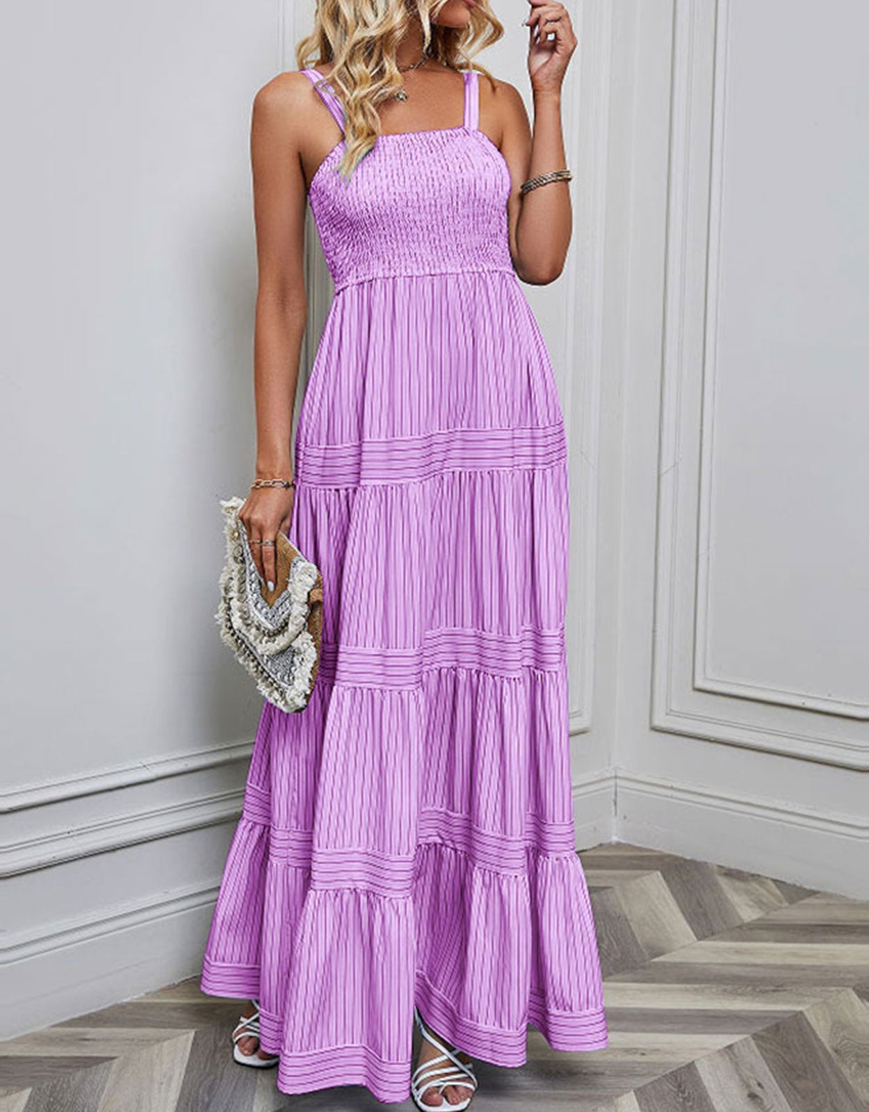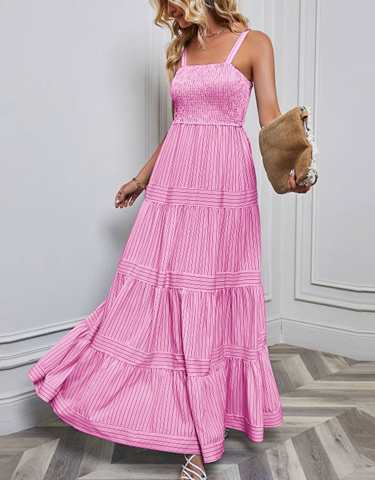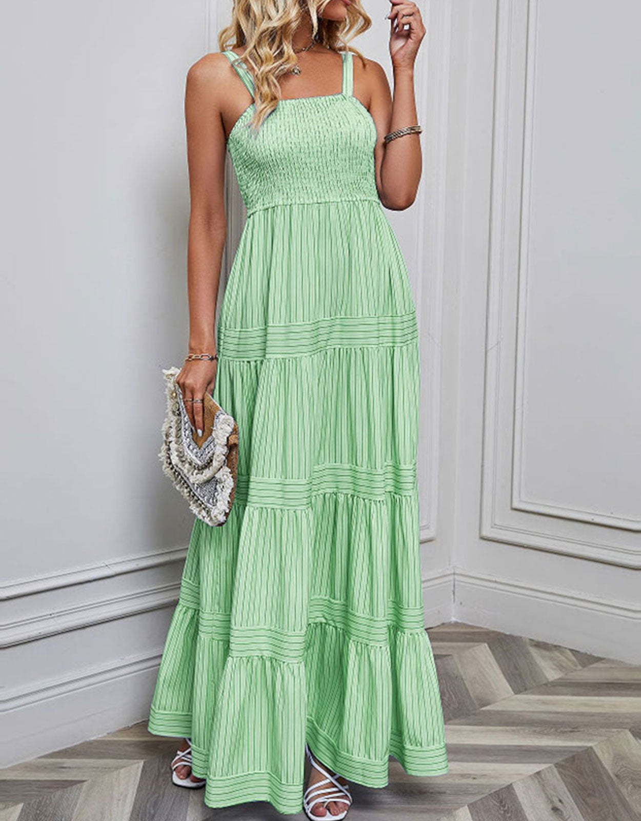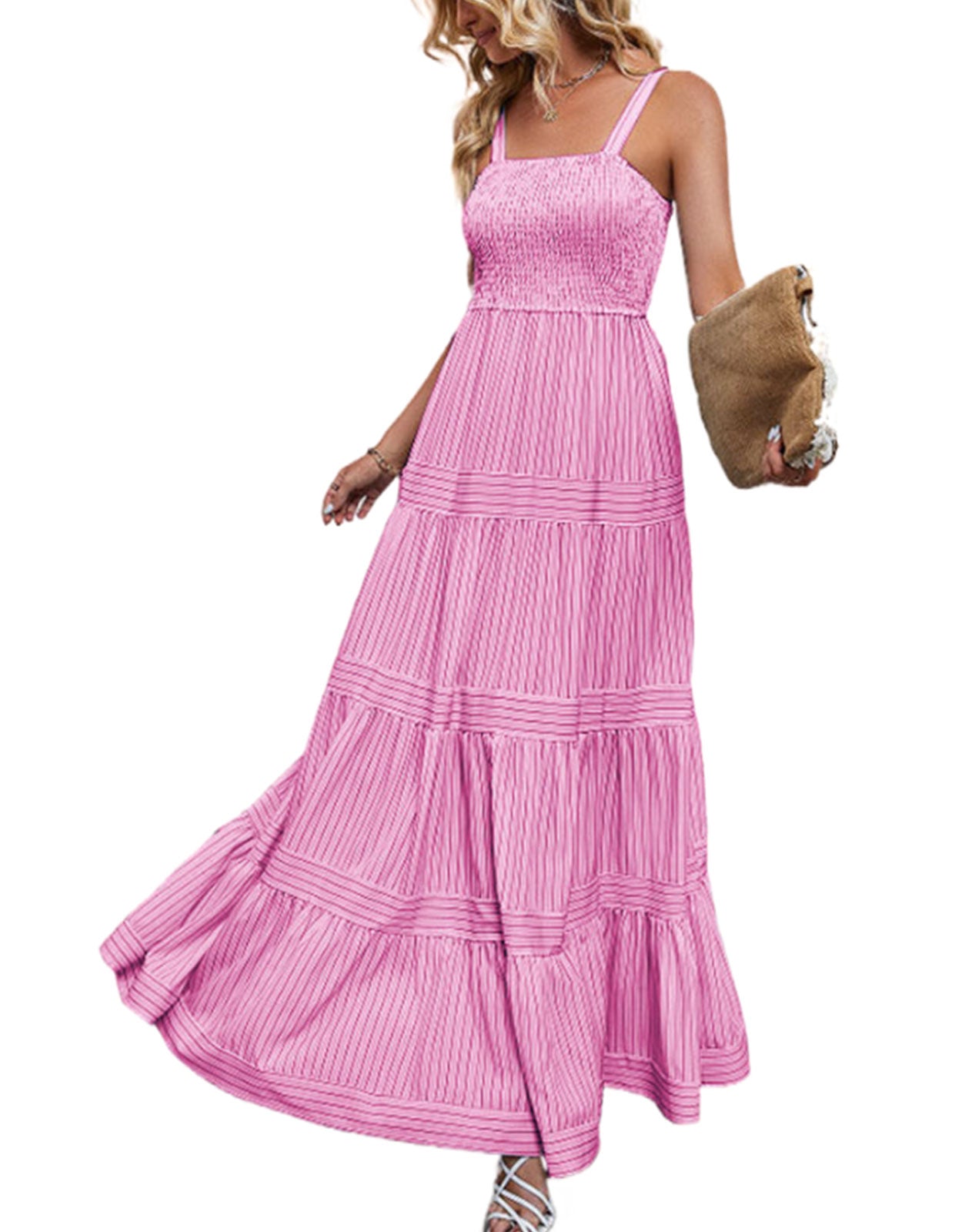 ♥Material: SKIN-FRIENDLY SOFT .This Suspender Waist Striped Dress is made of polyester fiber, which is lightweight, breathable and comfortable to wear.