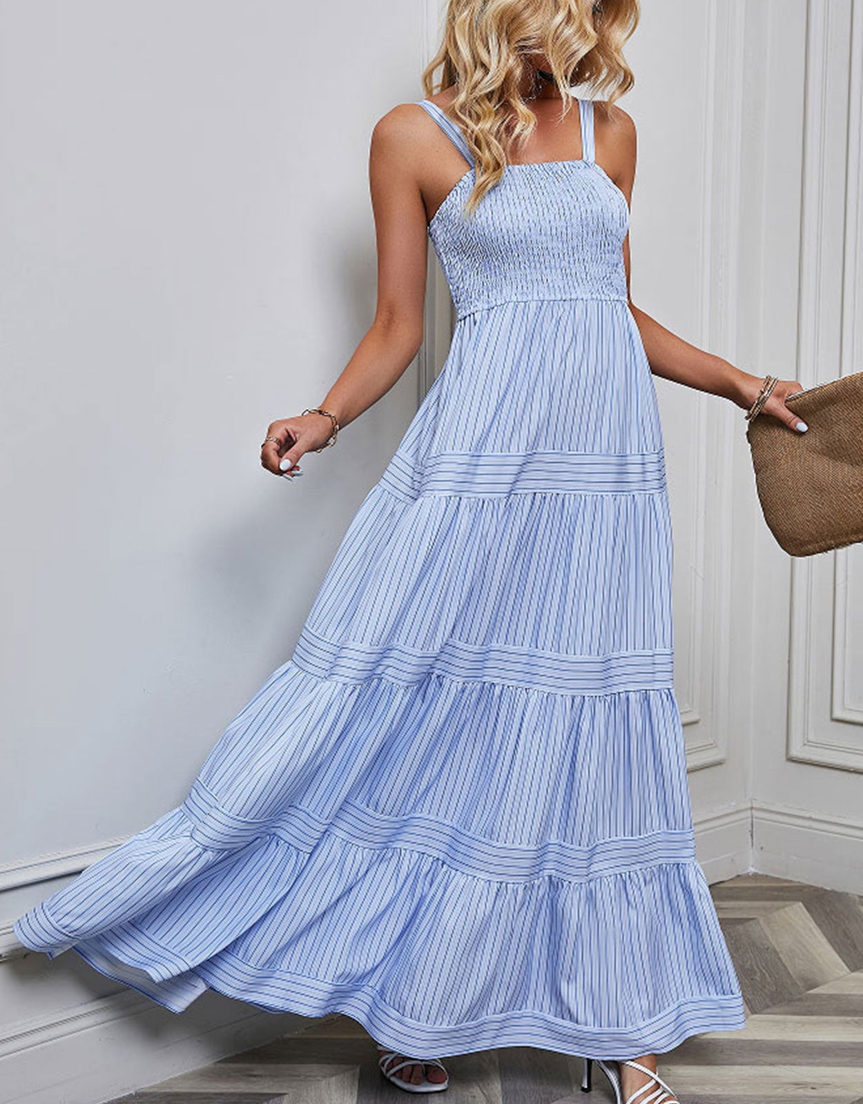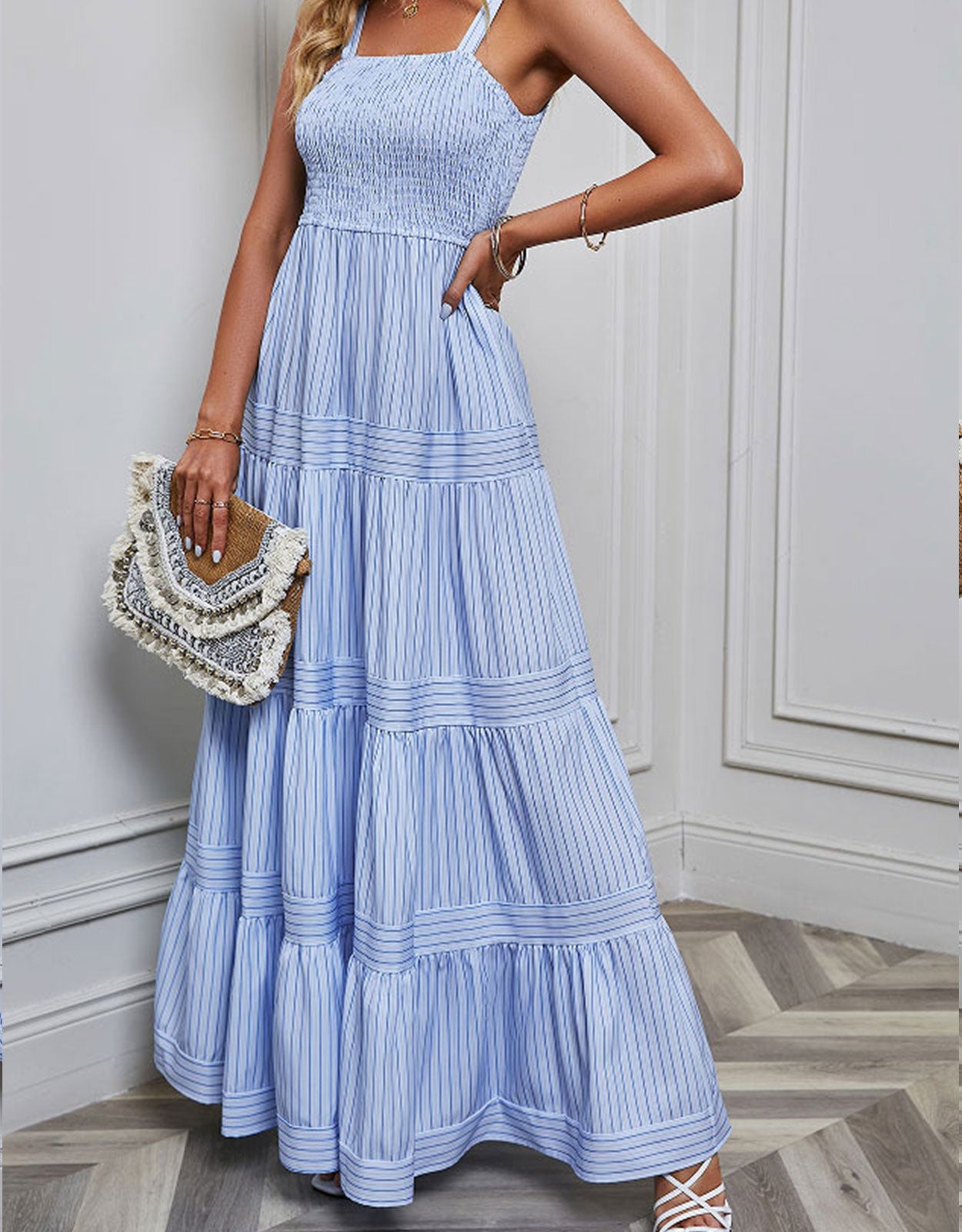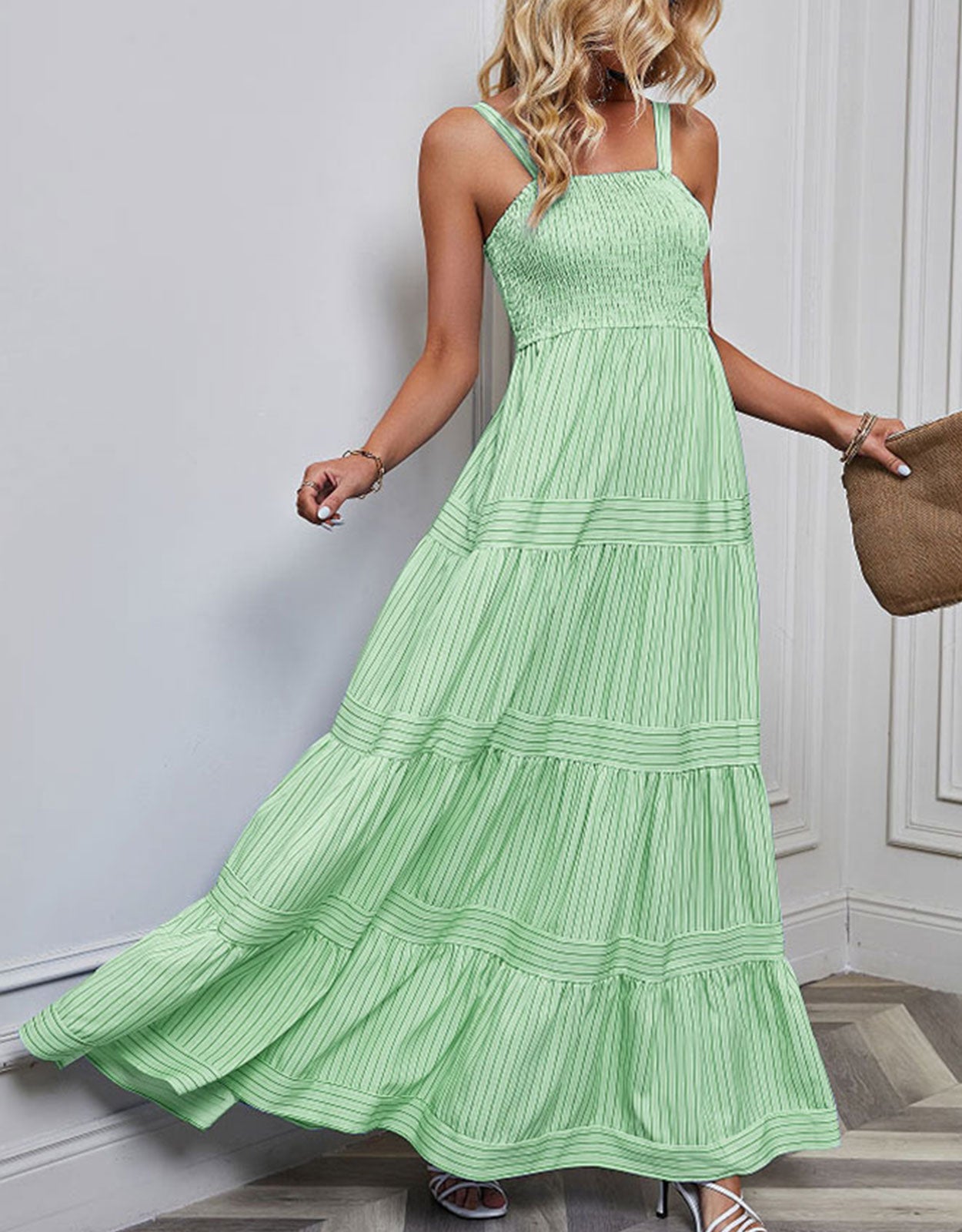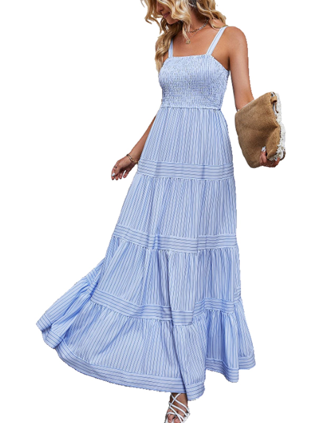 ♥Material: SKIN-FRIENDLY SOFT .This Suspender Waist Striped Dress is made of polyester fiber, which is lightweight, breathable and comfortable to wear.