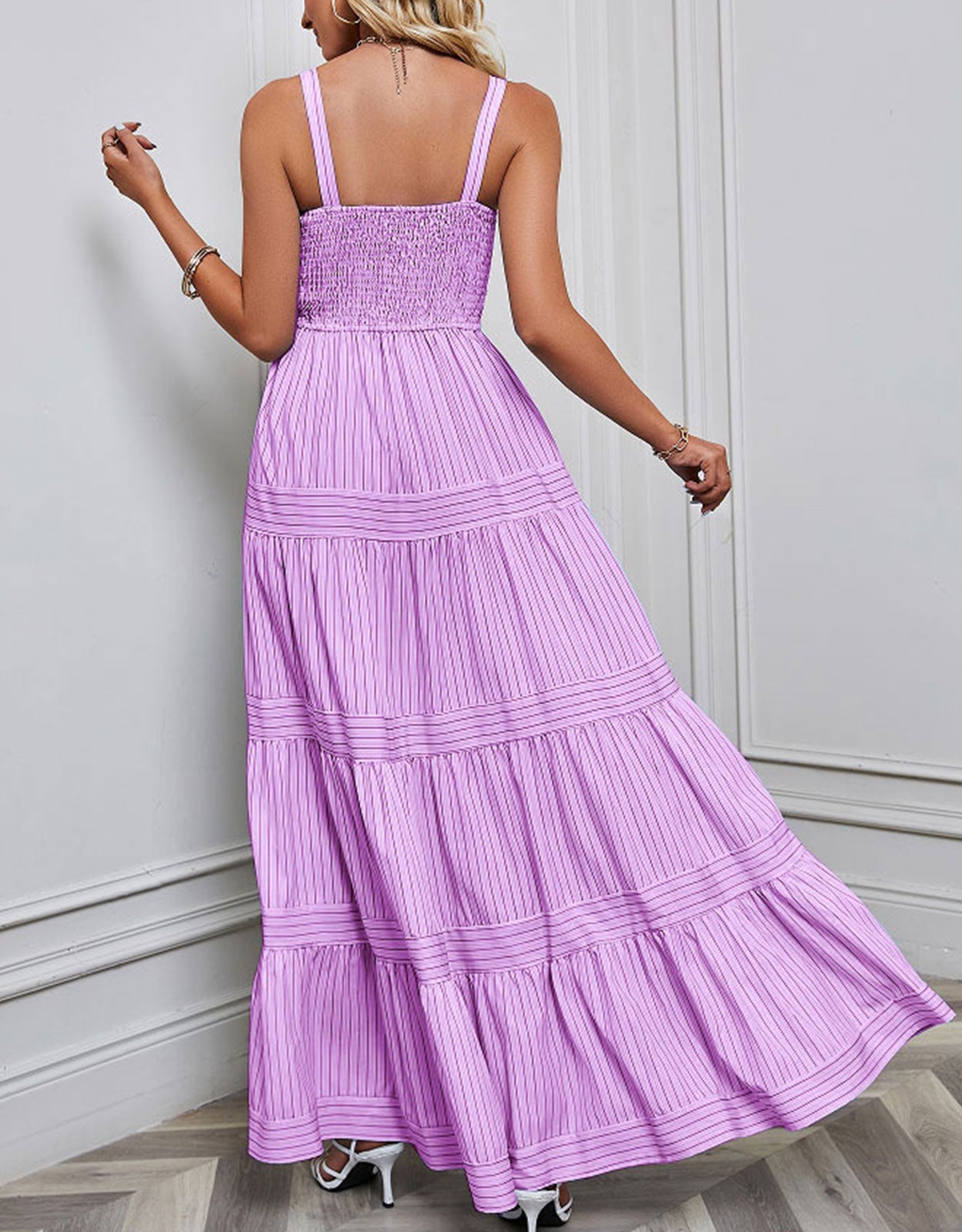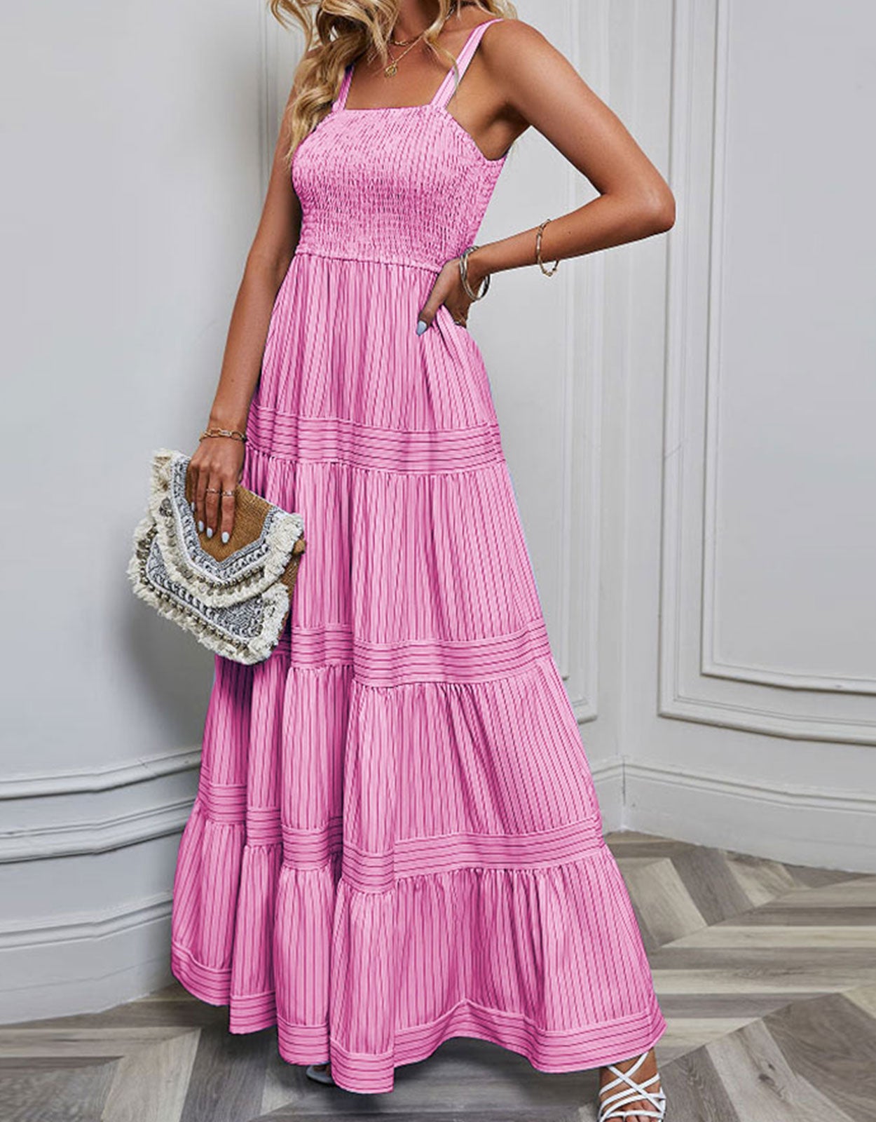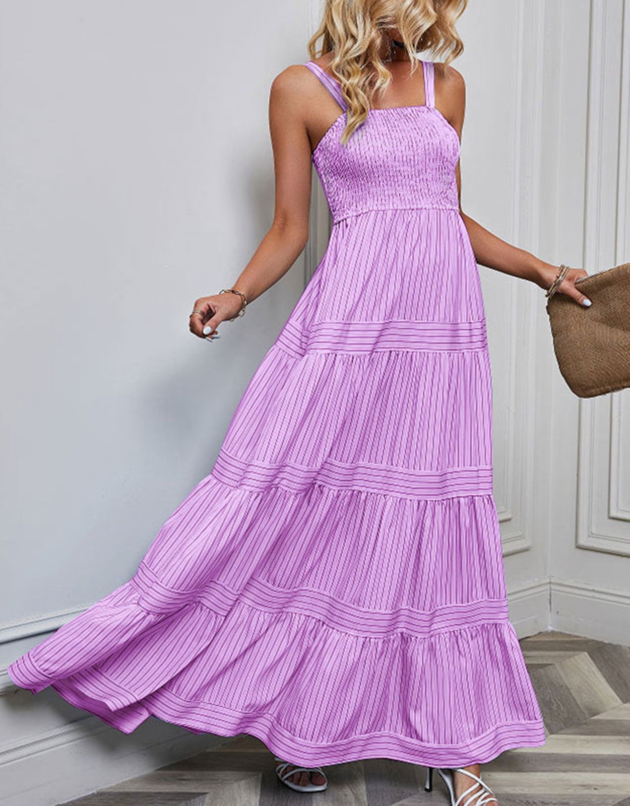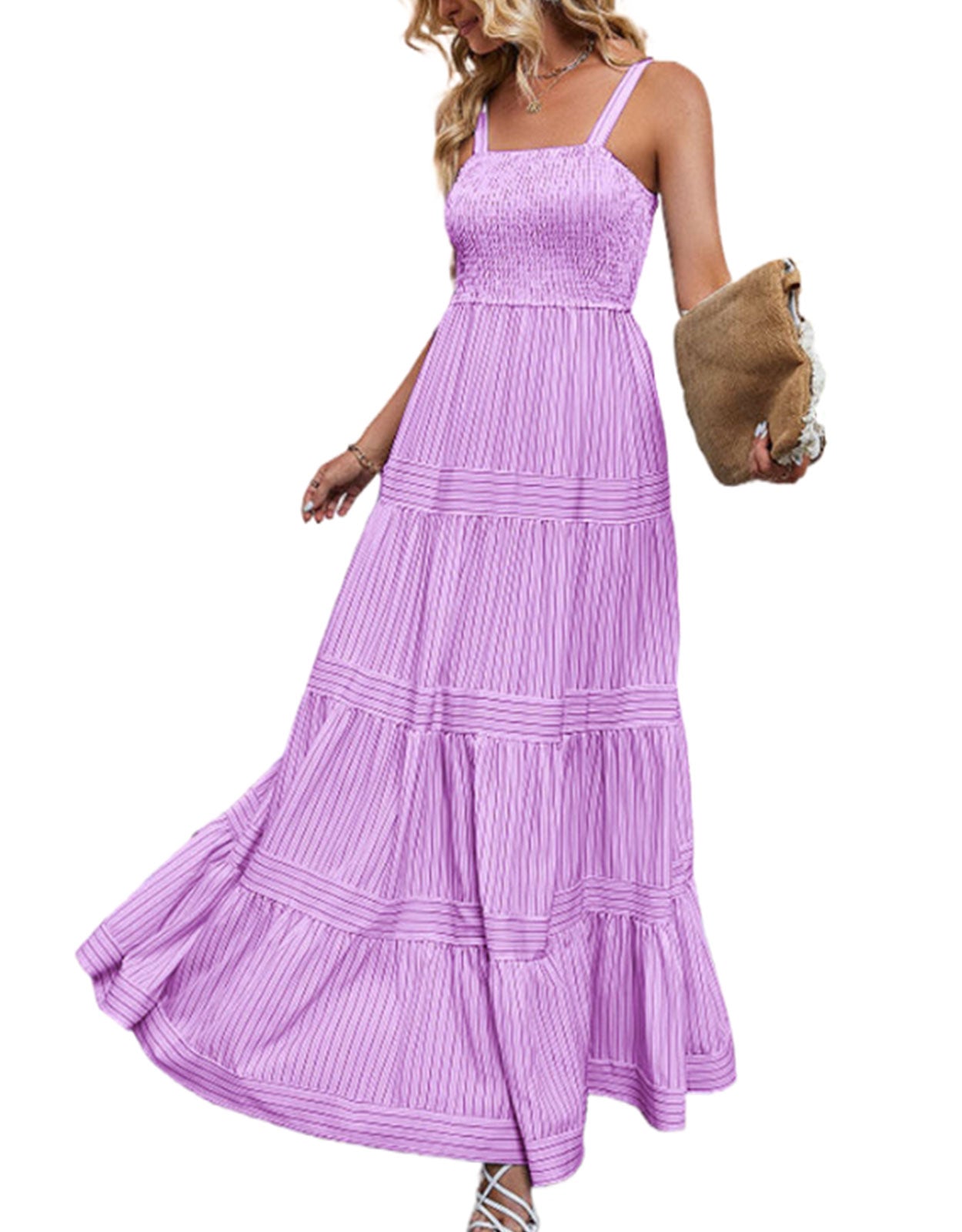 ♥Material: SKIN-FRIENDLY SOFT .This Suspender Waist Striped Dress is made of polyester fiber, which is lightweight, breathable and comfortable to wear.