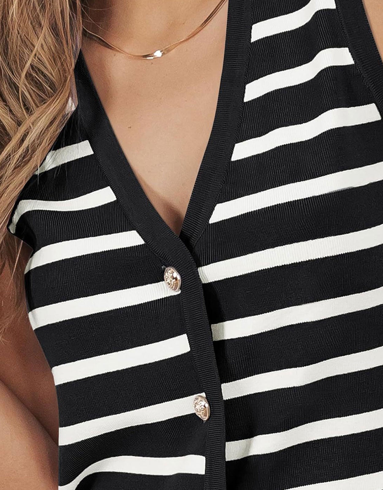 - Features: V-neck, striped style, button-down, backless, knitted sweater vest gives you a stylish look