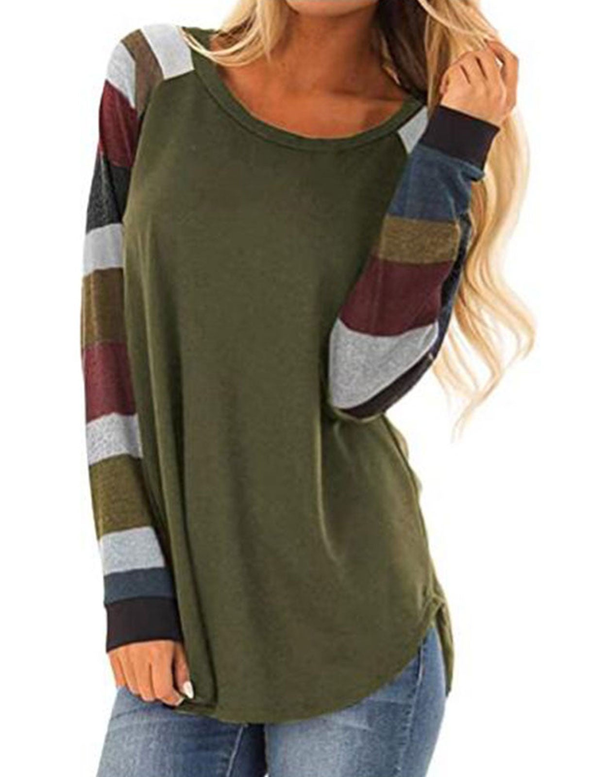 Women Striped Round Neck Long Sleeve Top